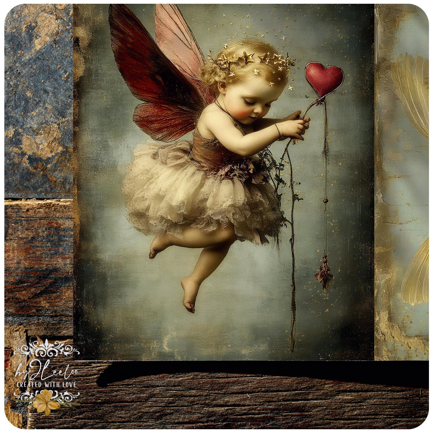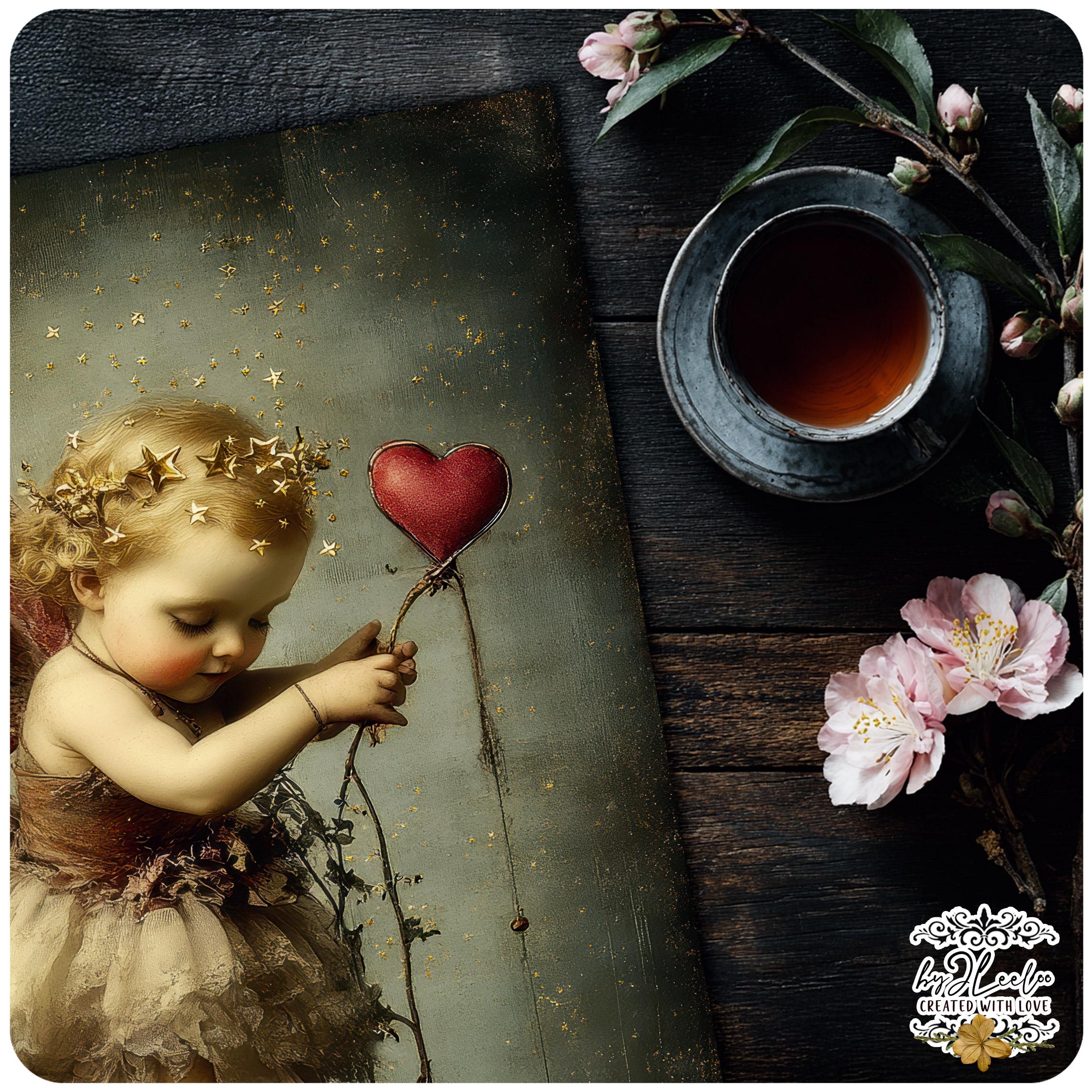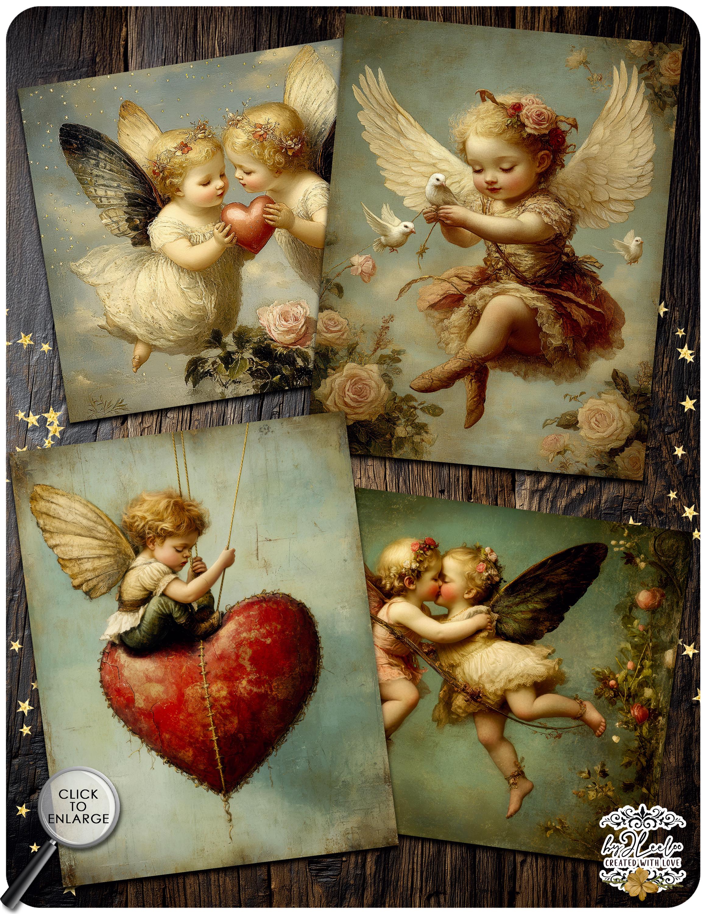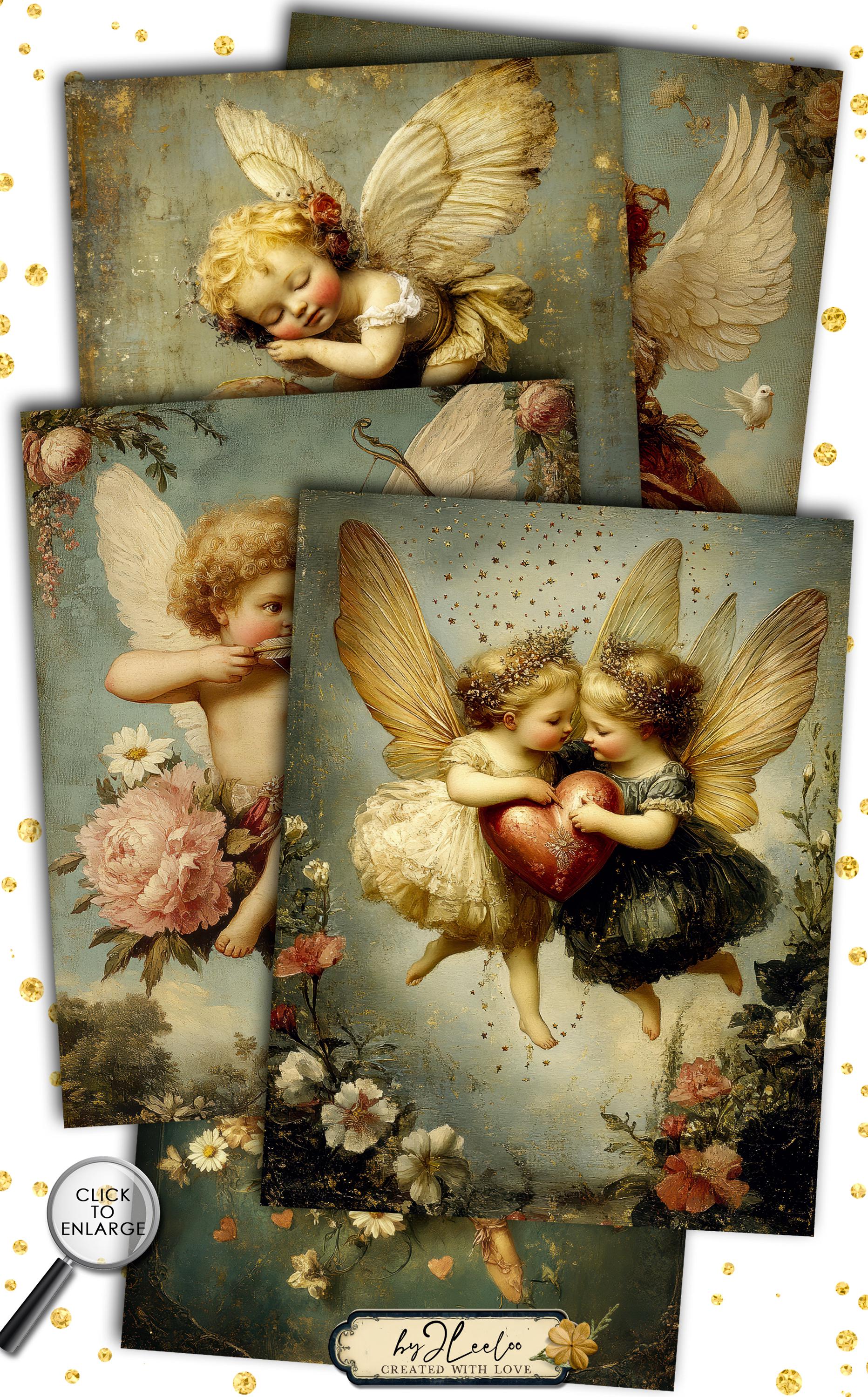 These little cupids drift through vintage florals and stitched hearts, carrying secrets, wishes, and quiet promises.