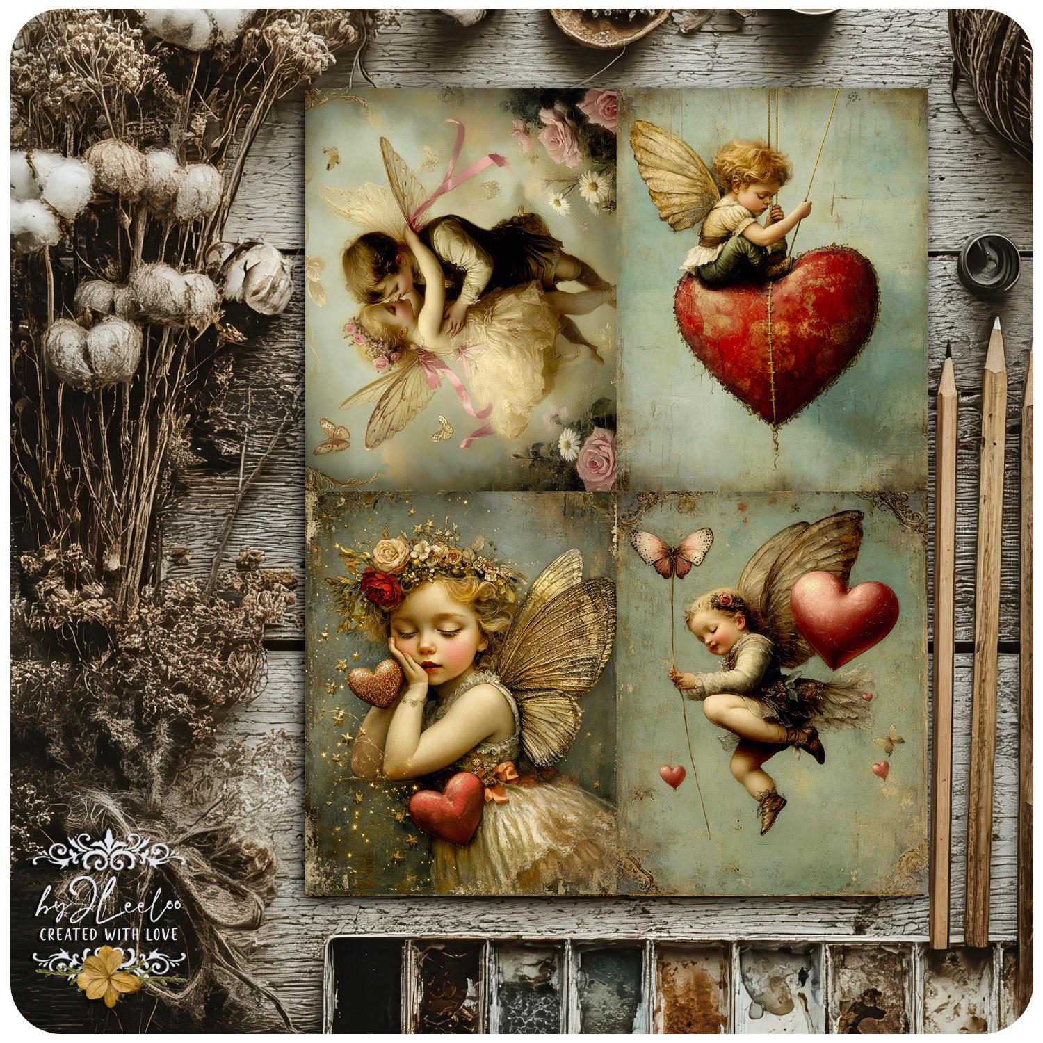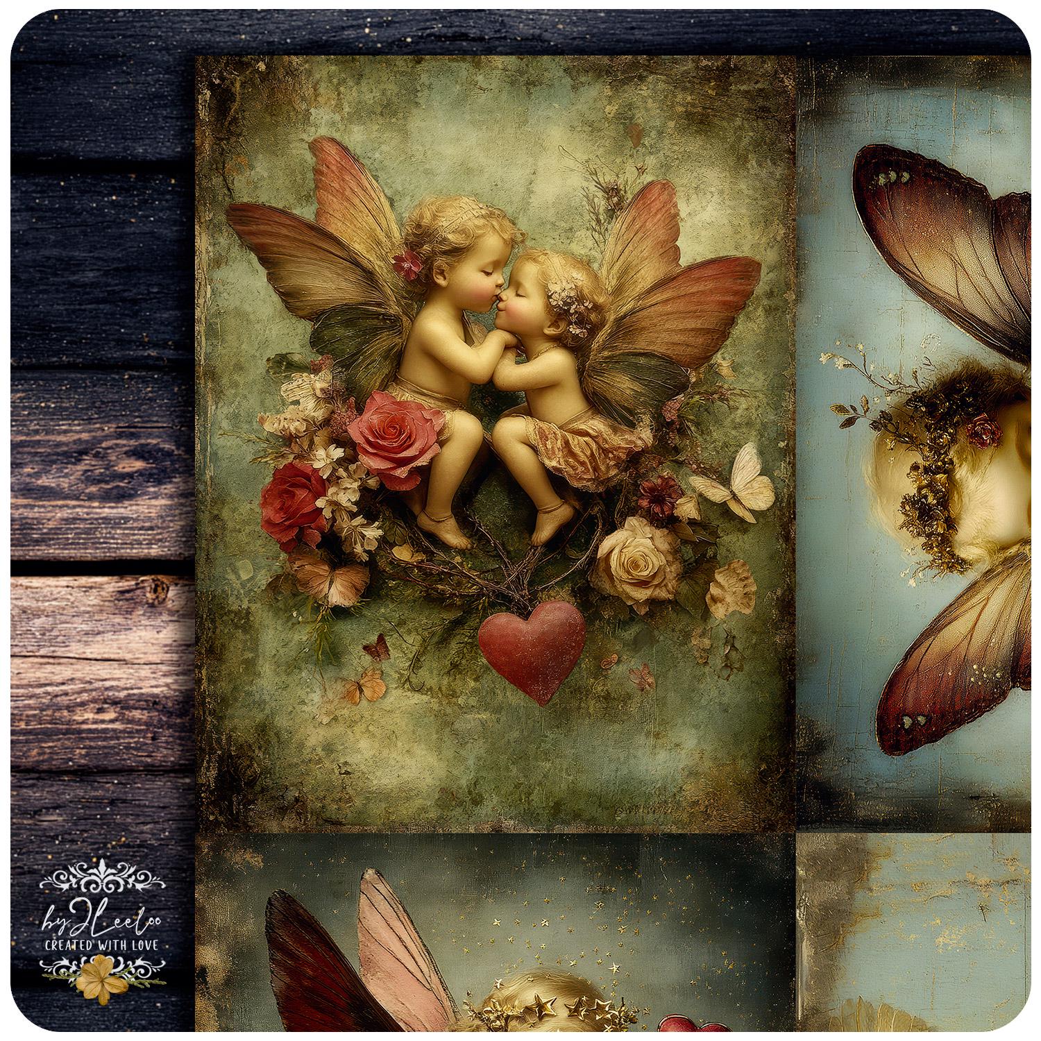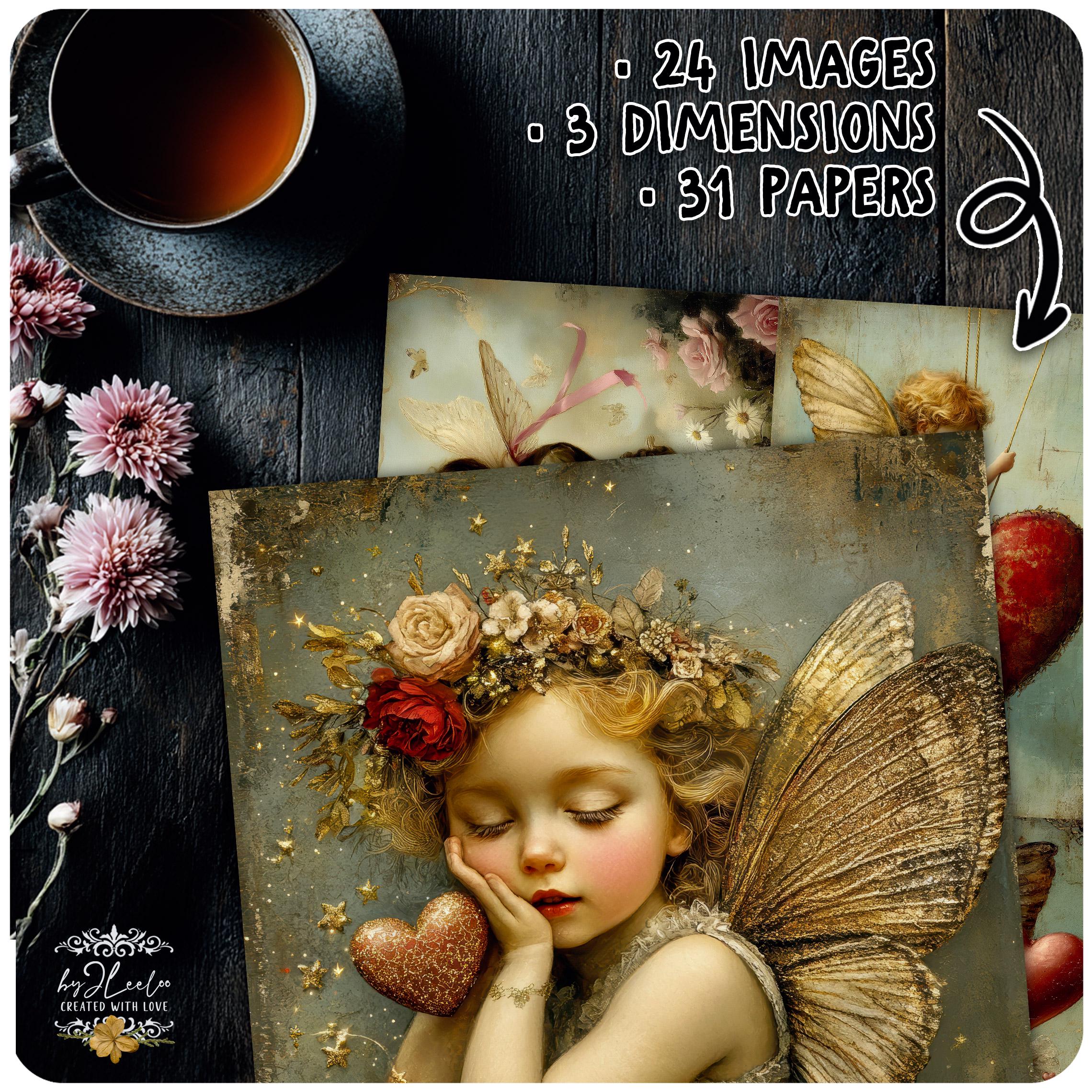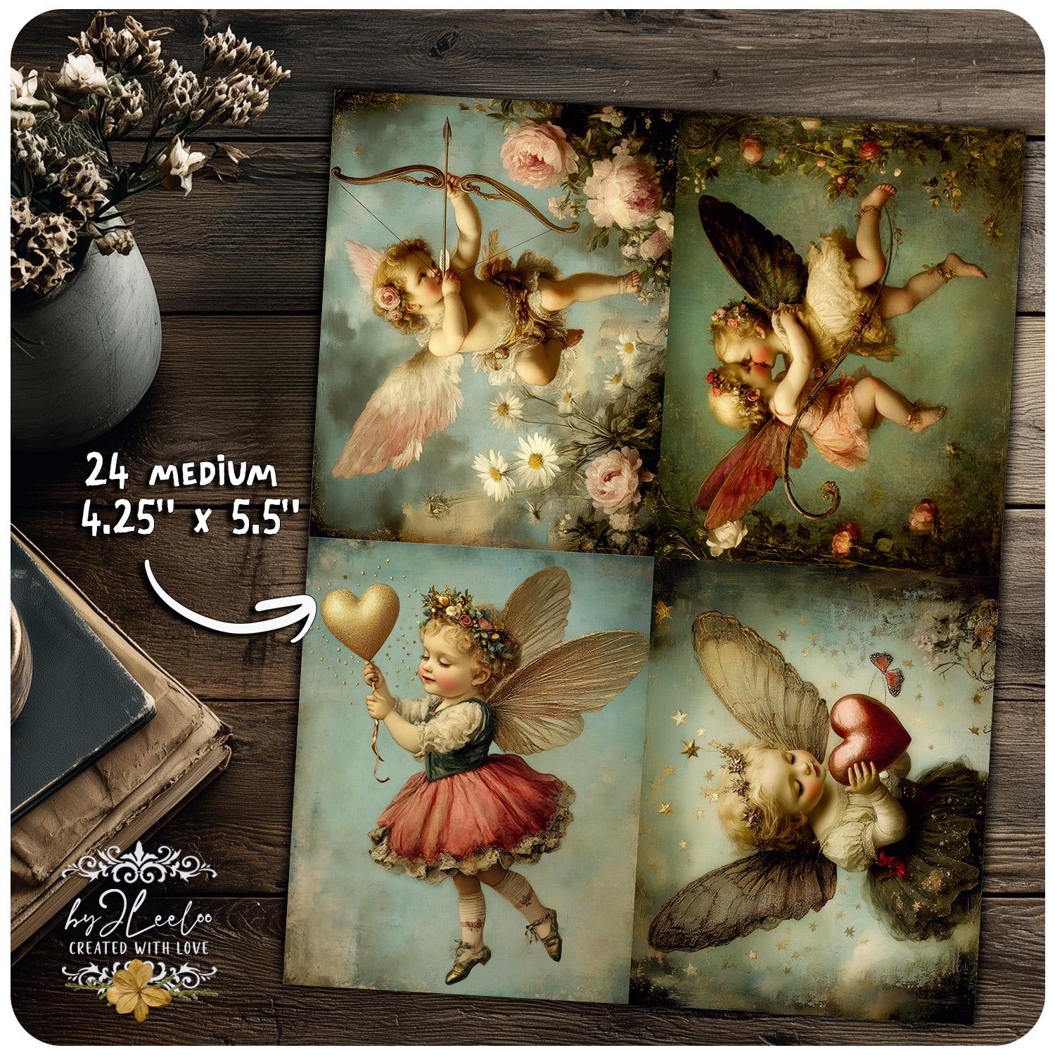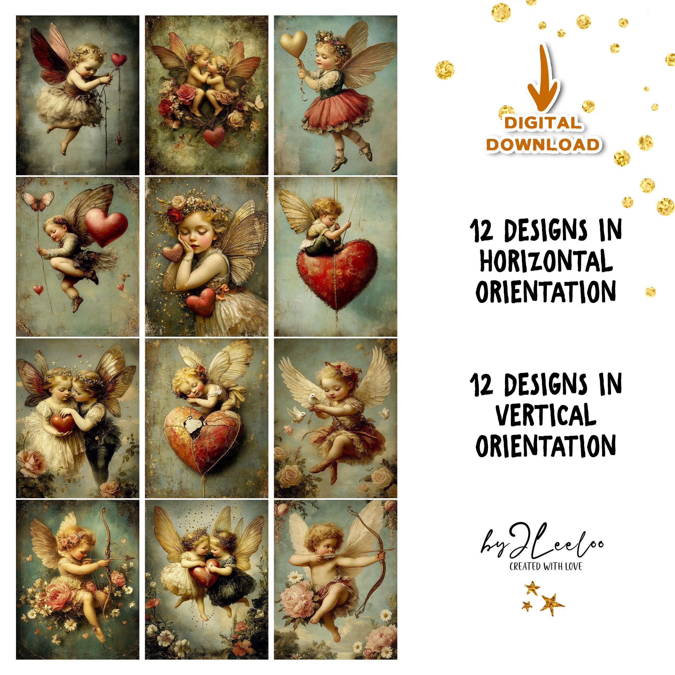 These little cupids drift through vintage florals and stitched hearts, carrying secrets, wishes, and quiet promises.