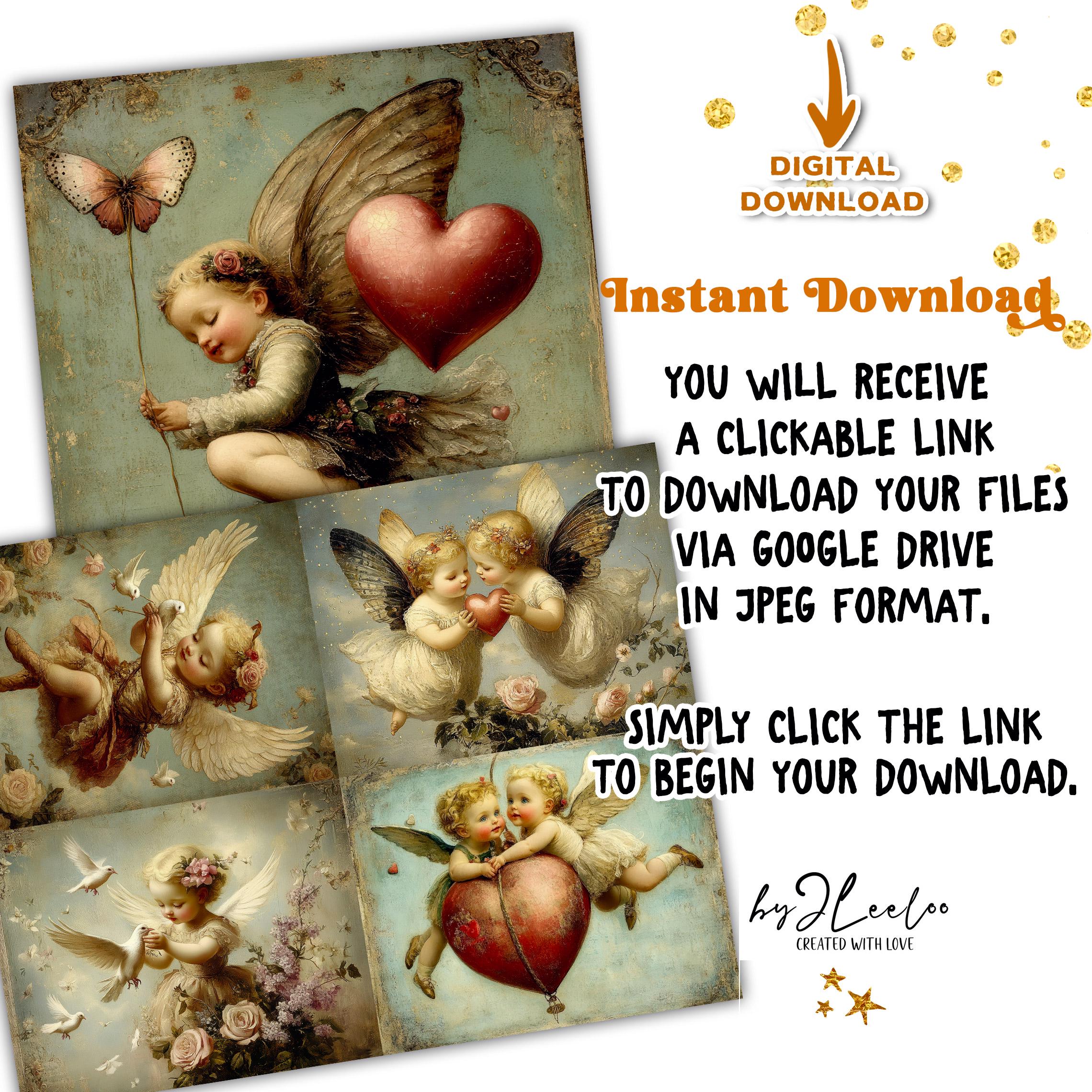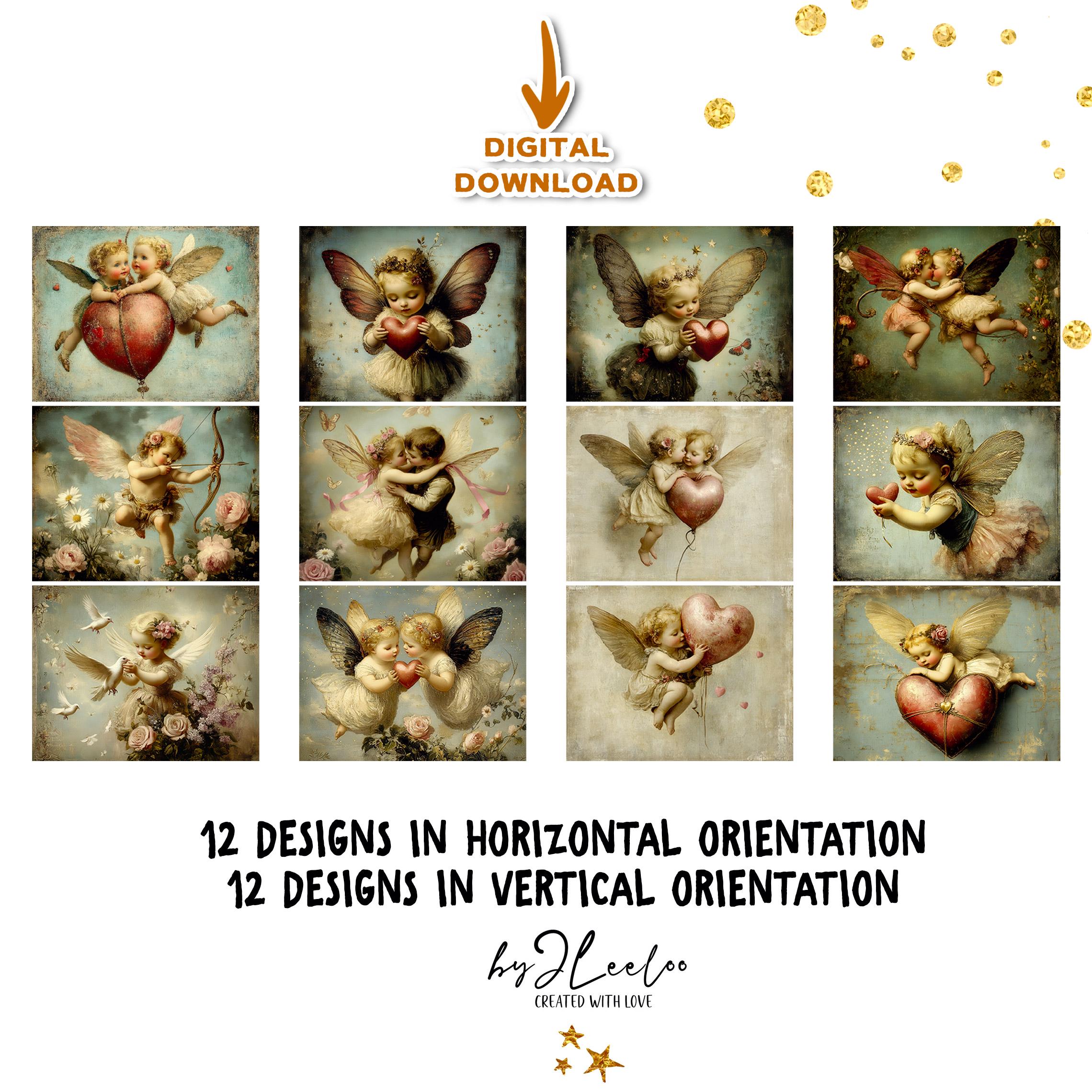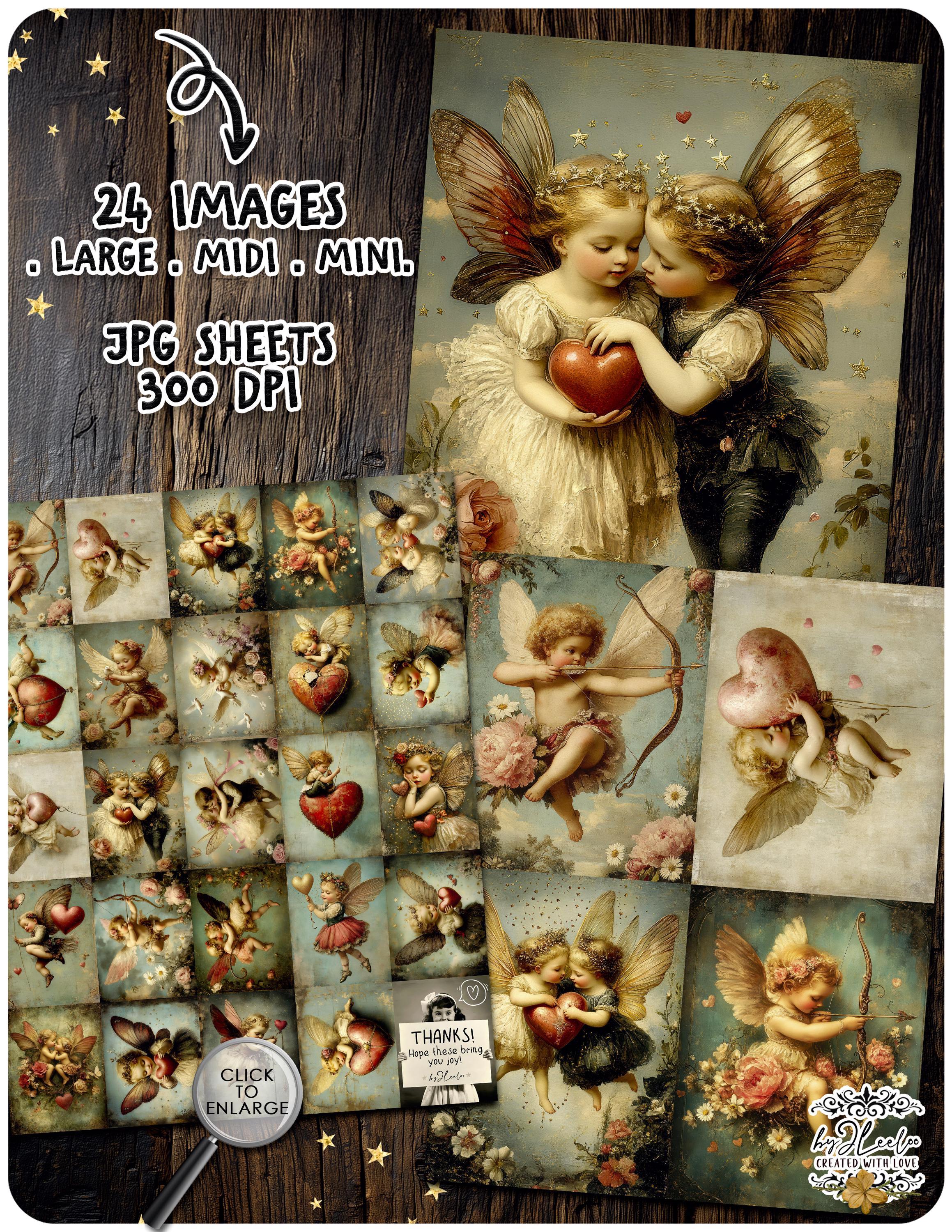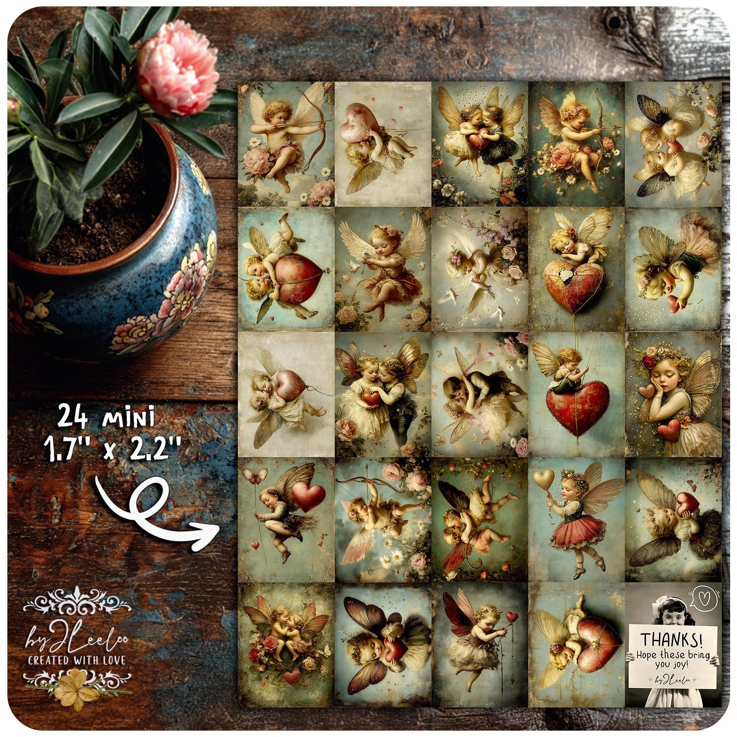 These little cupids drift through vintage florals and stitched hearts, carrying secrets, wishes, and quiet promises.