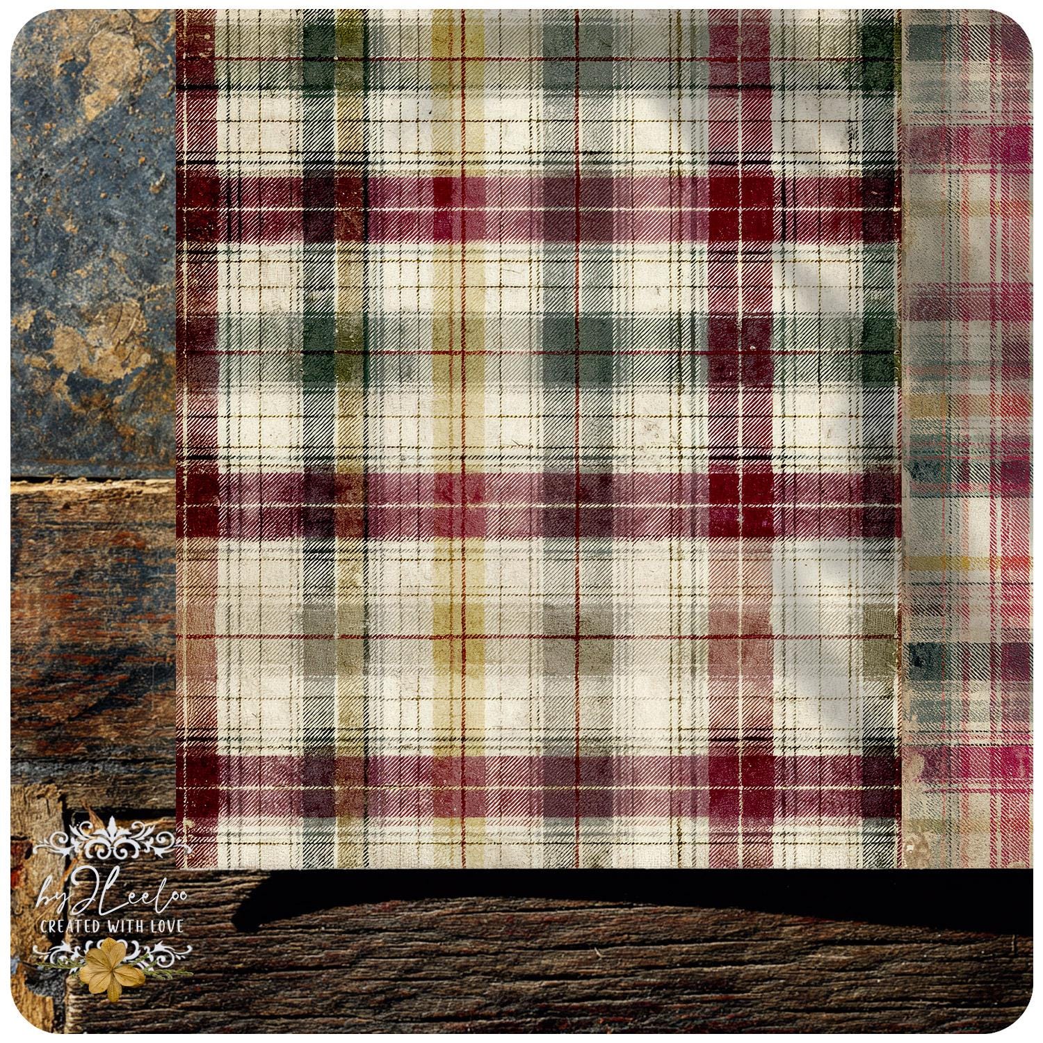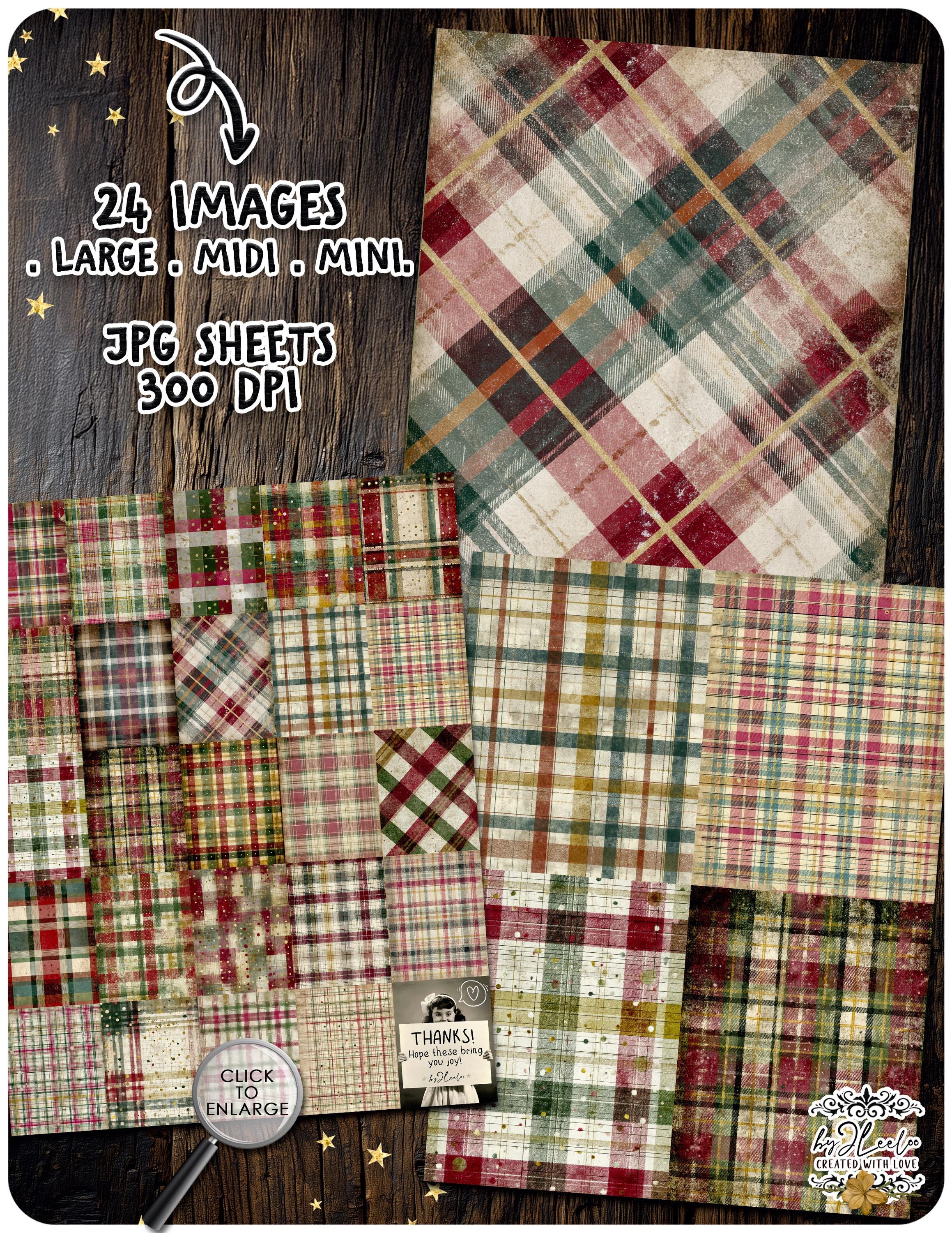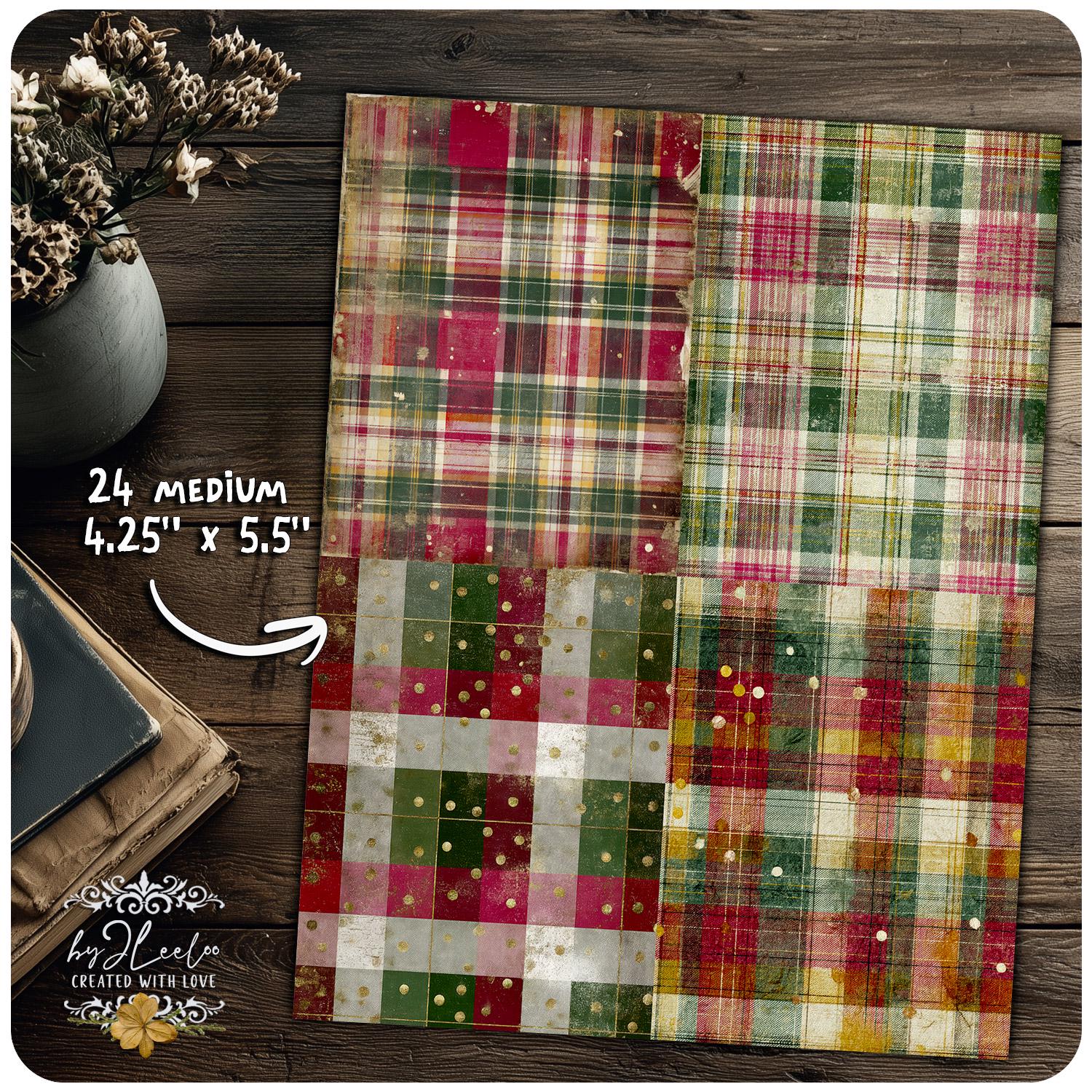 These distressed plaid backgrounds are designed for junk journal lovers who appreciate warmth, imperfection and vintage character. The look is soft, archival and lived-in — perfect for creating pages that feel nostalgic, comforting and timeless rather than loud or overly decorative.