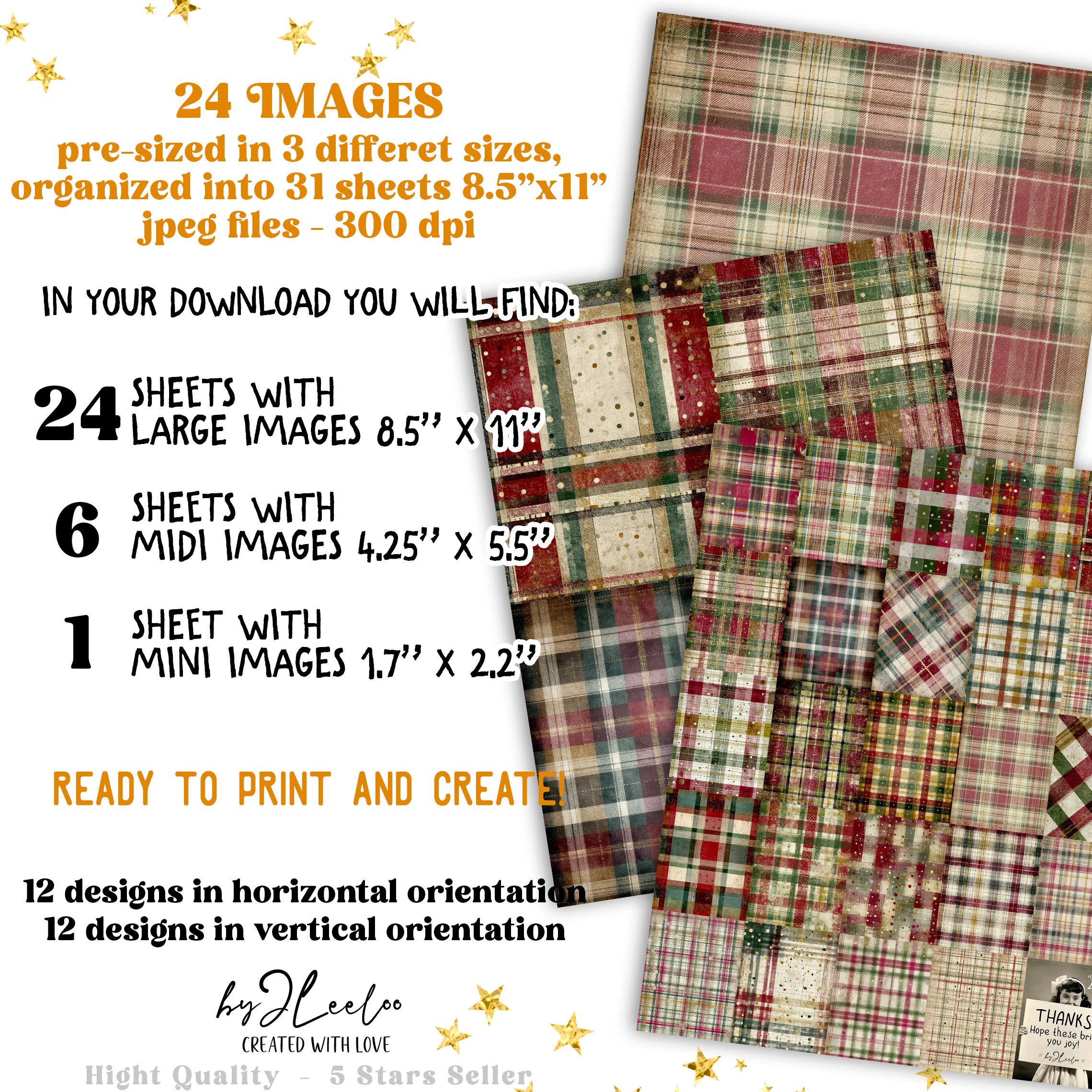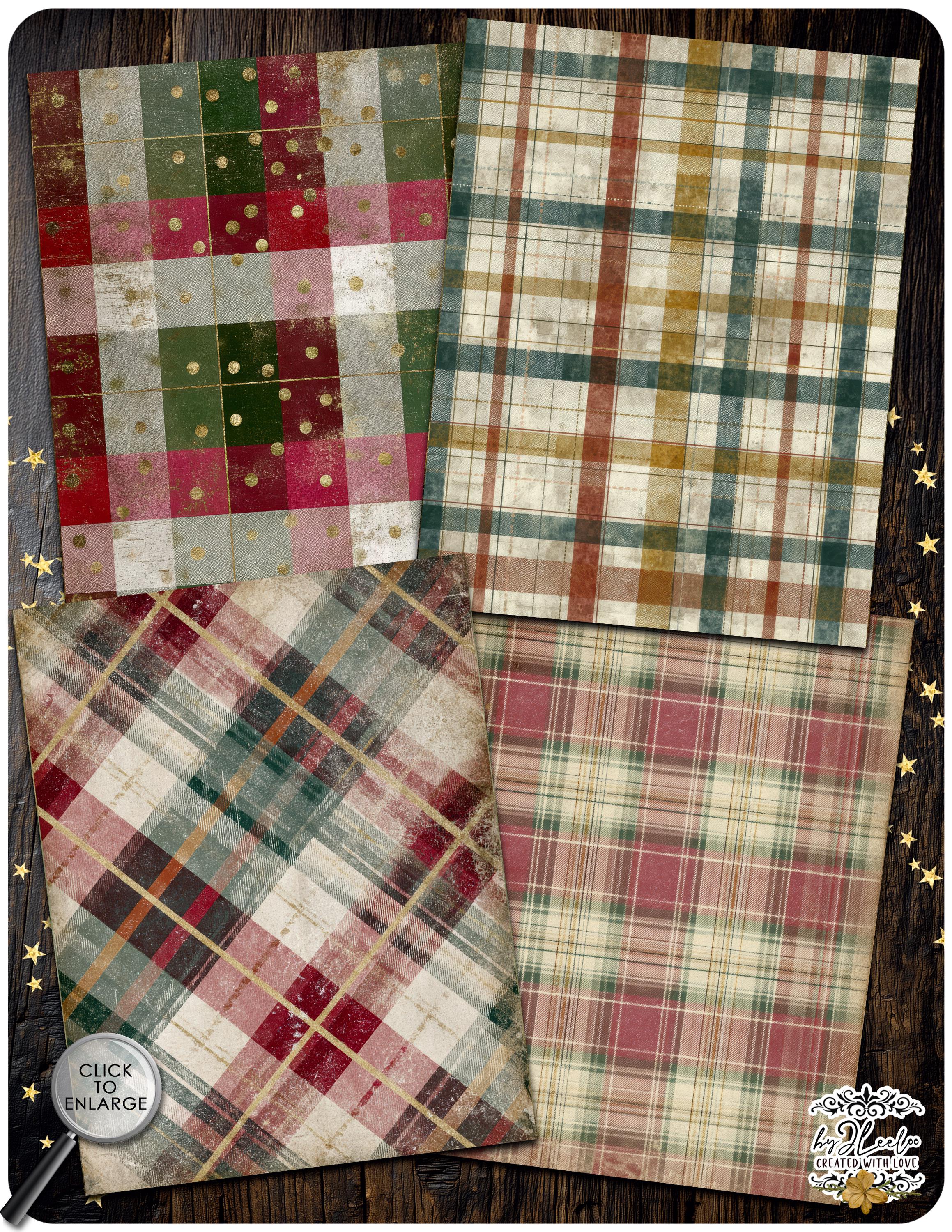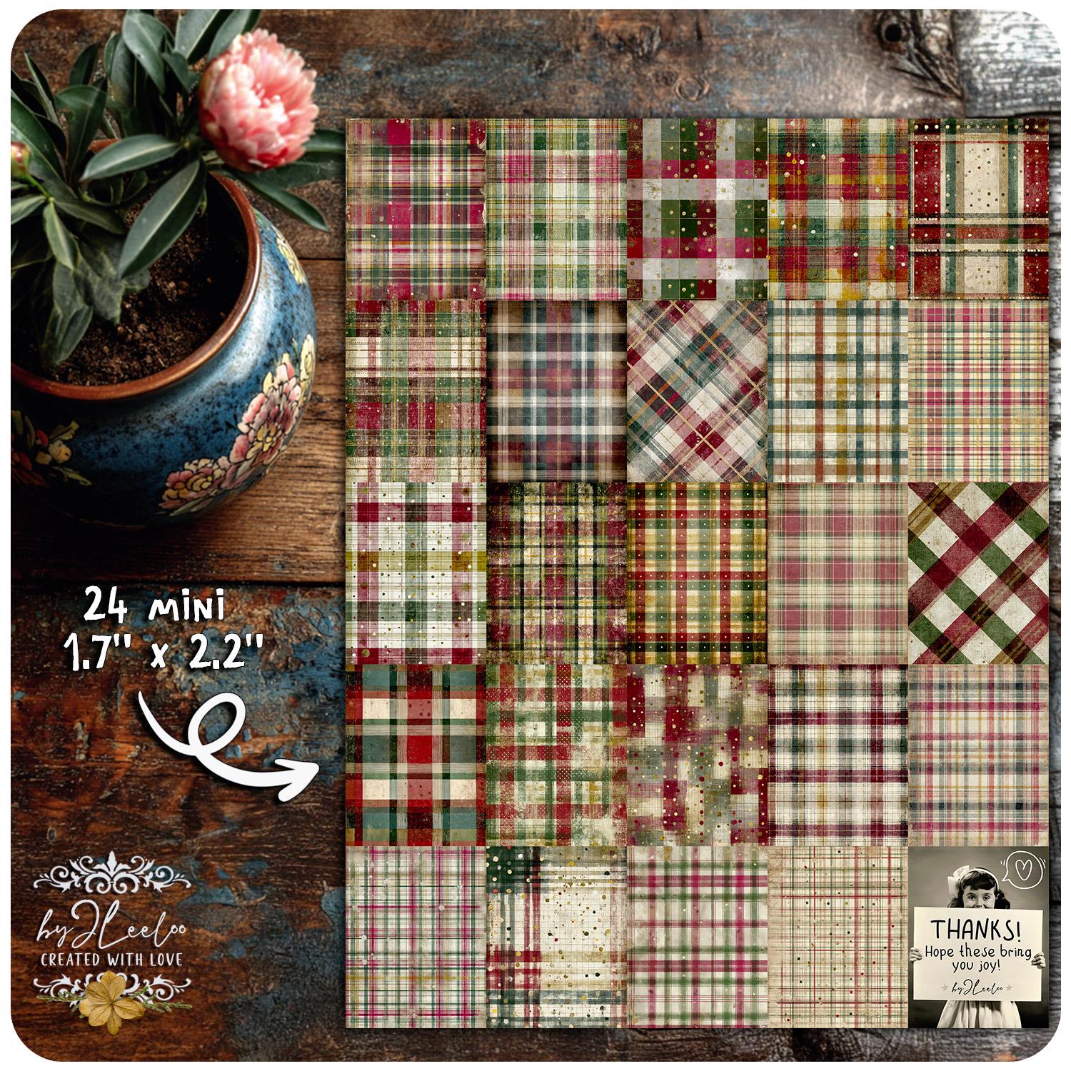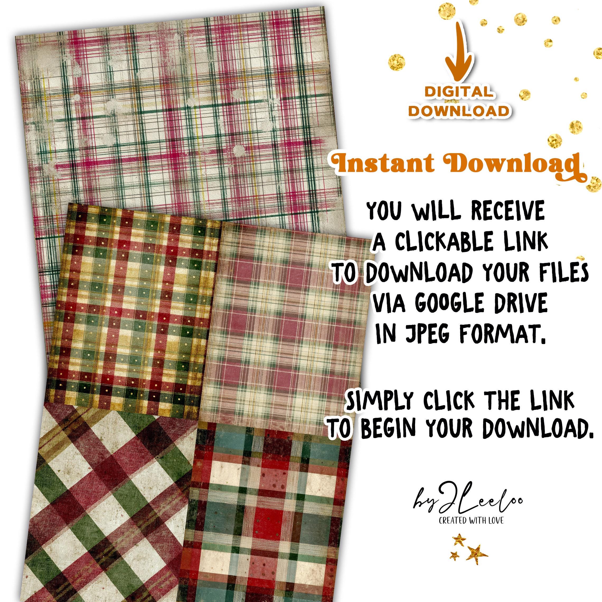 These distressed plaid backgrounds are designed for junk journal lovers who appreciate warmth, imperfection and vintage character. The look is soft, archival and lived-in — perfect for creating pages that feel nostalgic, comforting and timeless rather than loud or overly decorative.