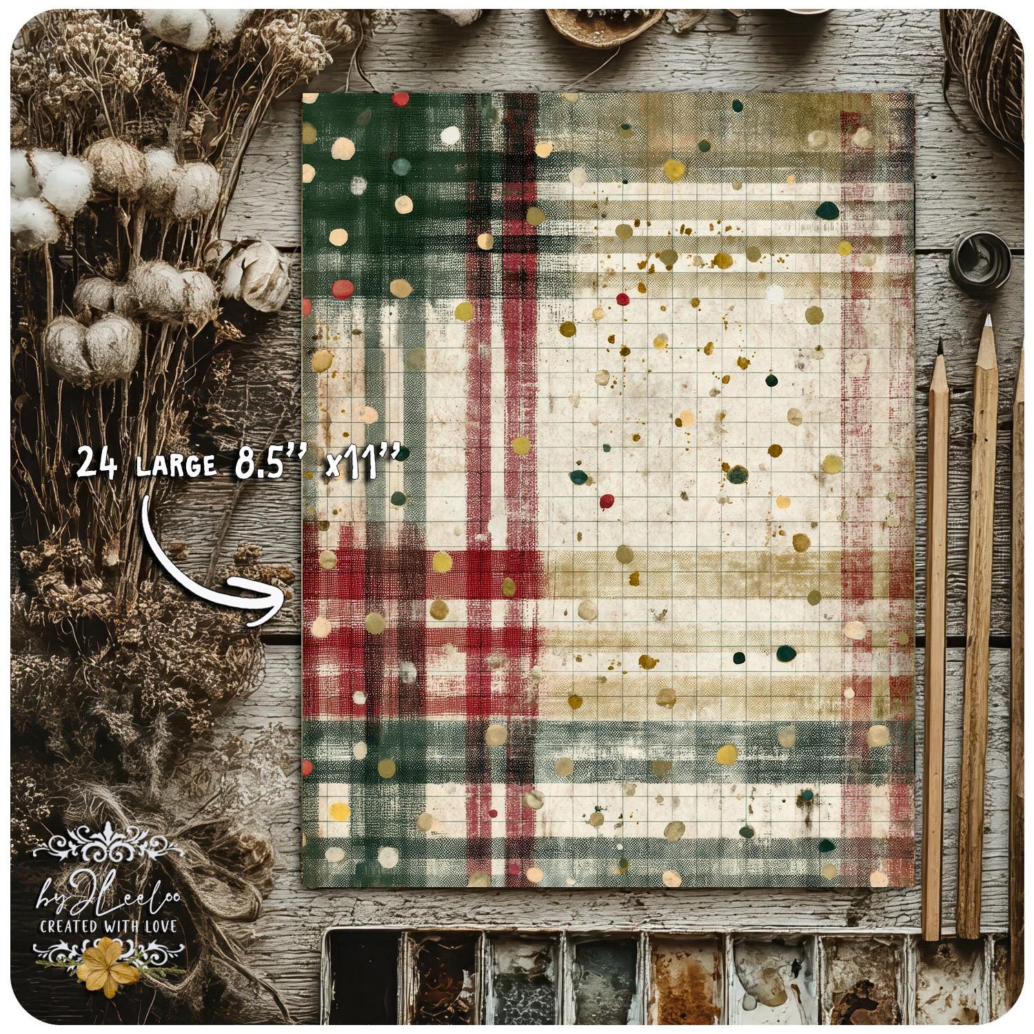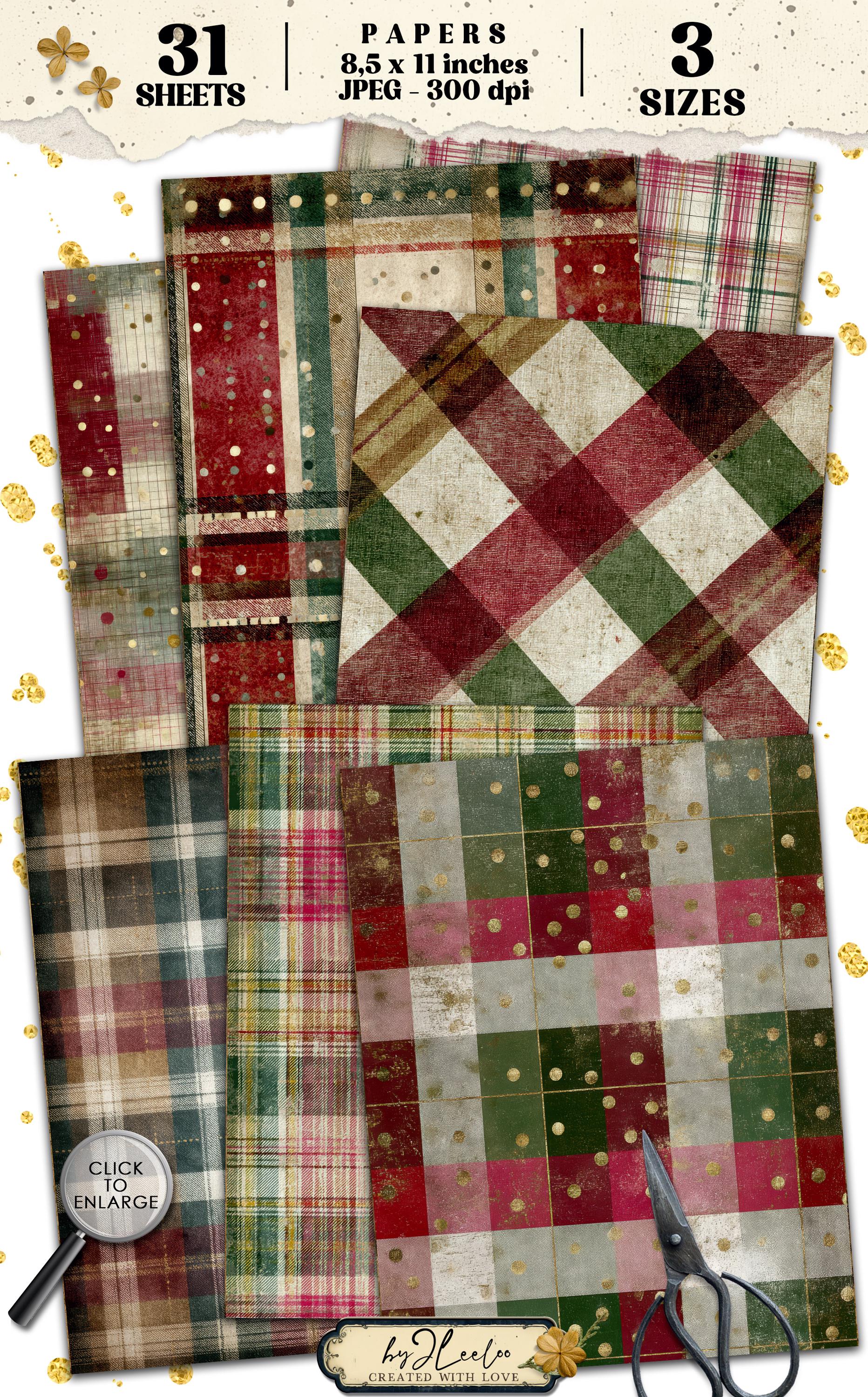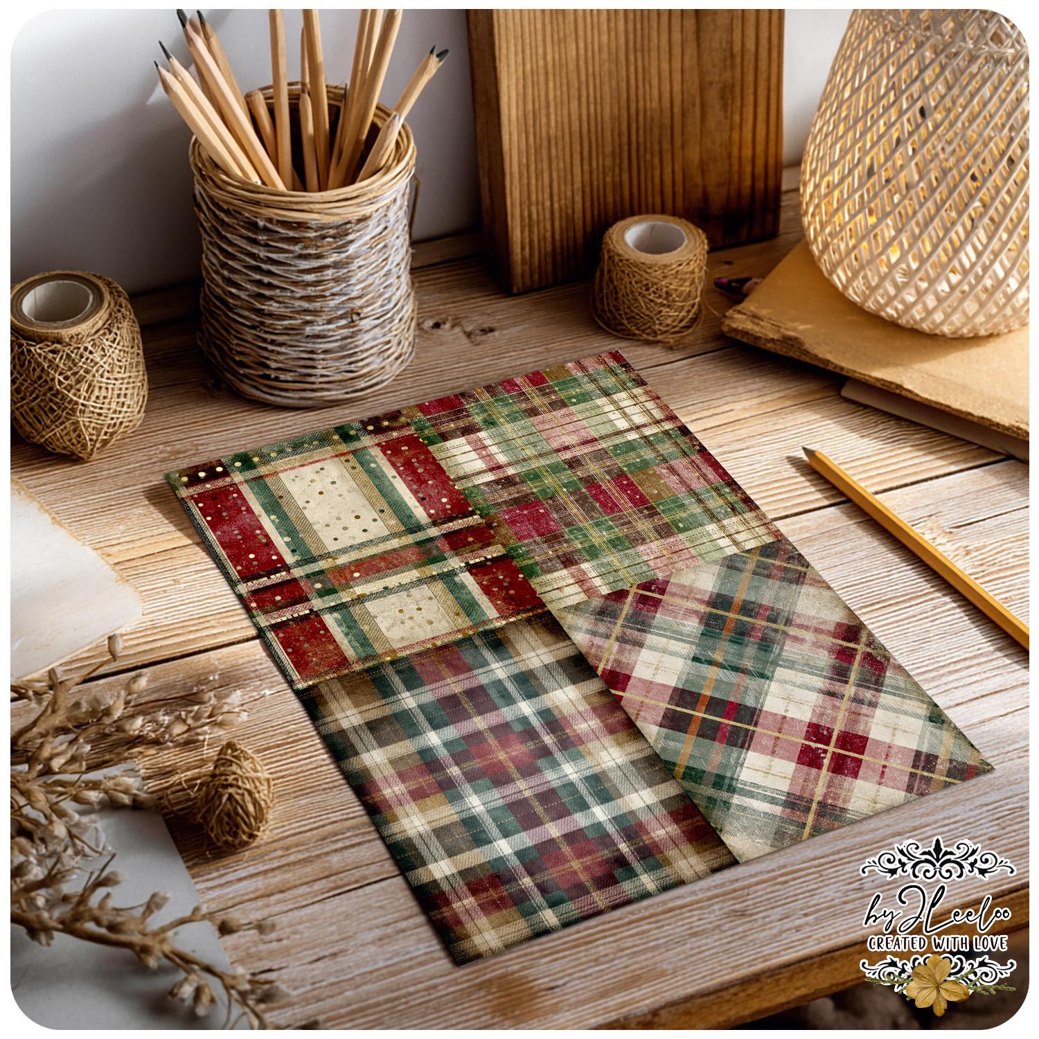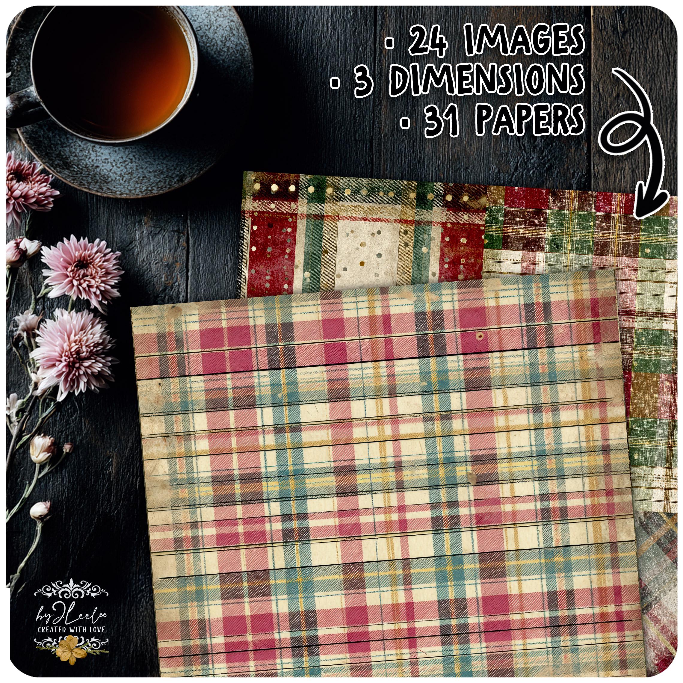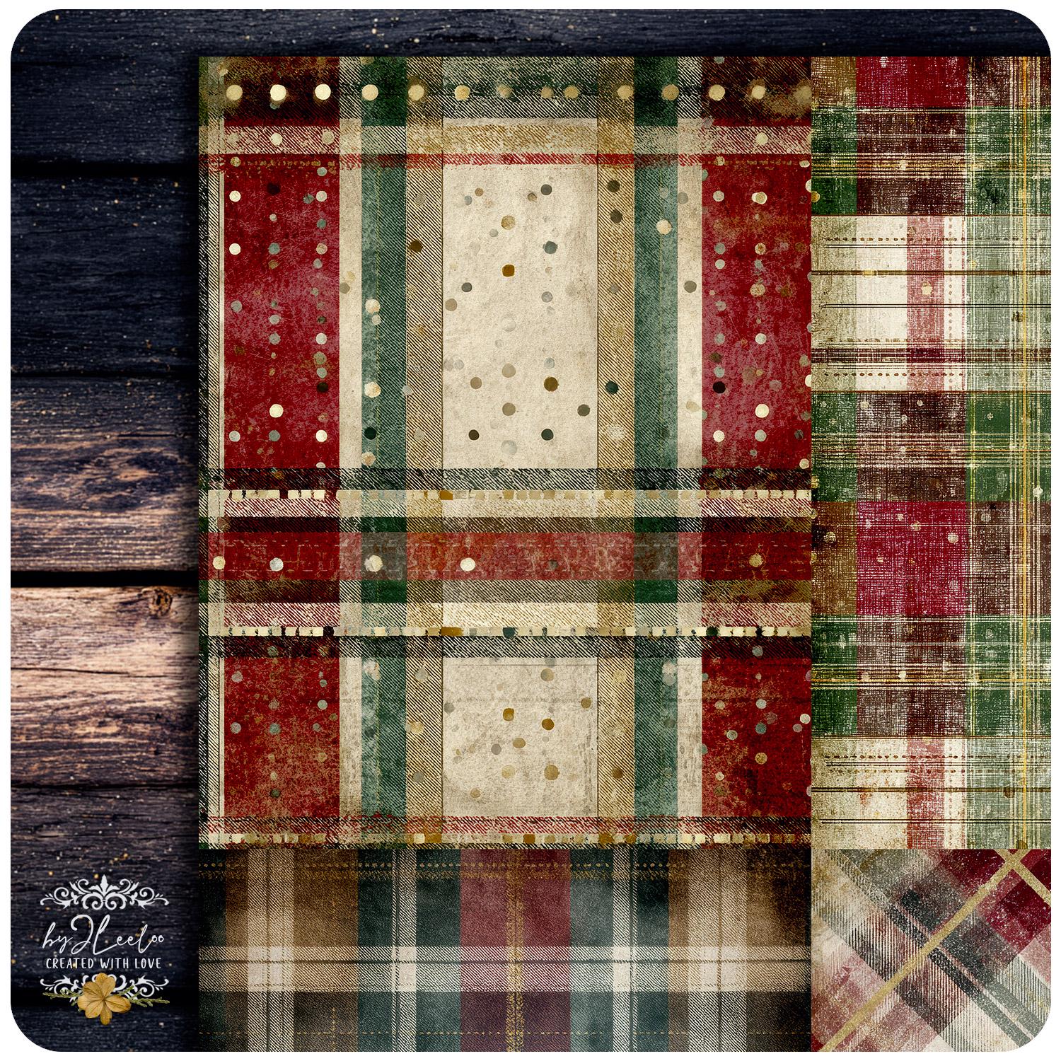 ✨ VICTORIAN PLAID is a collection of vintage Christmas papers inspired by classic Victorian plaid patterns and cozy, time-worn textures. Rich reds, pine greens and aged cream tones blend with distressed details to create cozy journal backgrounds with an authentic old-world feel.