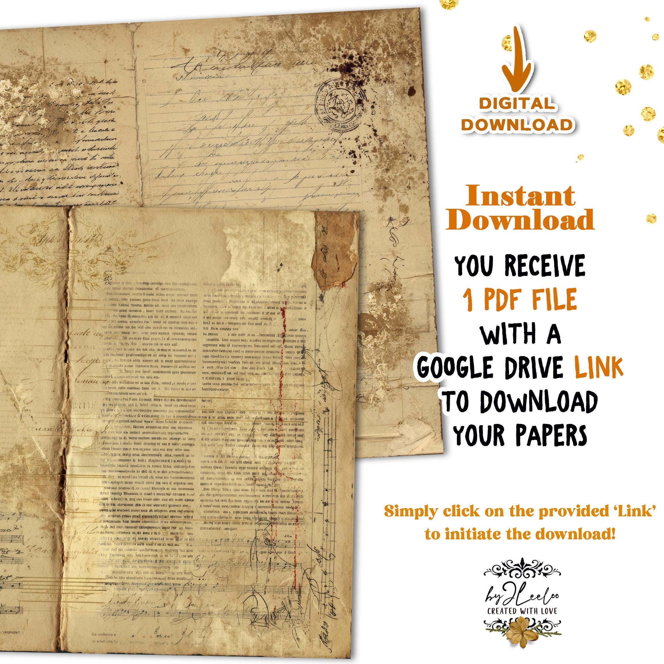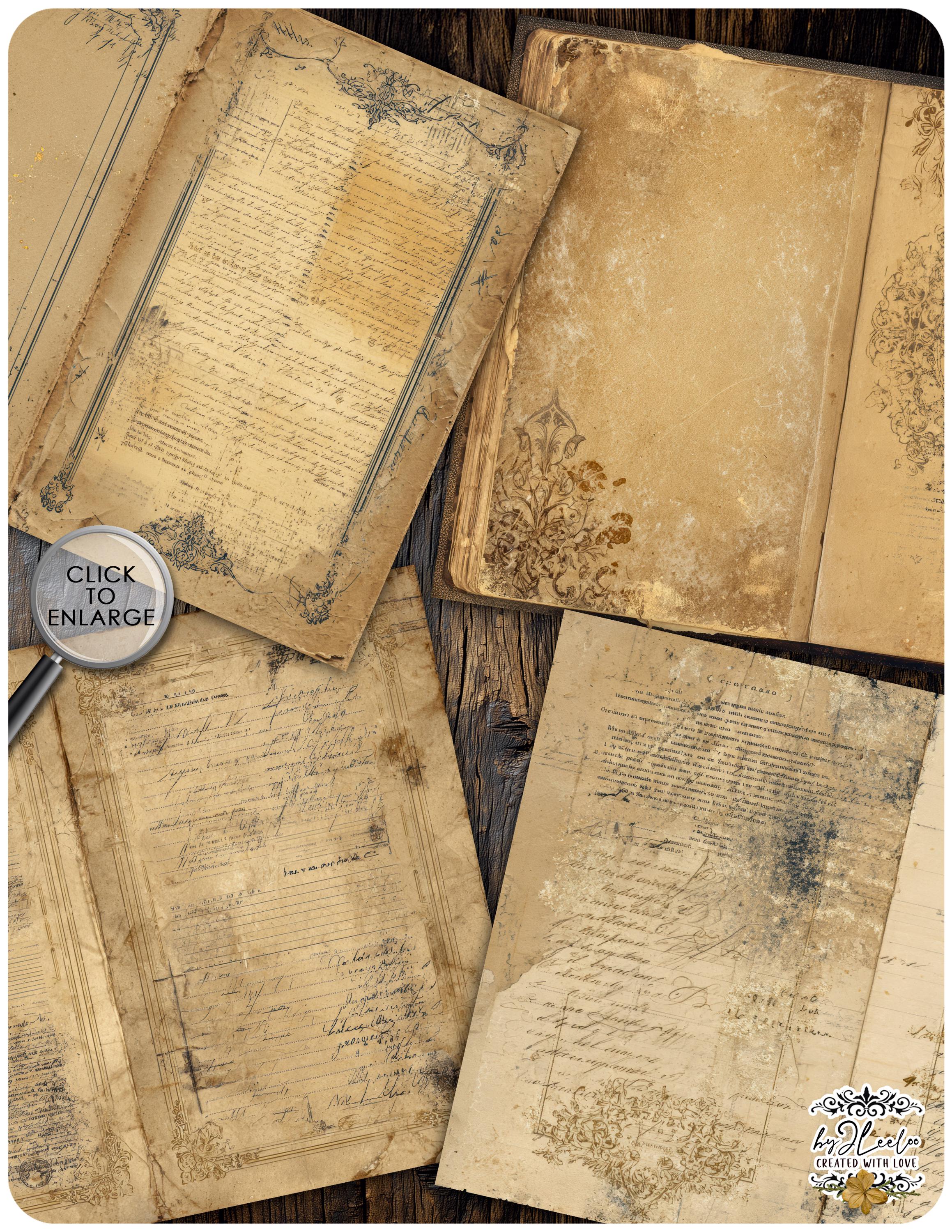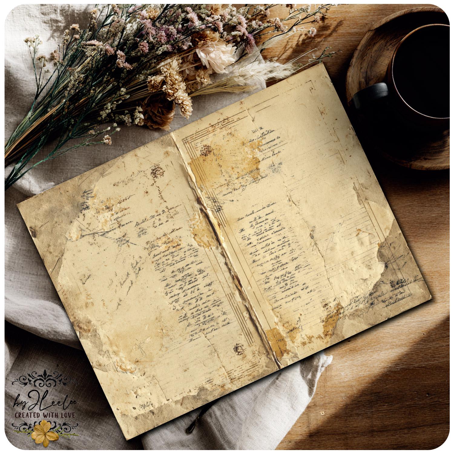These aged archival papers are ideal as journal bases, background spreads or foundation pages to build stories, memory journals, art journals and narrative paper projects.