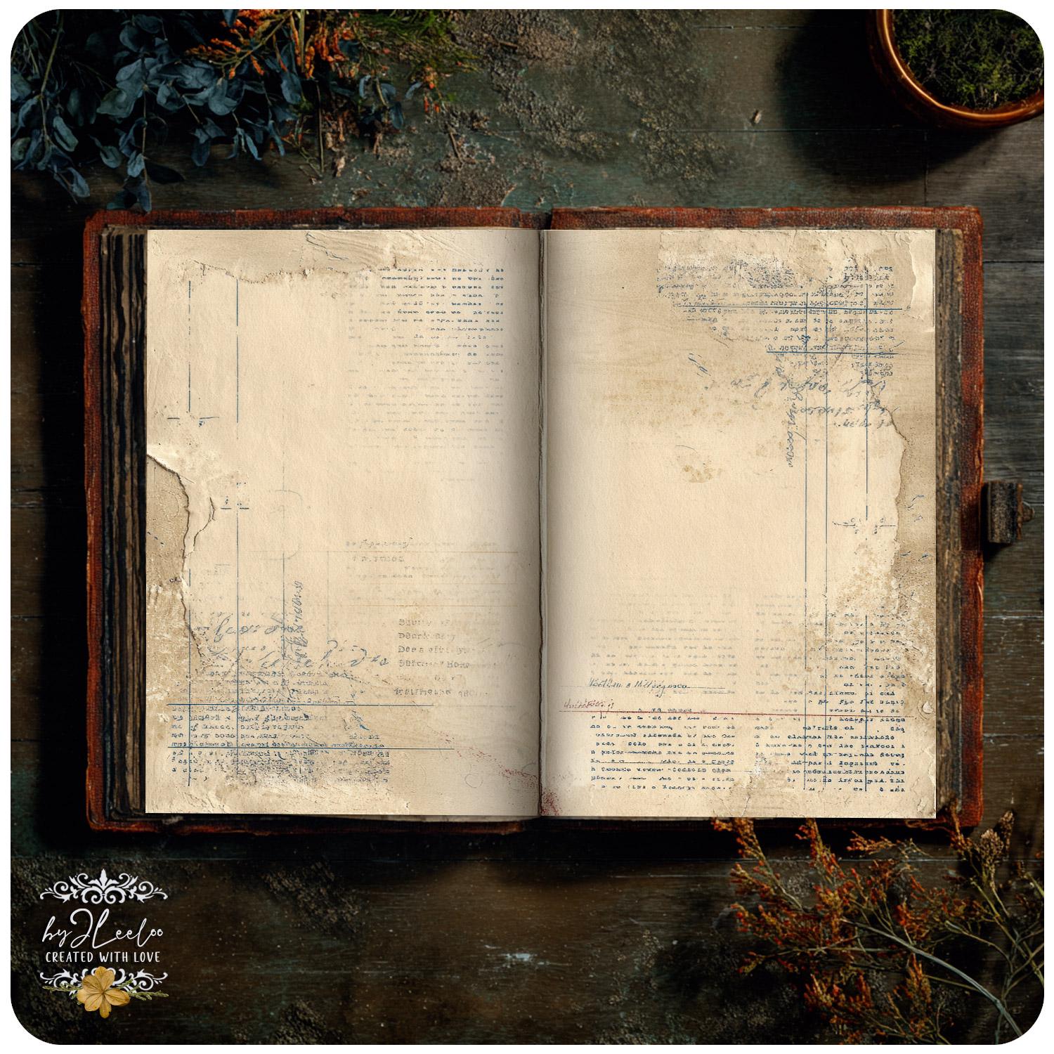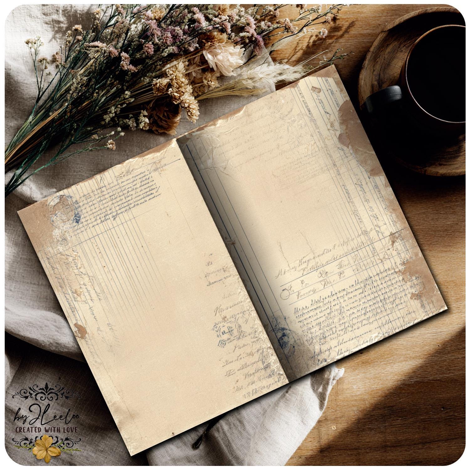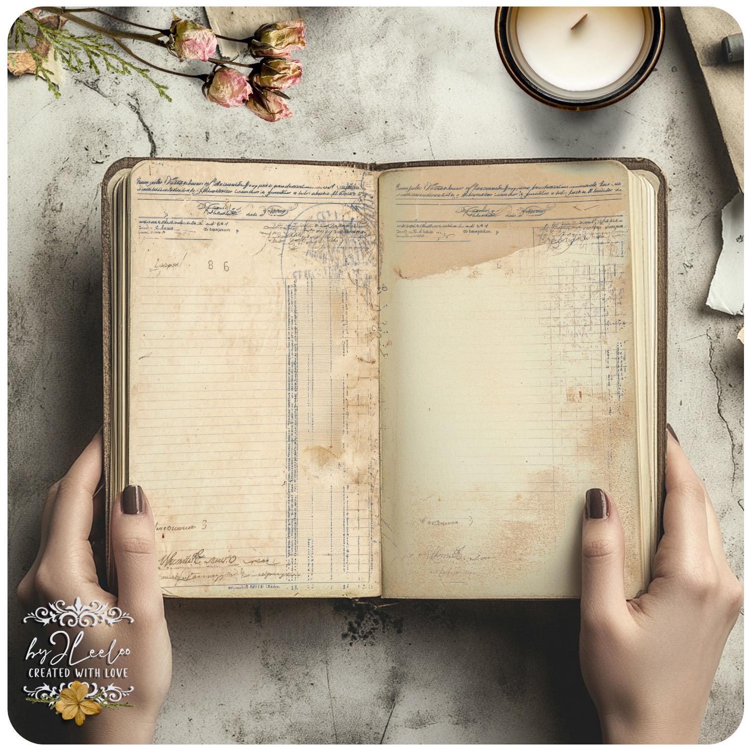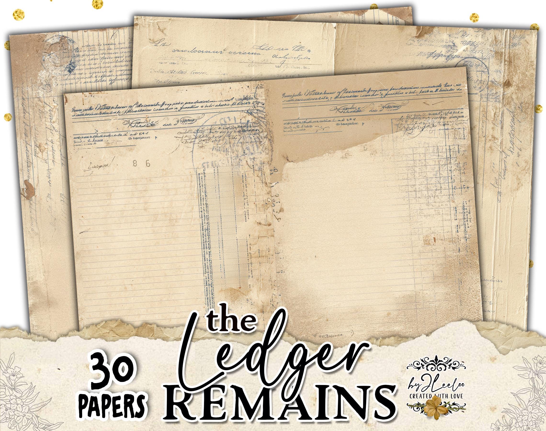 ✨ THE LEDGER REMAINS is a collection of 30 double-page vintage ledger journal backgrounds designed in soft, light neutral tones.