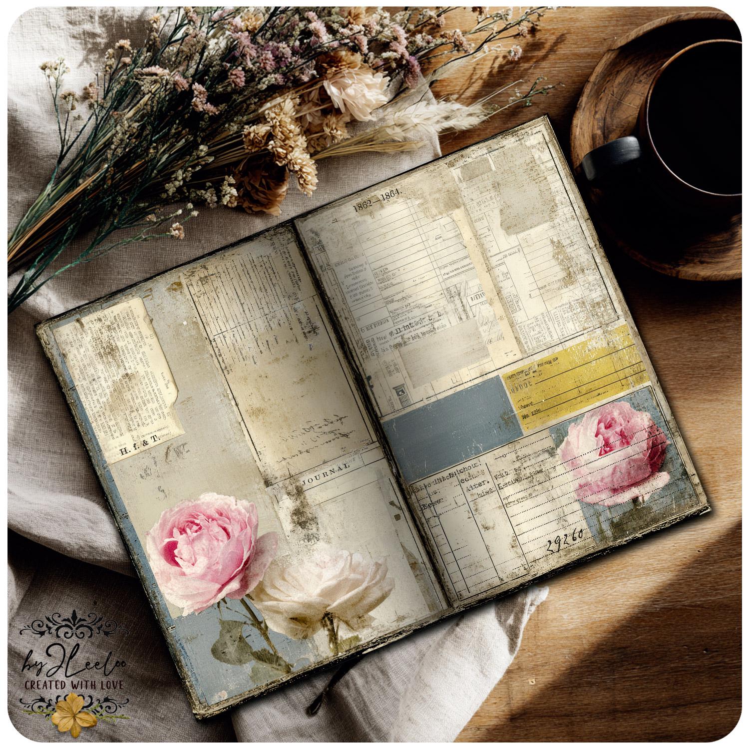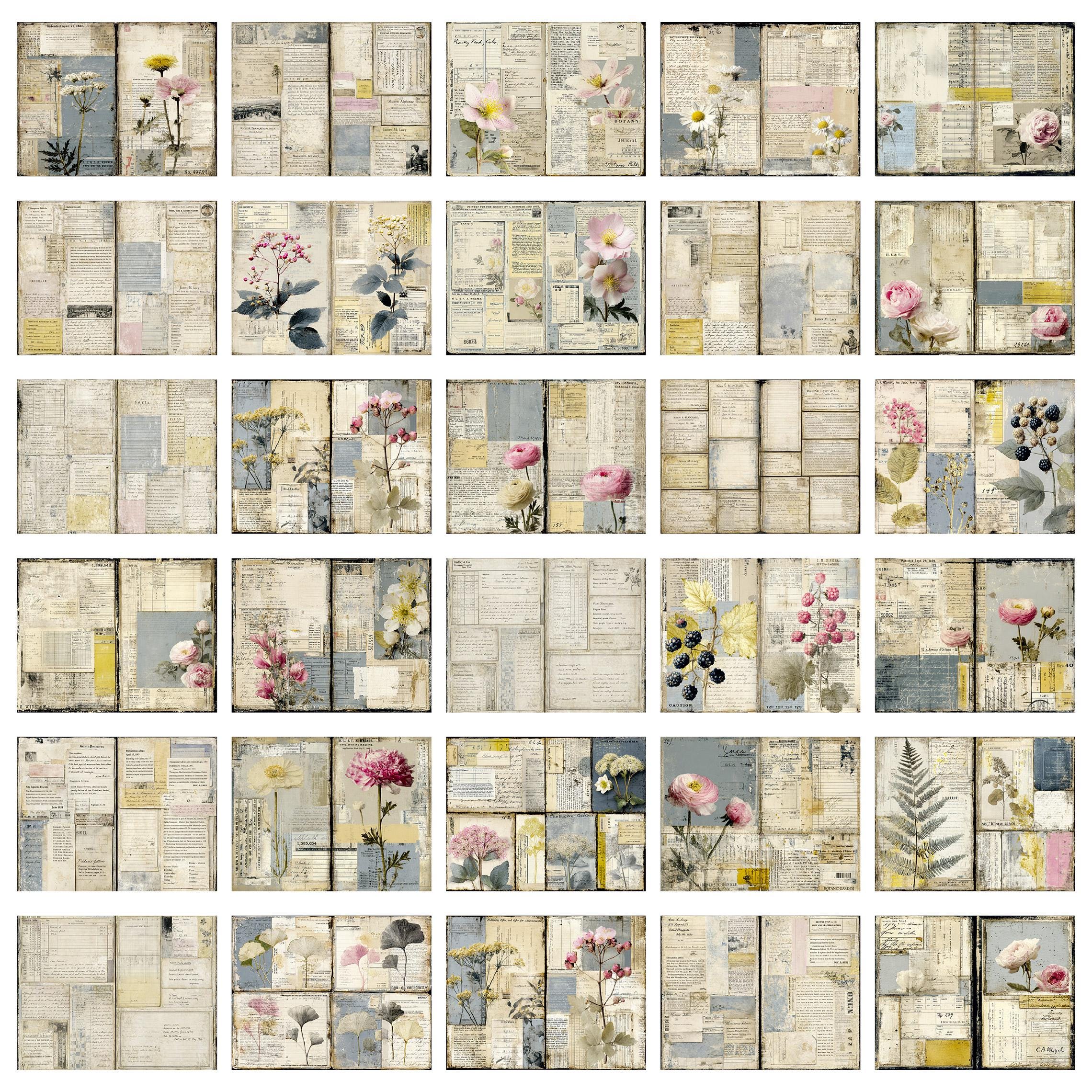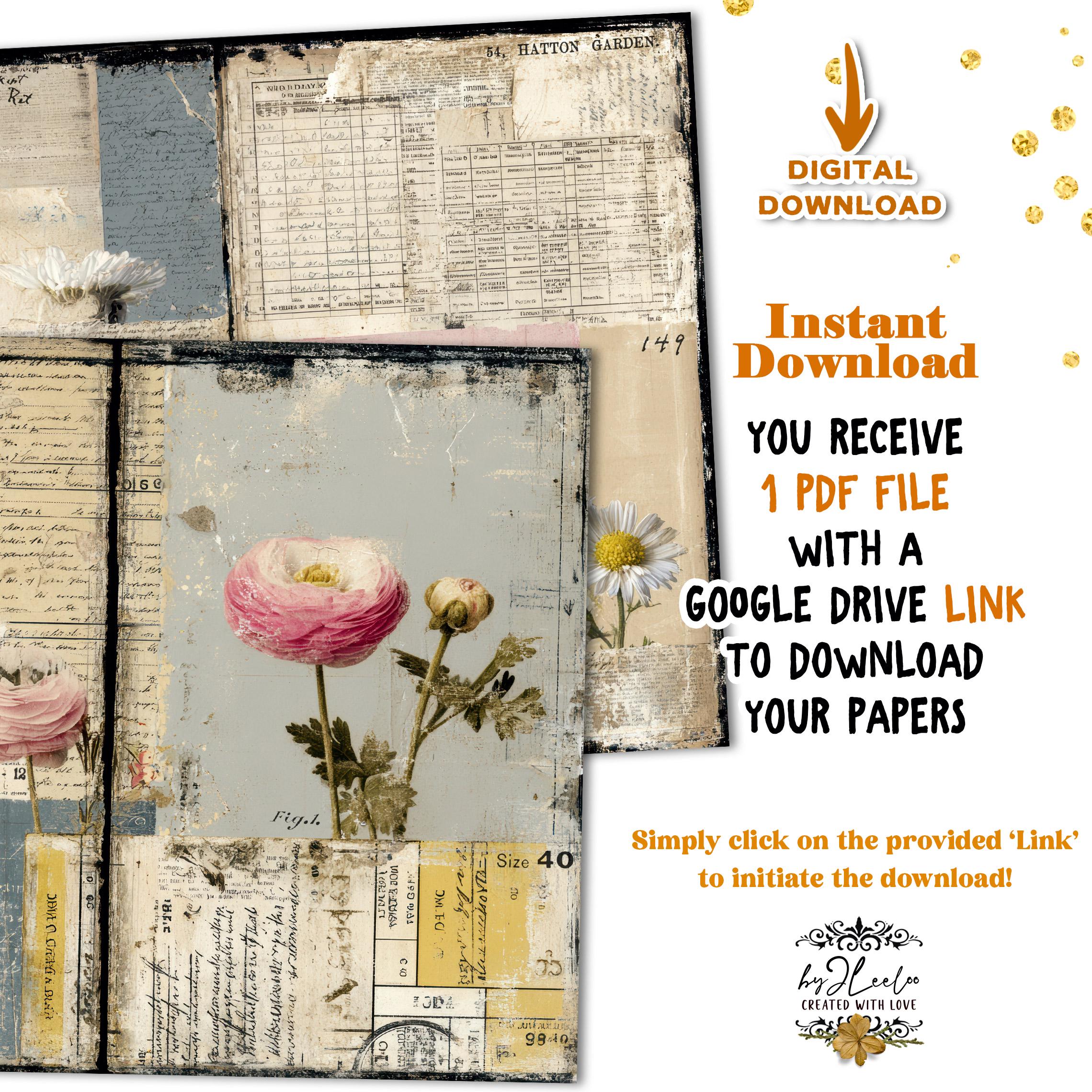 The style is openly grunge and worn, ideal for junk journals, mixed media diaries, and narrative collage work where paper becomes atmosphere rather than information.