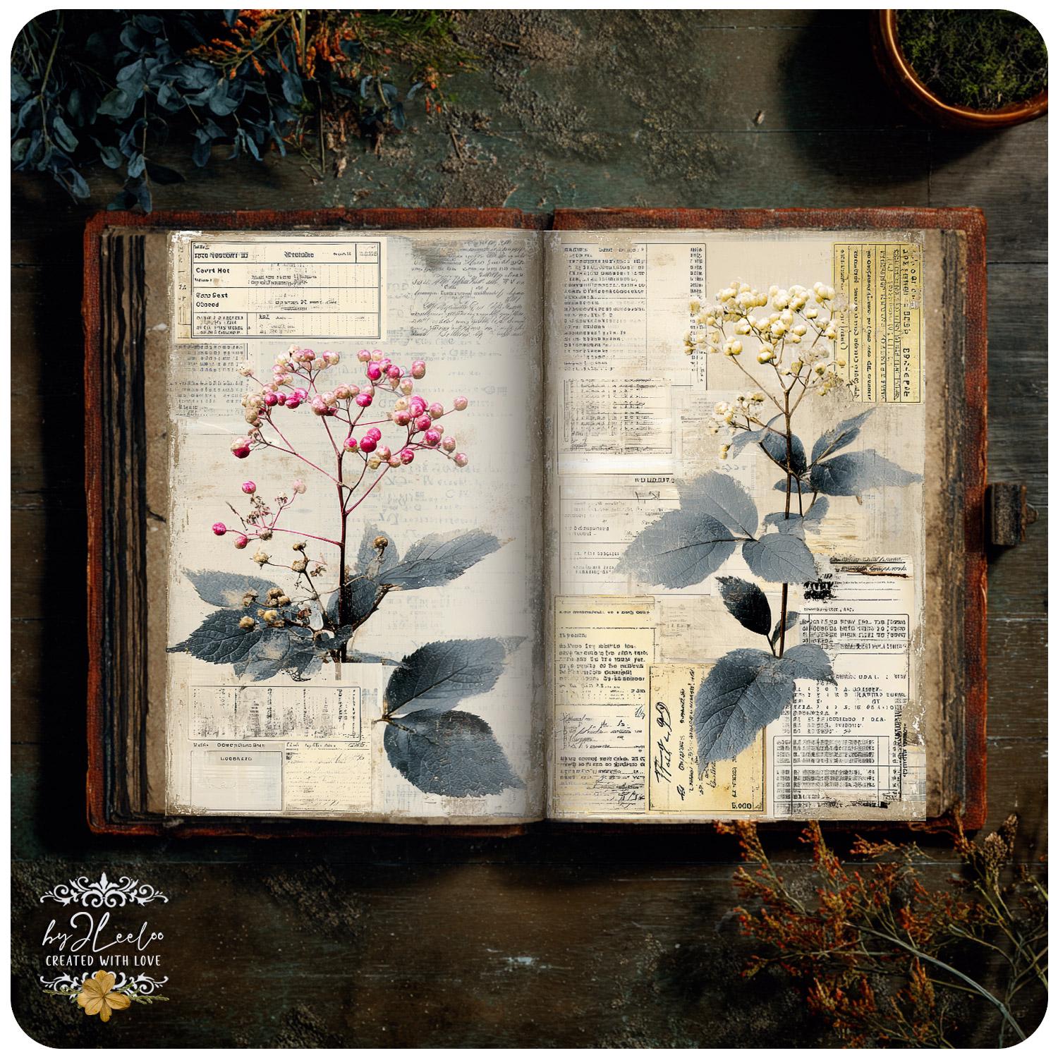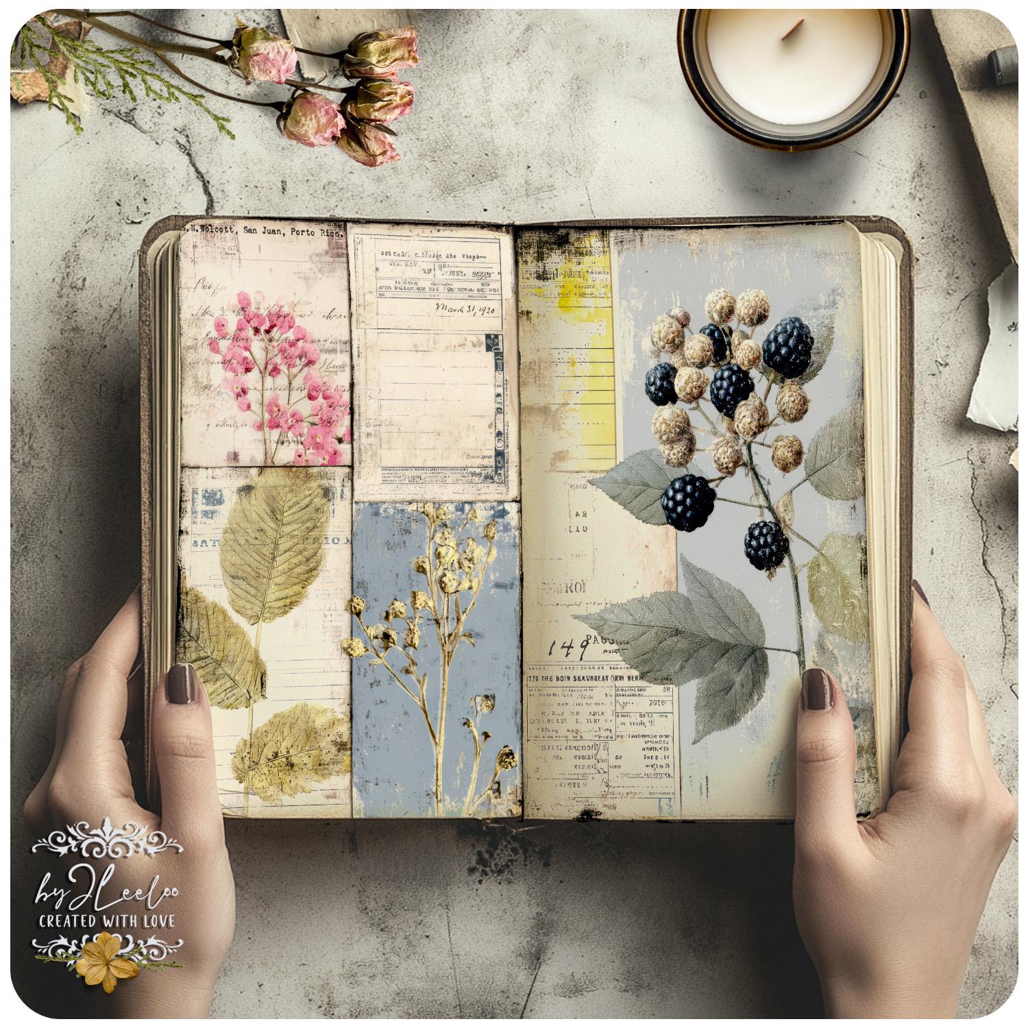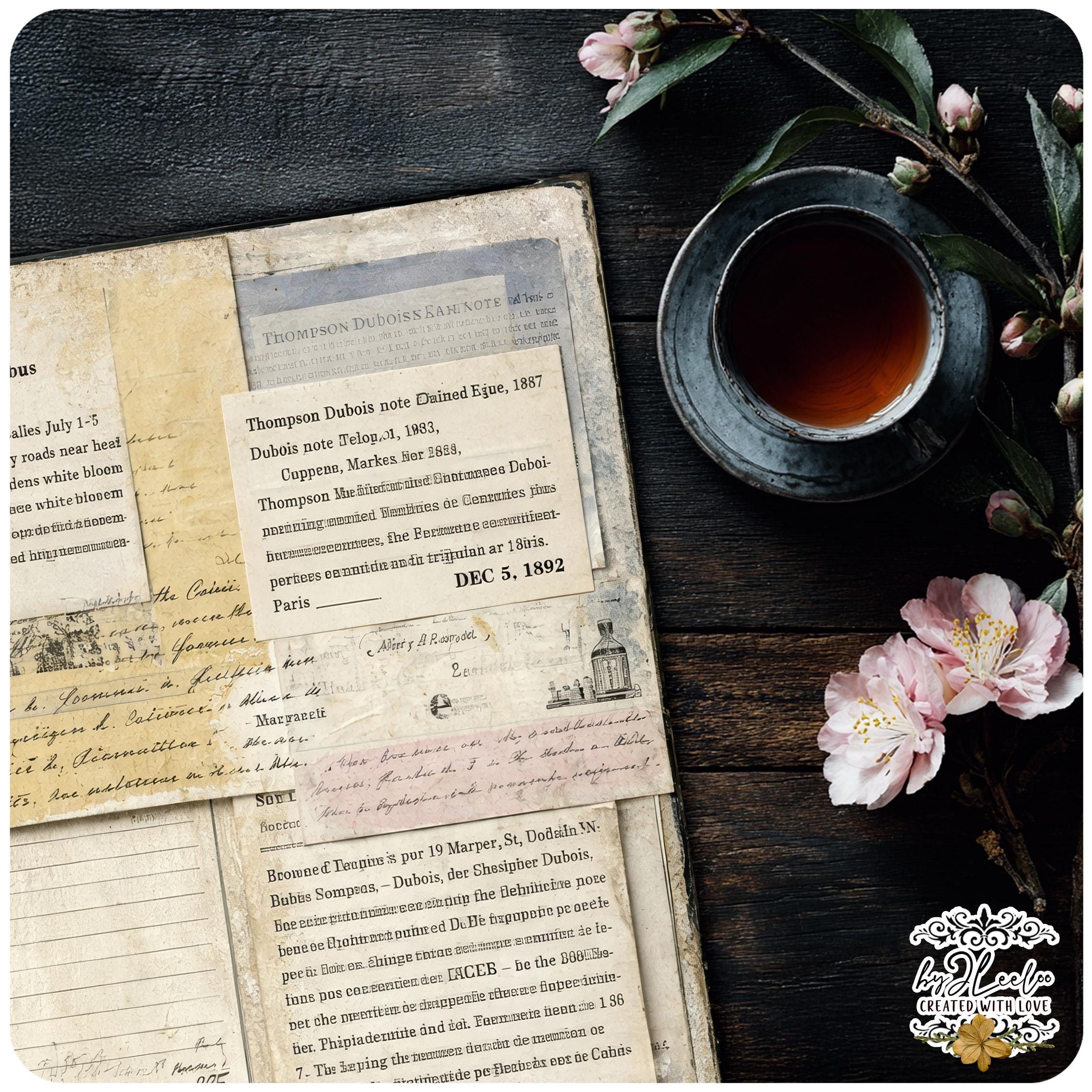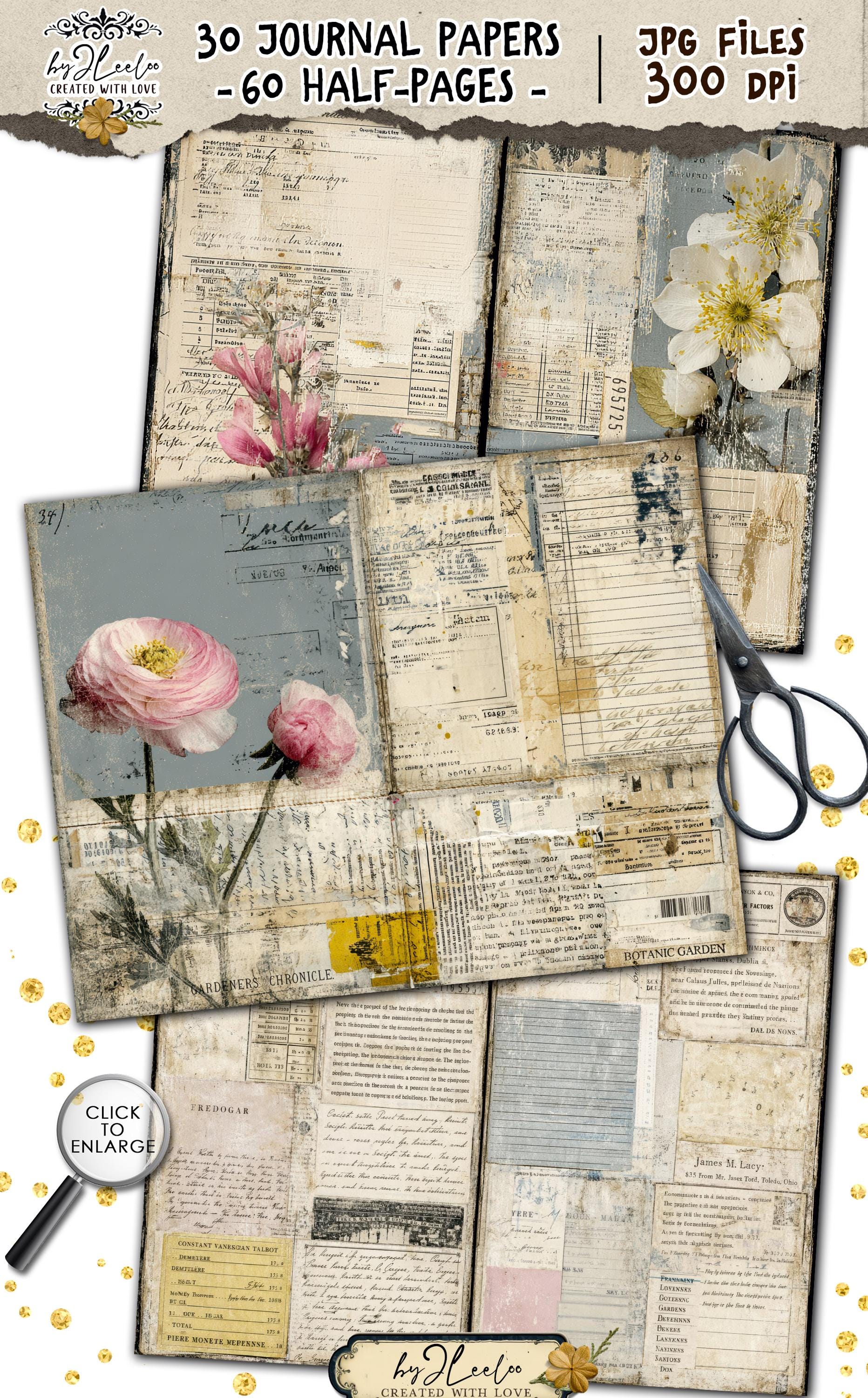The style is openly grunge and worn, ideal for junk journals, mixed media diaries, and narrative collage work where paper becomes atmosphere rather than information.