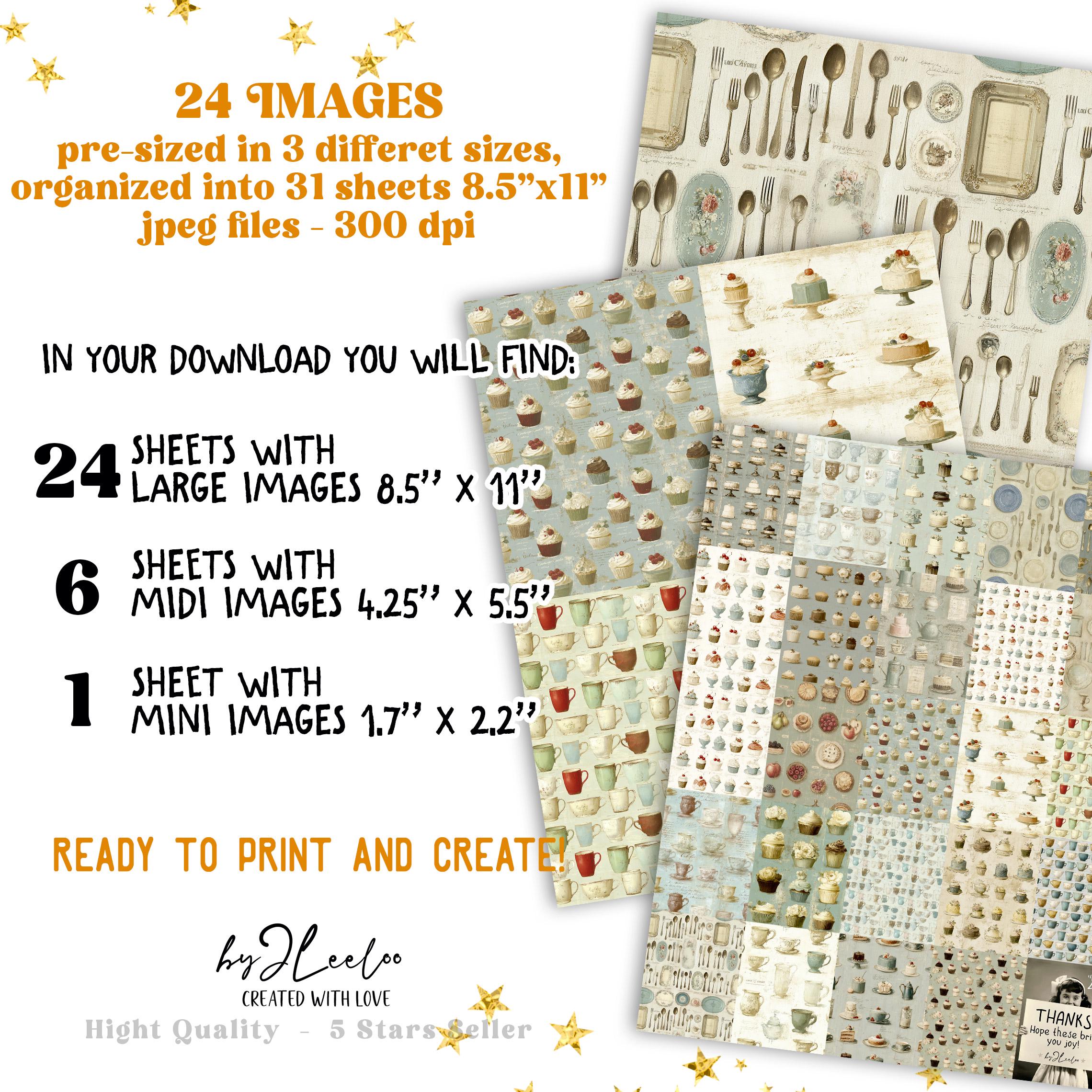 This collection is created for lovers of junk journals, scrapbooking, collage, mixed media, and paper crafts, and for those who seek images that work both as focal points and as quiet background layers.