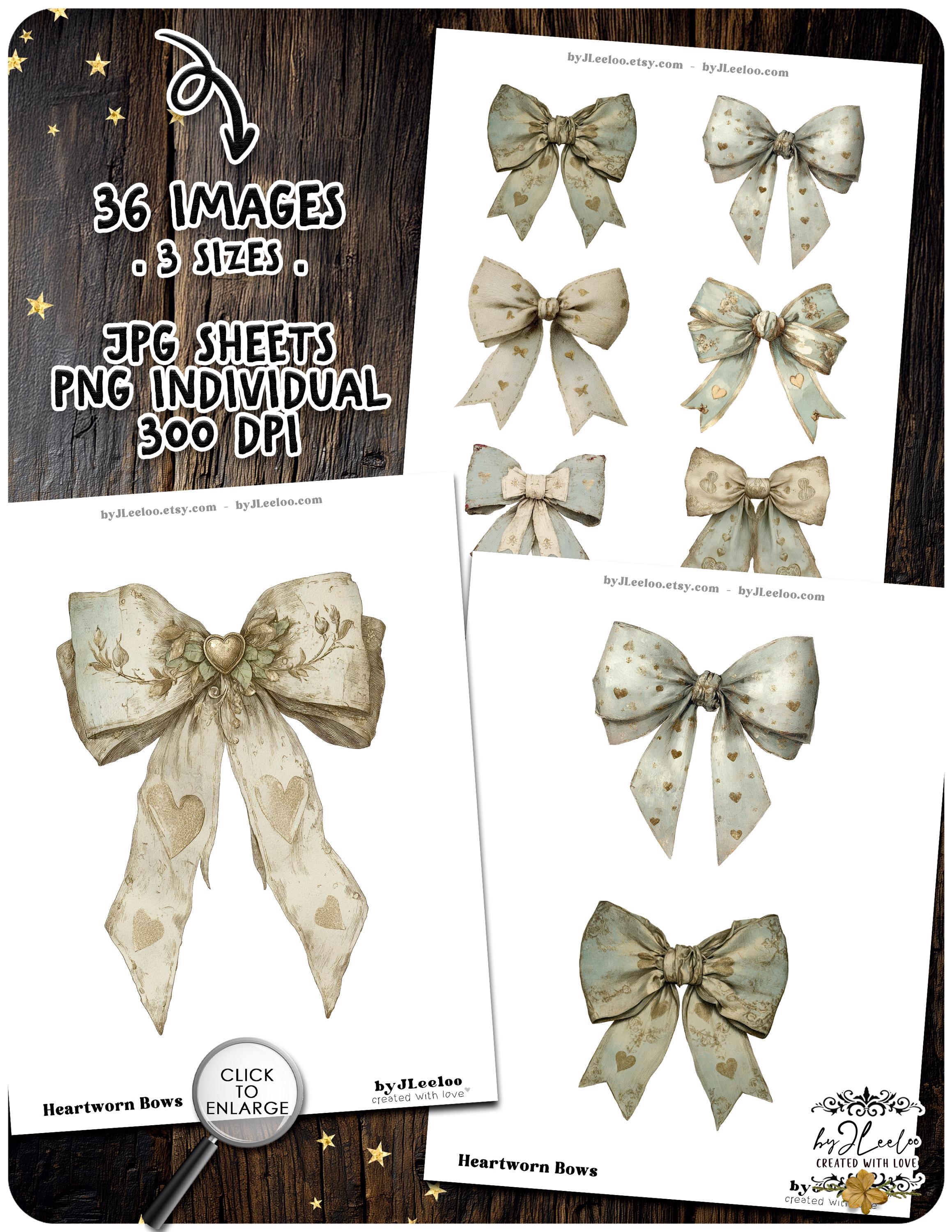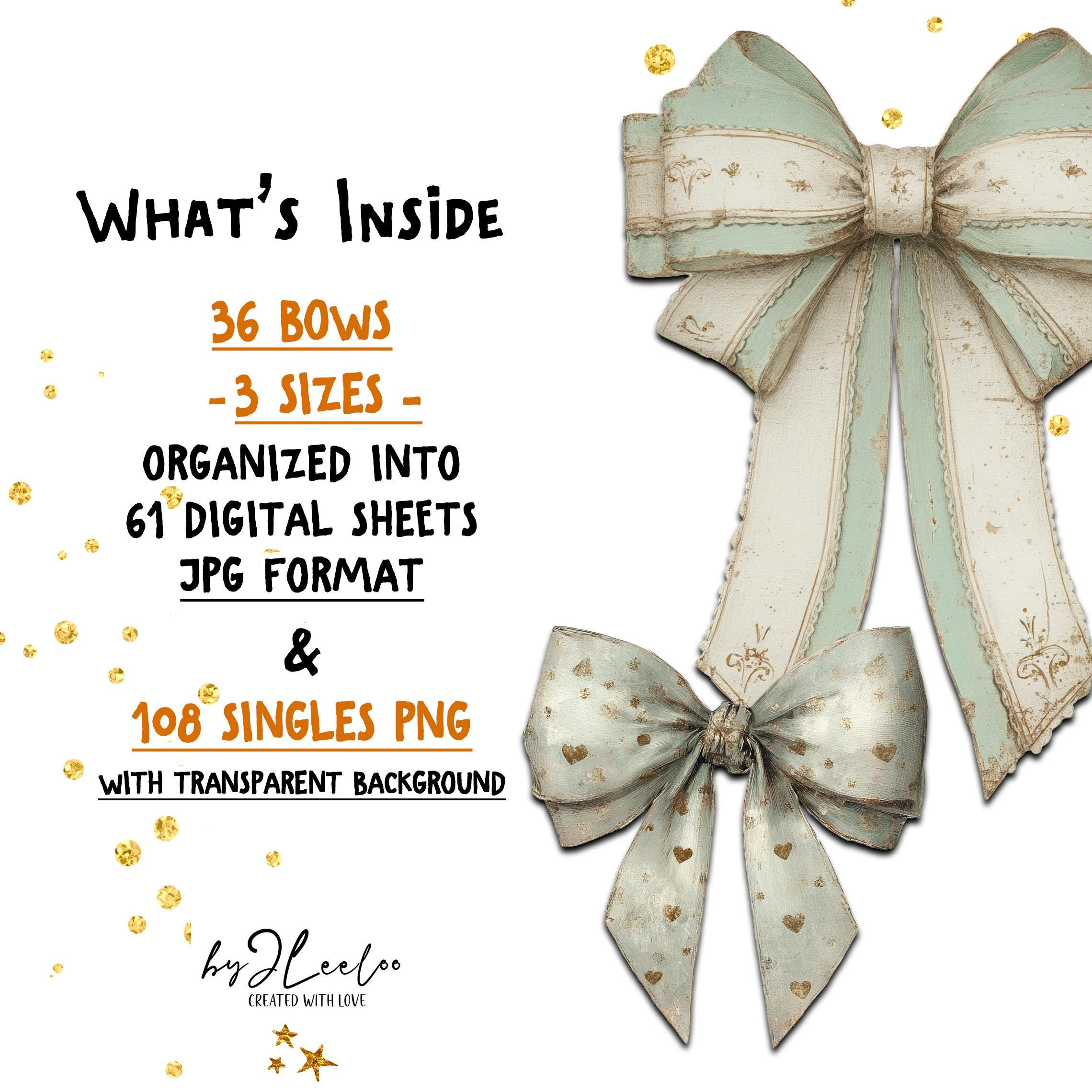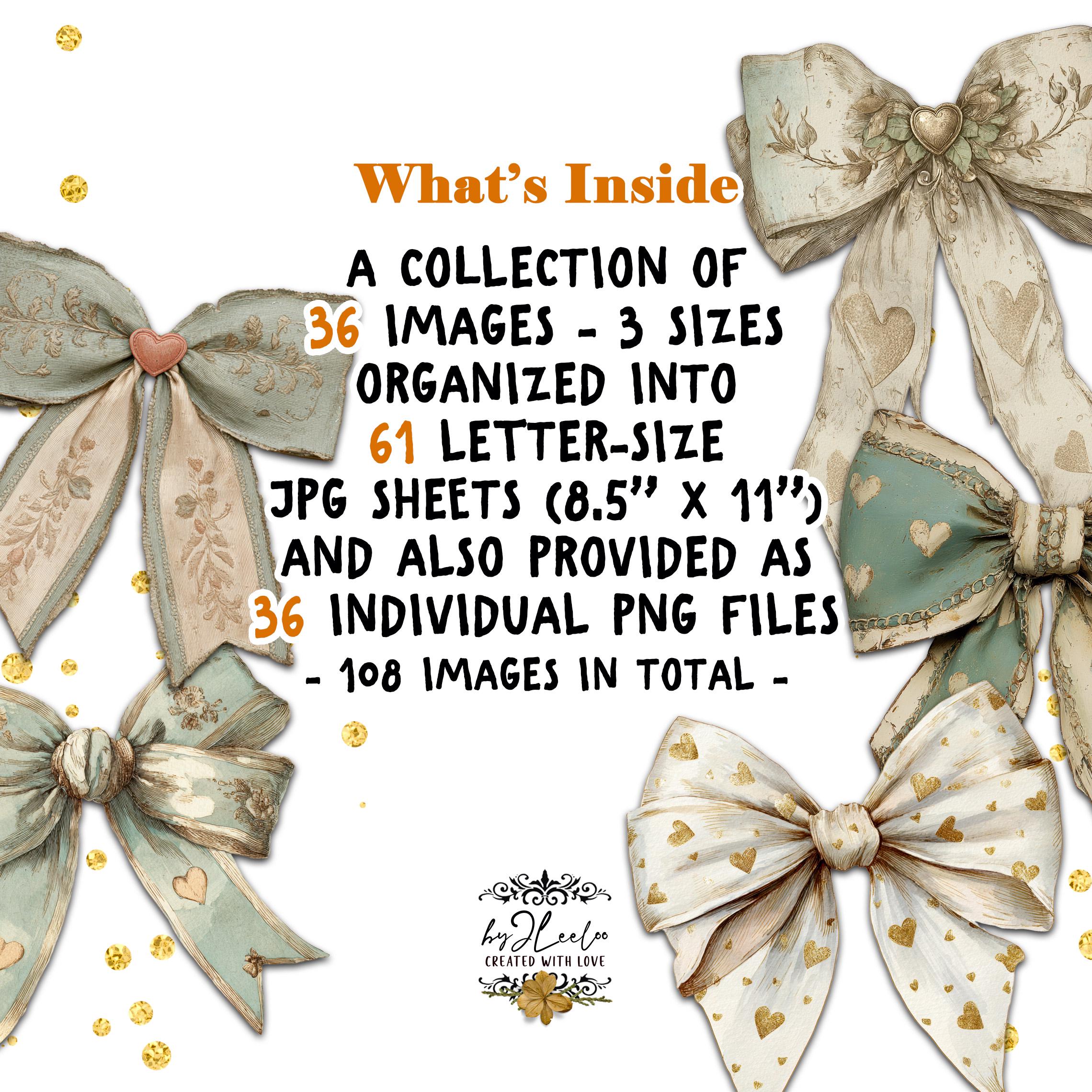 โข 61 Letter size JPG sheets featuring all 36 bows in 3 sizes