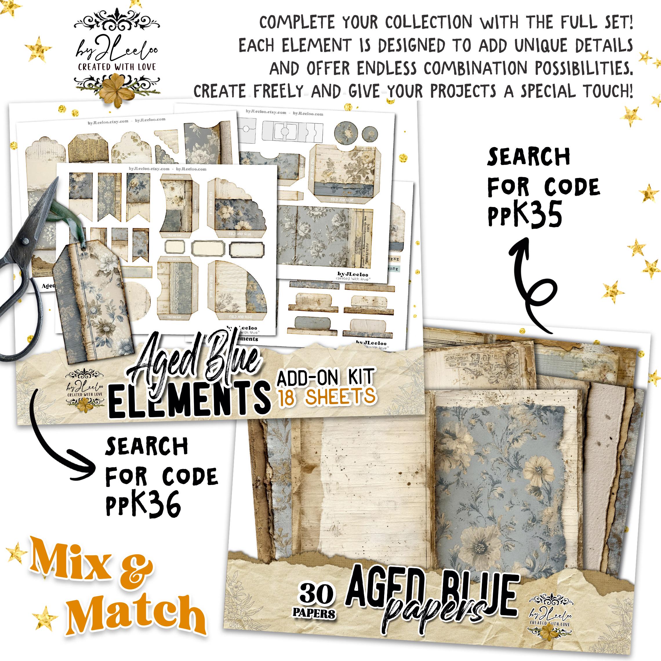 โ๏ธ Check out the MAIN KIT here: https://byjleeloo.etsy.com/listing/4446692197/aged-blue-papers-vintage-blue-junk