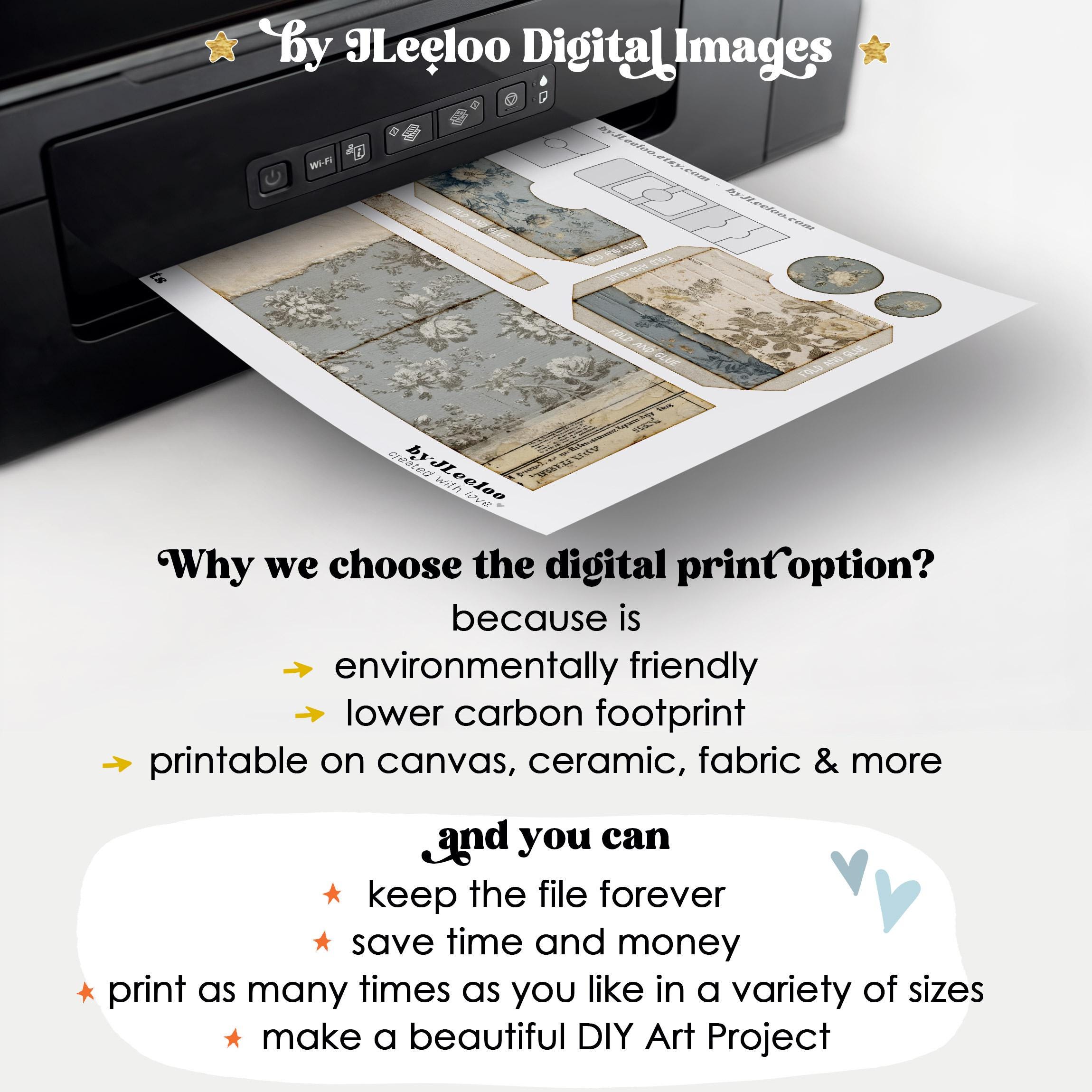 Each digital collage sheet will print out on a 8.5" x 11" page.