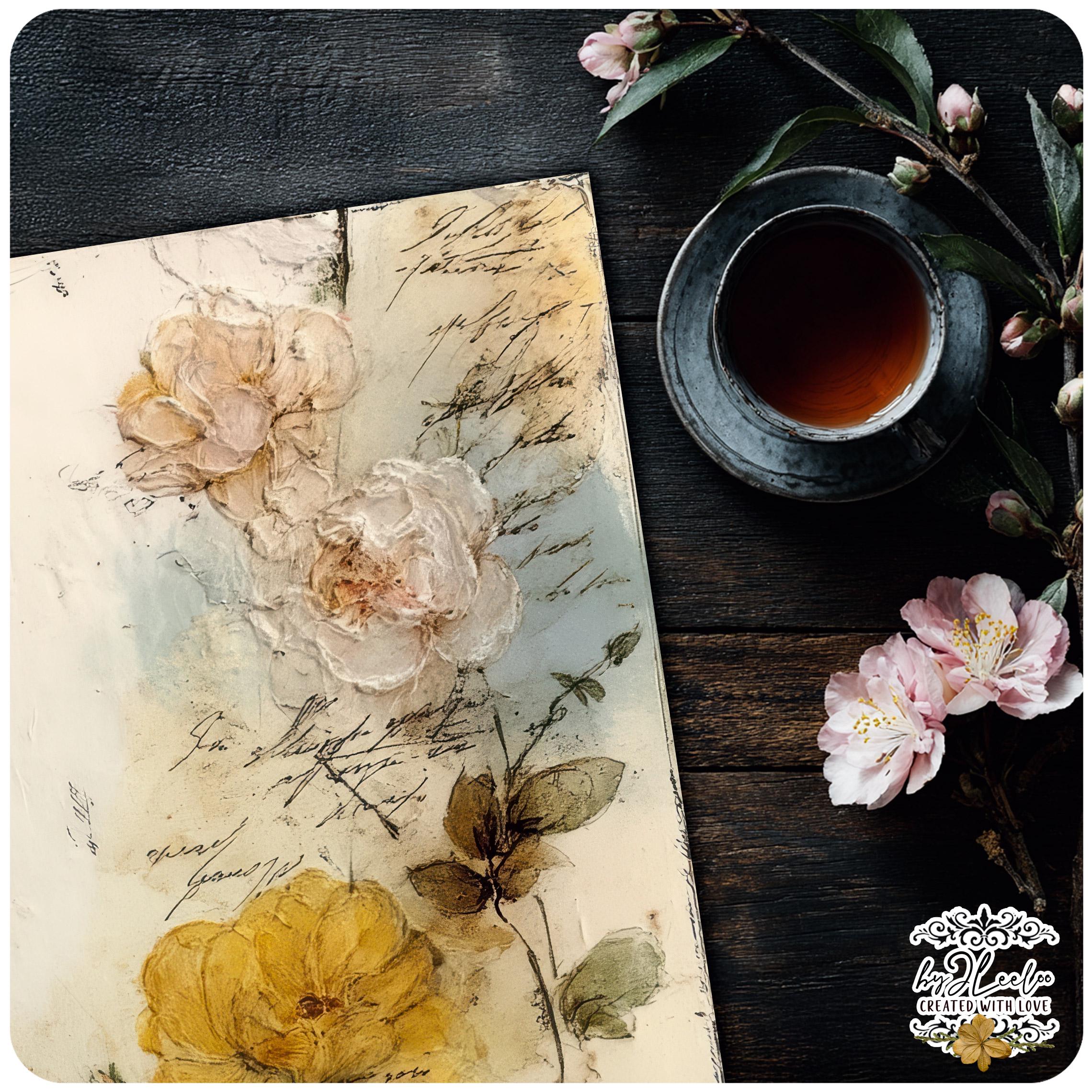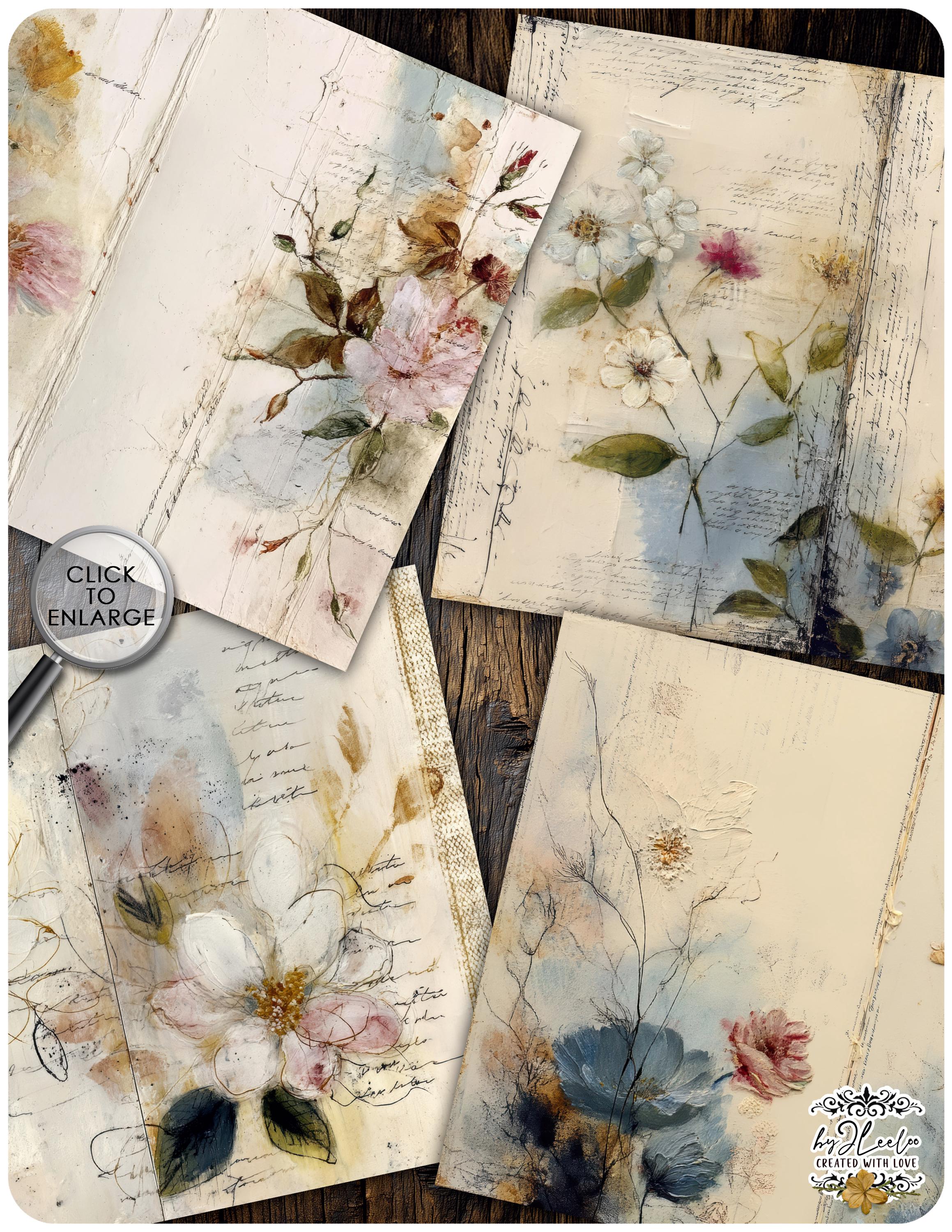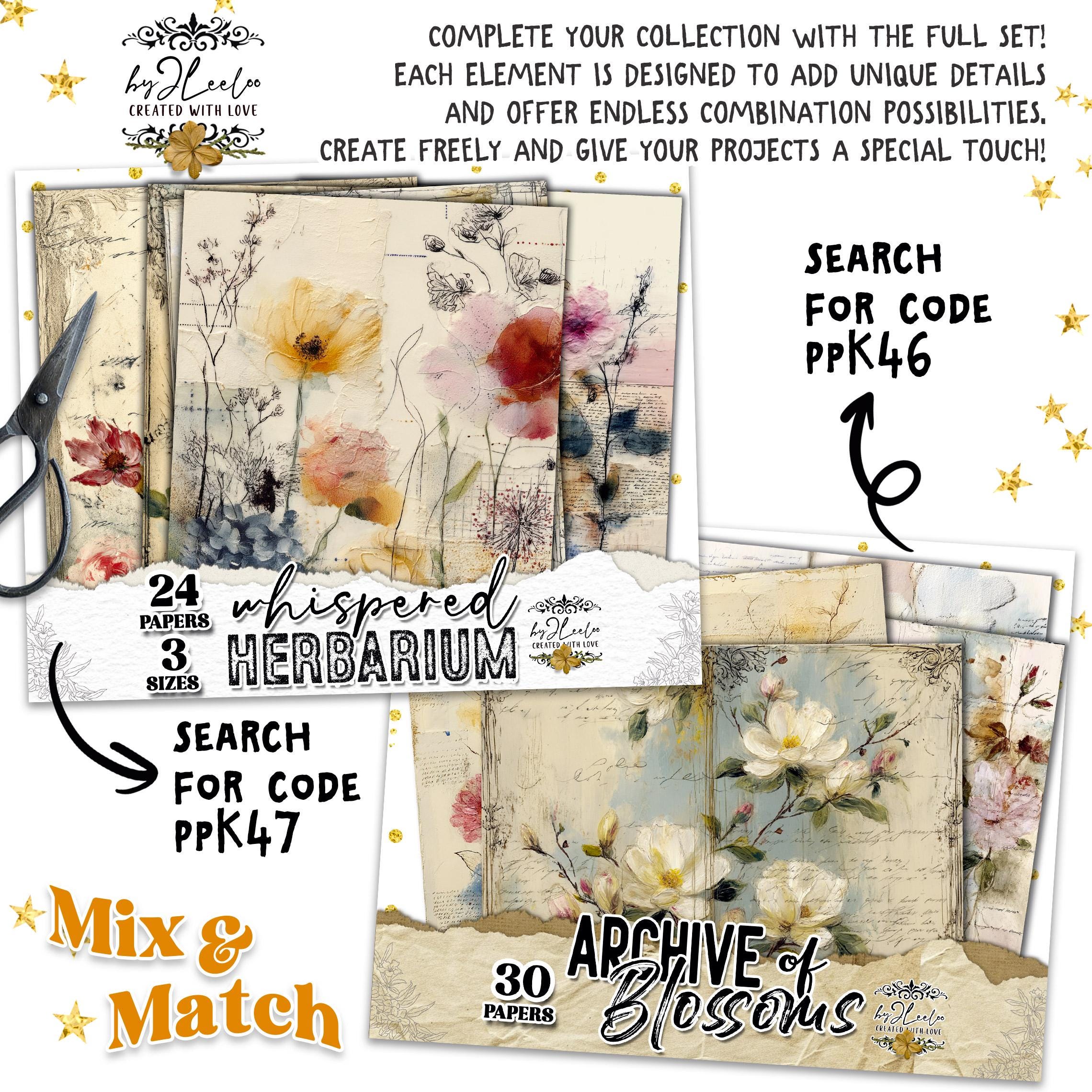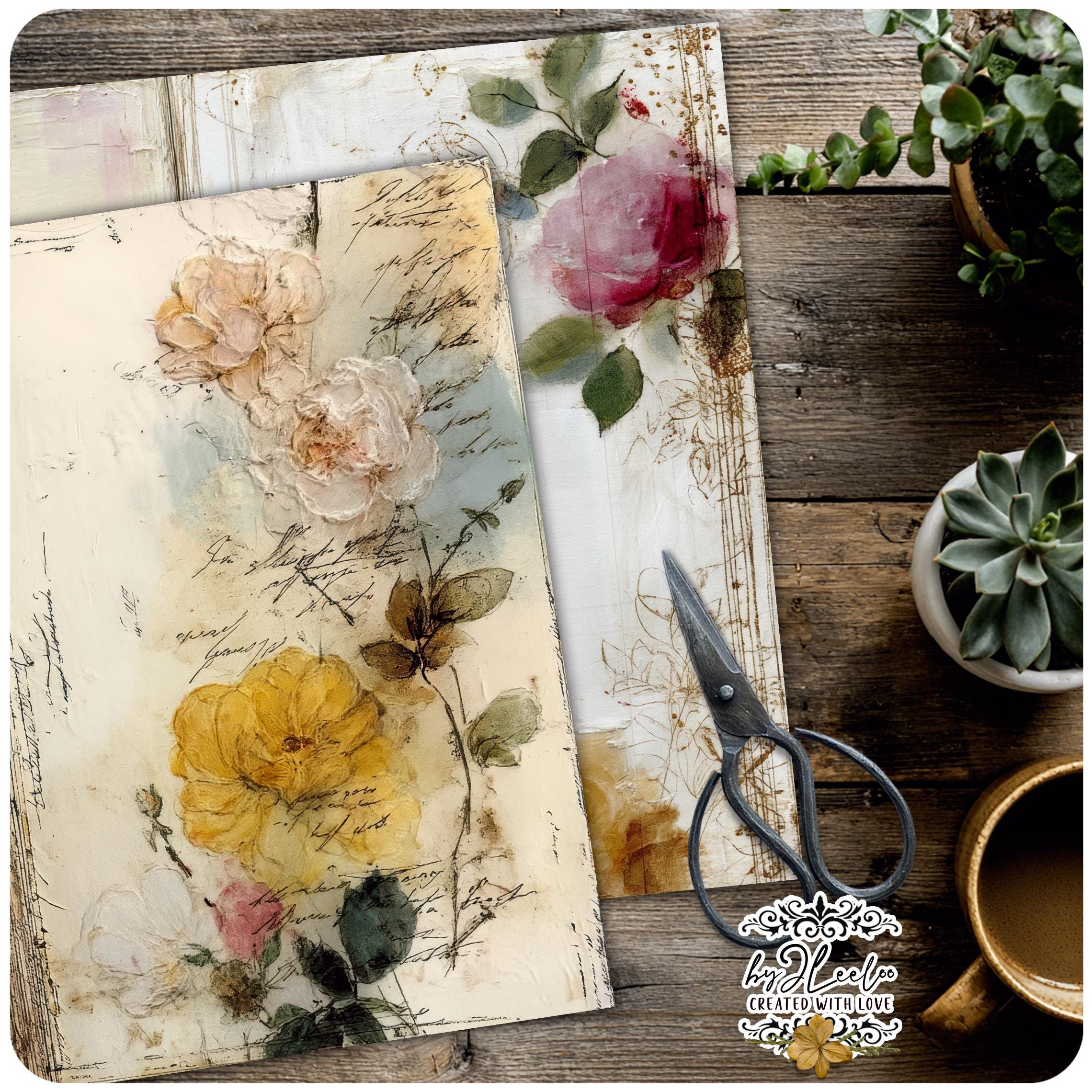 Rose leggere, fiori selvatici, inchiostri delicati e texture vissute creano un equilibrio tra romantic junk journal e vintage botanical archive. Perfette per layering, collage, inserti, pagine narrative e composizioni floreali dal carattere dolce ma non fragile.