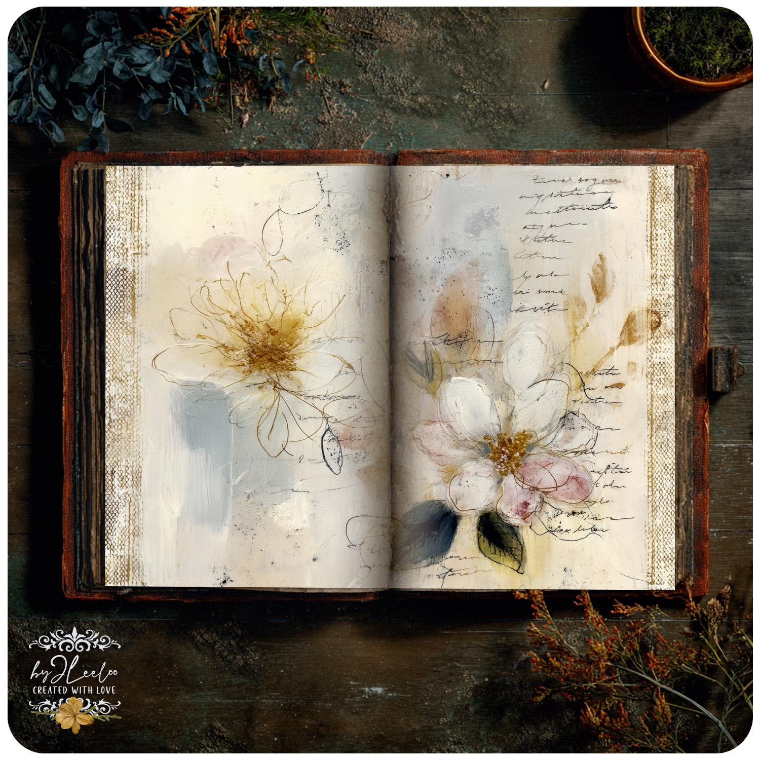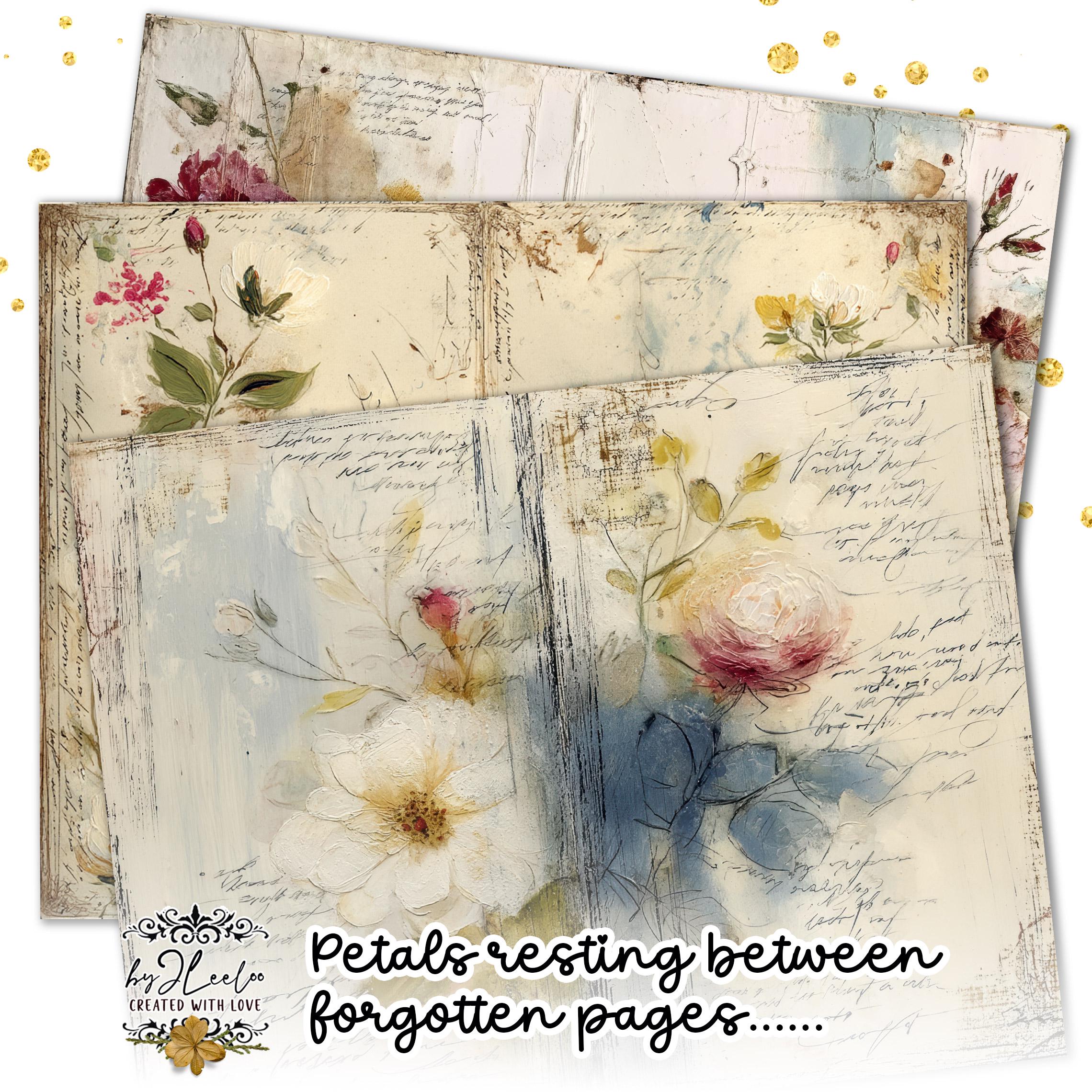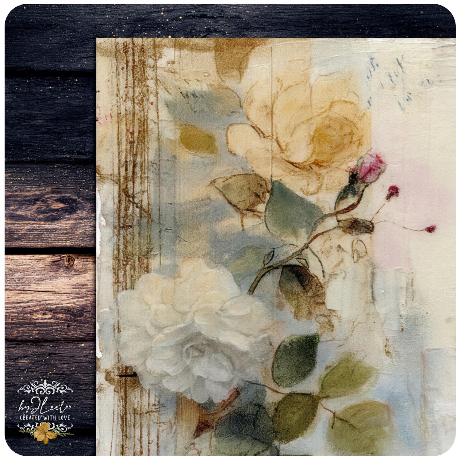 Rose leggere, fiori selvatici, inchiostri delicati e texture vissute creano un equilibrio tra romantic junk journal e vintage botanical archive. Perfette per layering, collage, inserti, pagine narrative e composizioni floreali dal carattere dolce ma non fragile.
