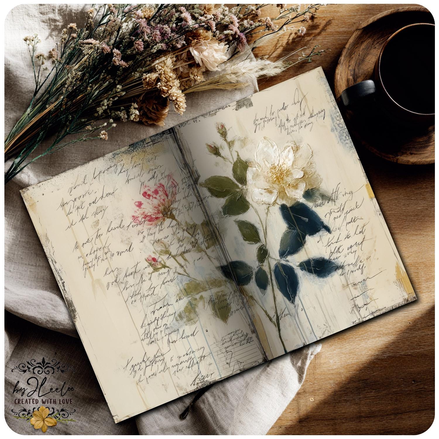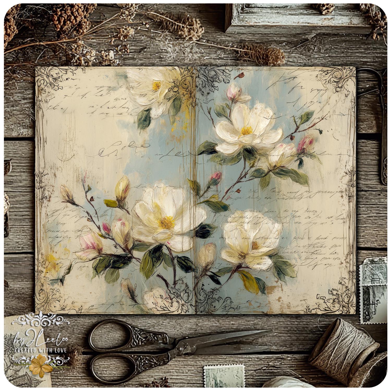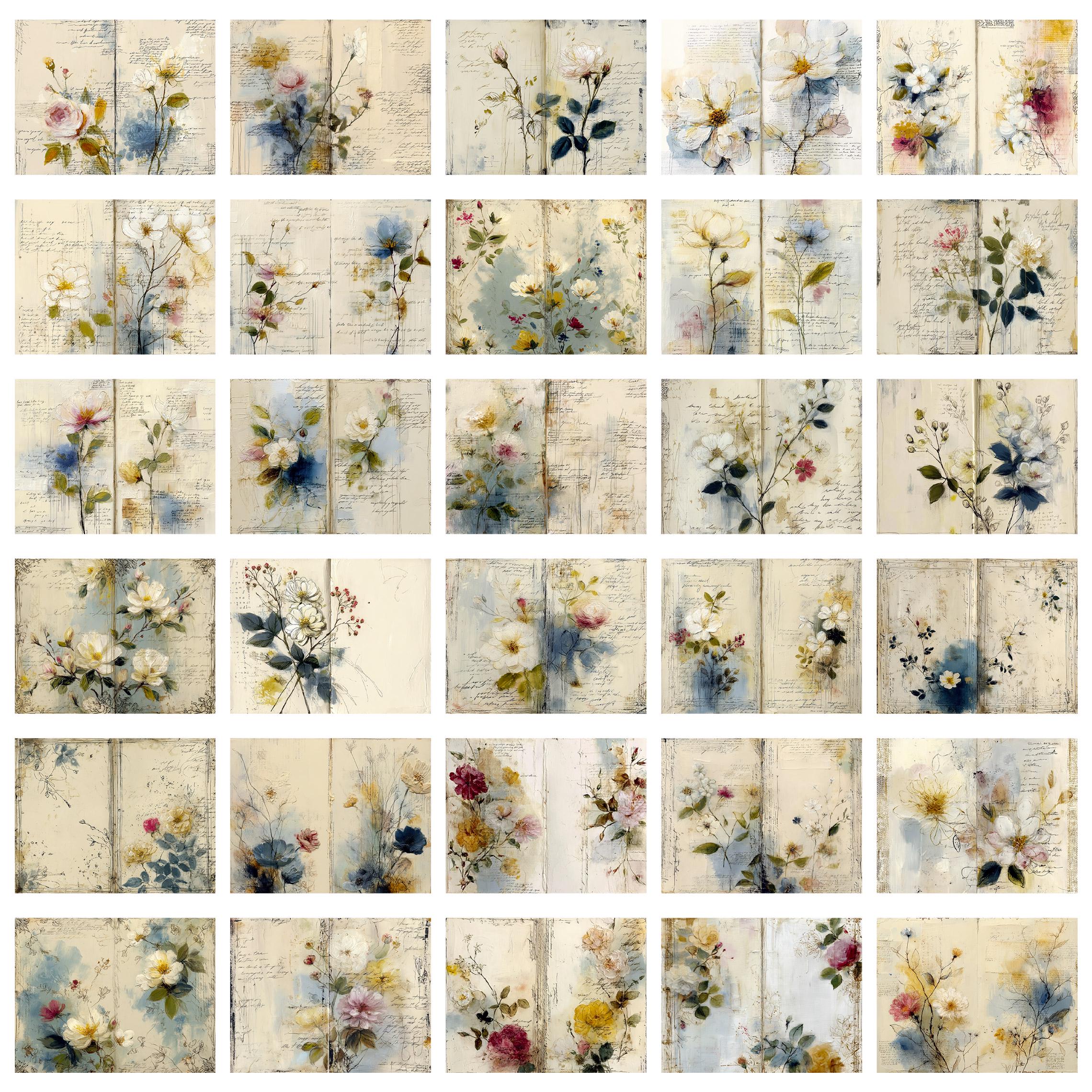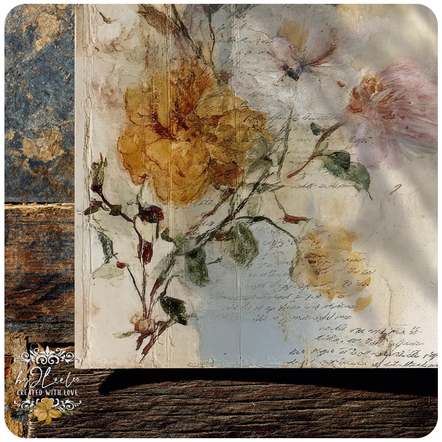 Rose leggere, fiori selvatici, inchiostri delicati e texture vissute creano un equilibrio tra romantic junk journal e vintage botanical archive. Perfette per layering, collage, inserti, pagine narrative e composizioni floreali dal carattere dolce ma non fragile.