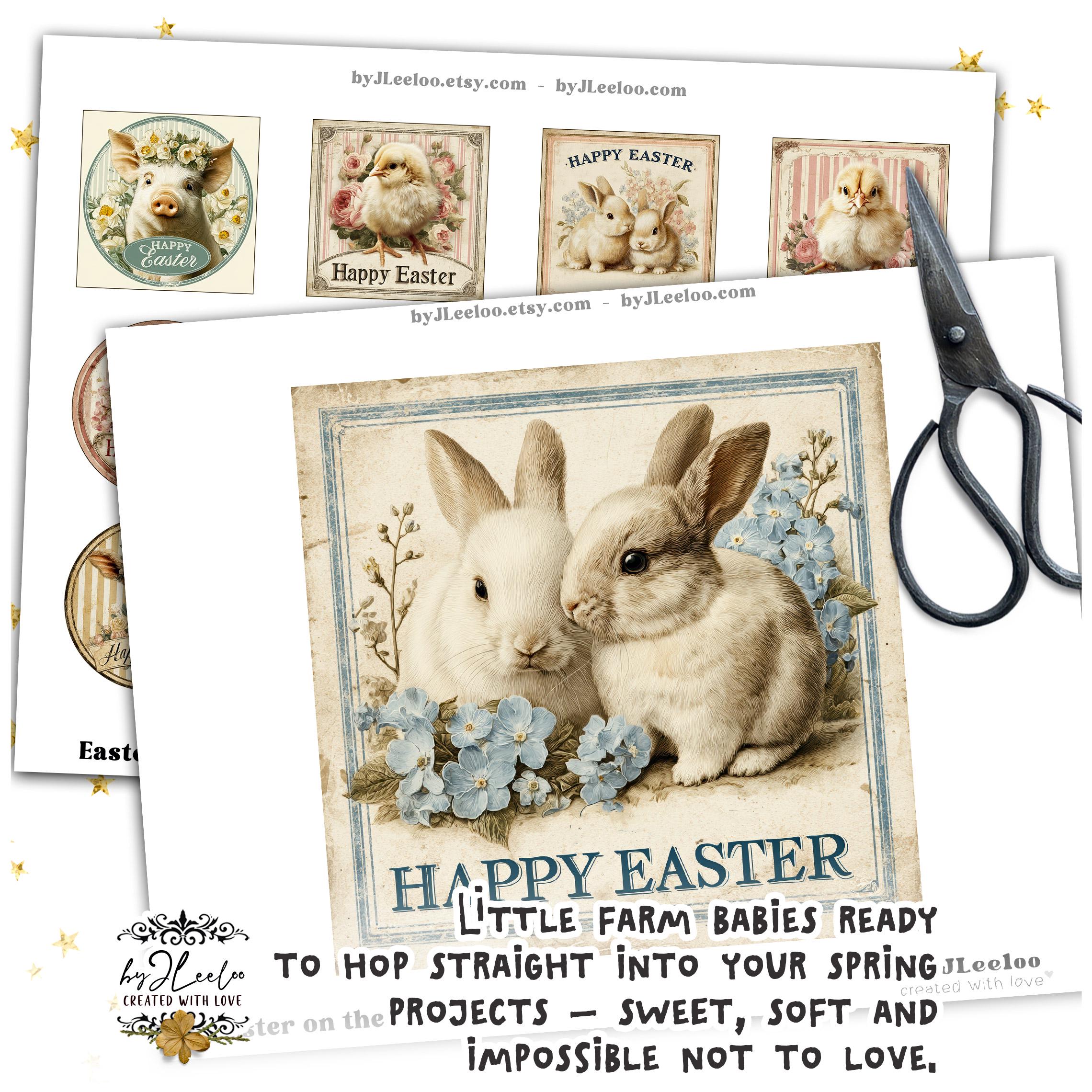 From fluffy chicks to gentle lambs and the cutest piglets, this collection brings soft farmhouse charm to your Easter crafts, journals, tags and handmade creations.
