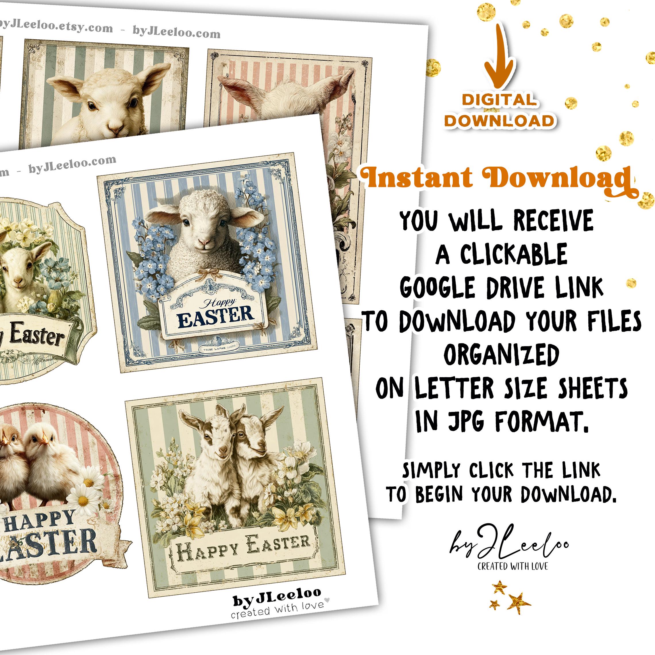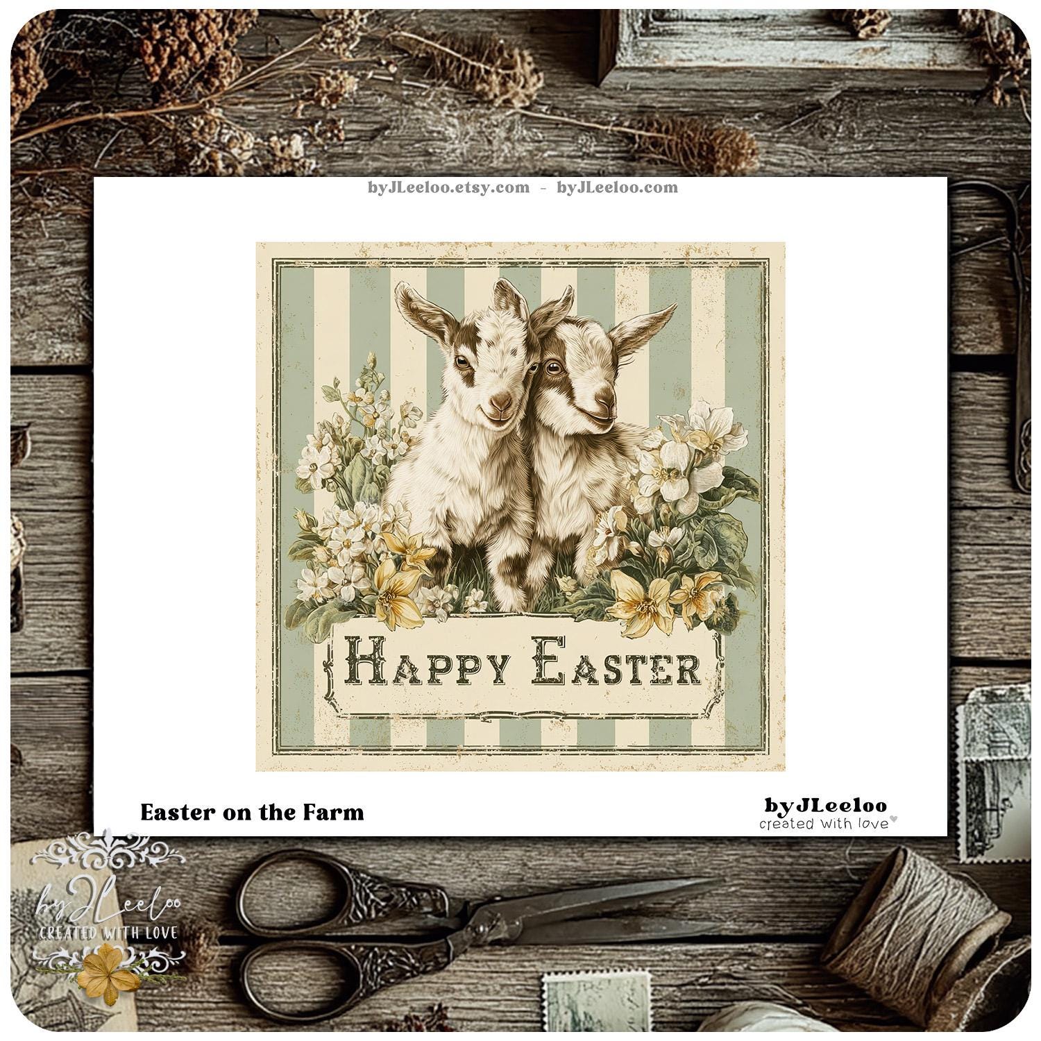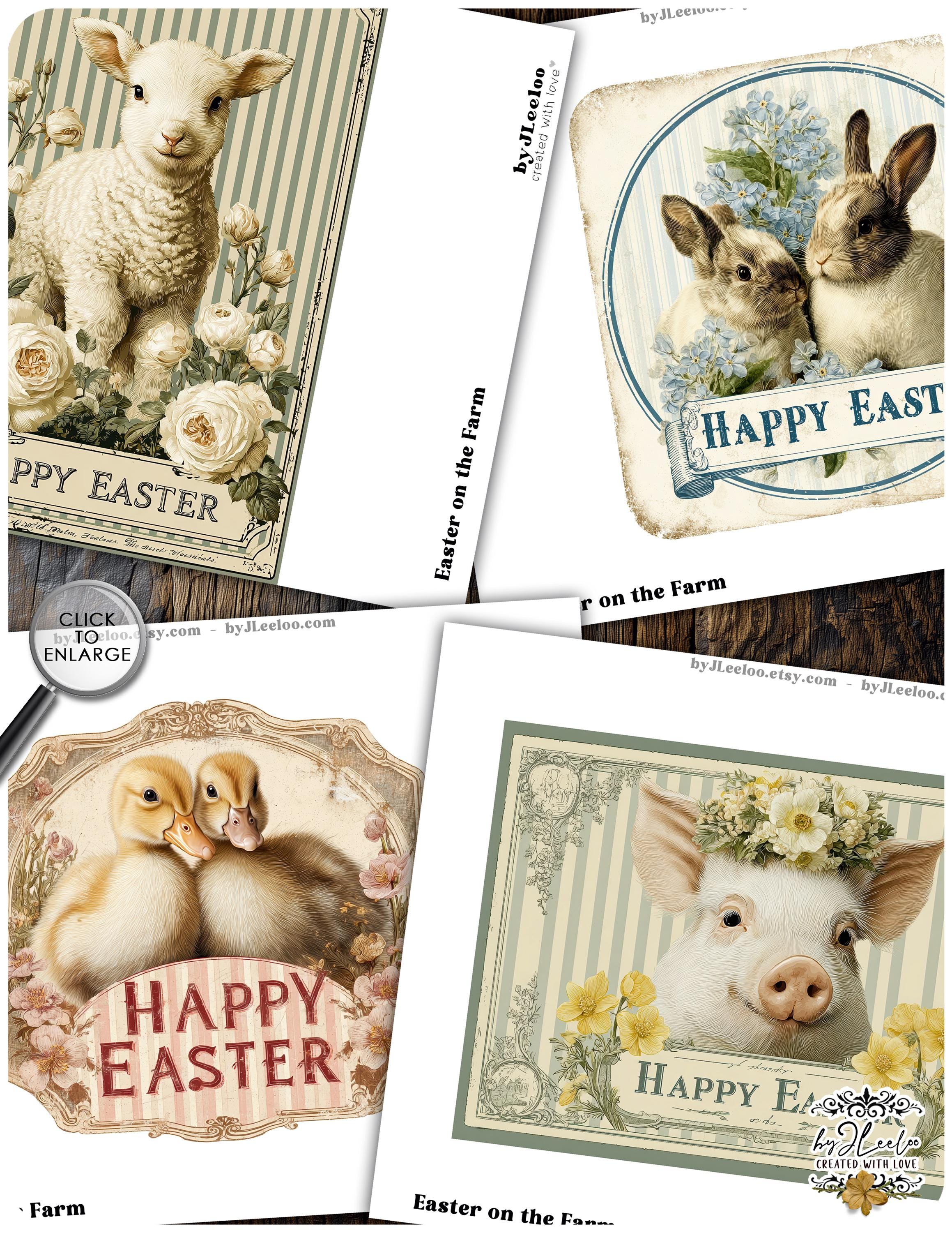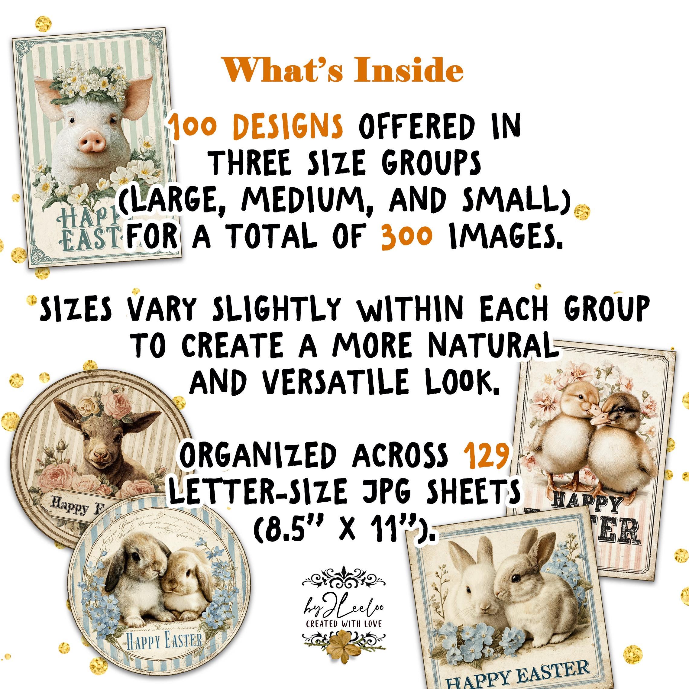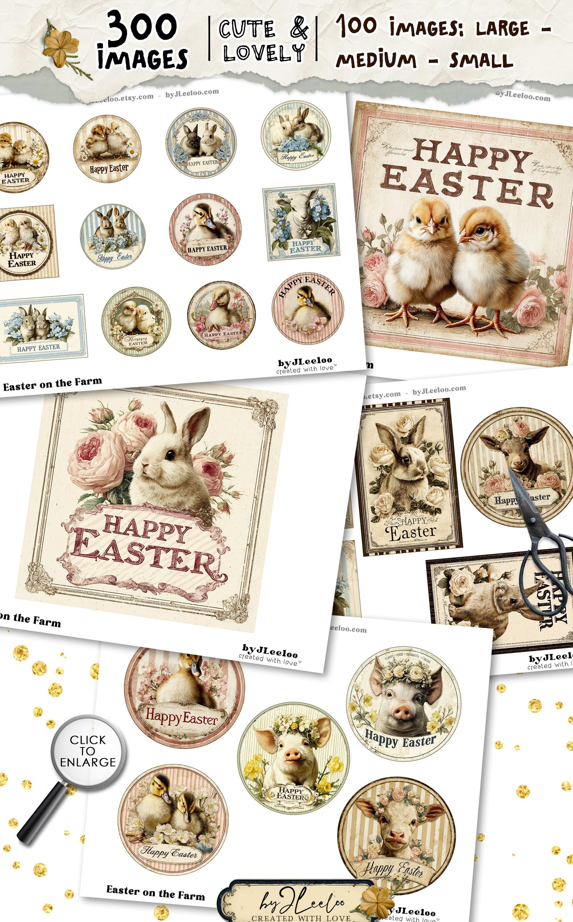โ 100 unique designs featuring sweet farm animals with โHappy Easterโ lettering