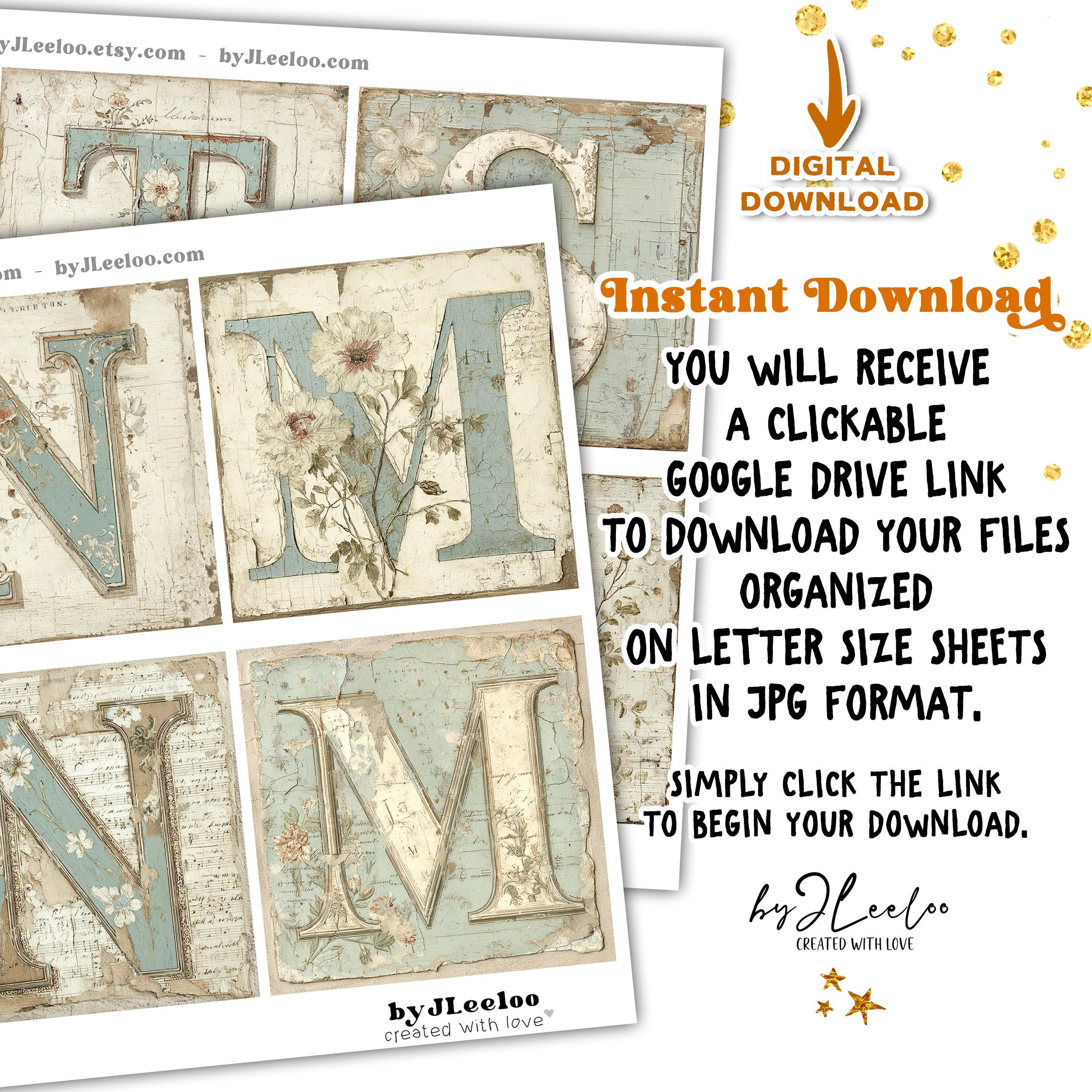 Each initial carries that quiet heirloom feel perfect for junk journals, scrapbook layouts, personalized covers, monogram gifts, and romantic collage work. They’re subtle, textured, and beautifully imperfect — just the way we love our paper to feel 🤍