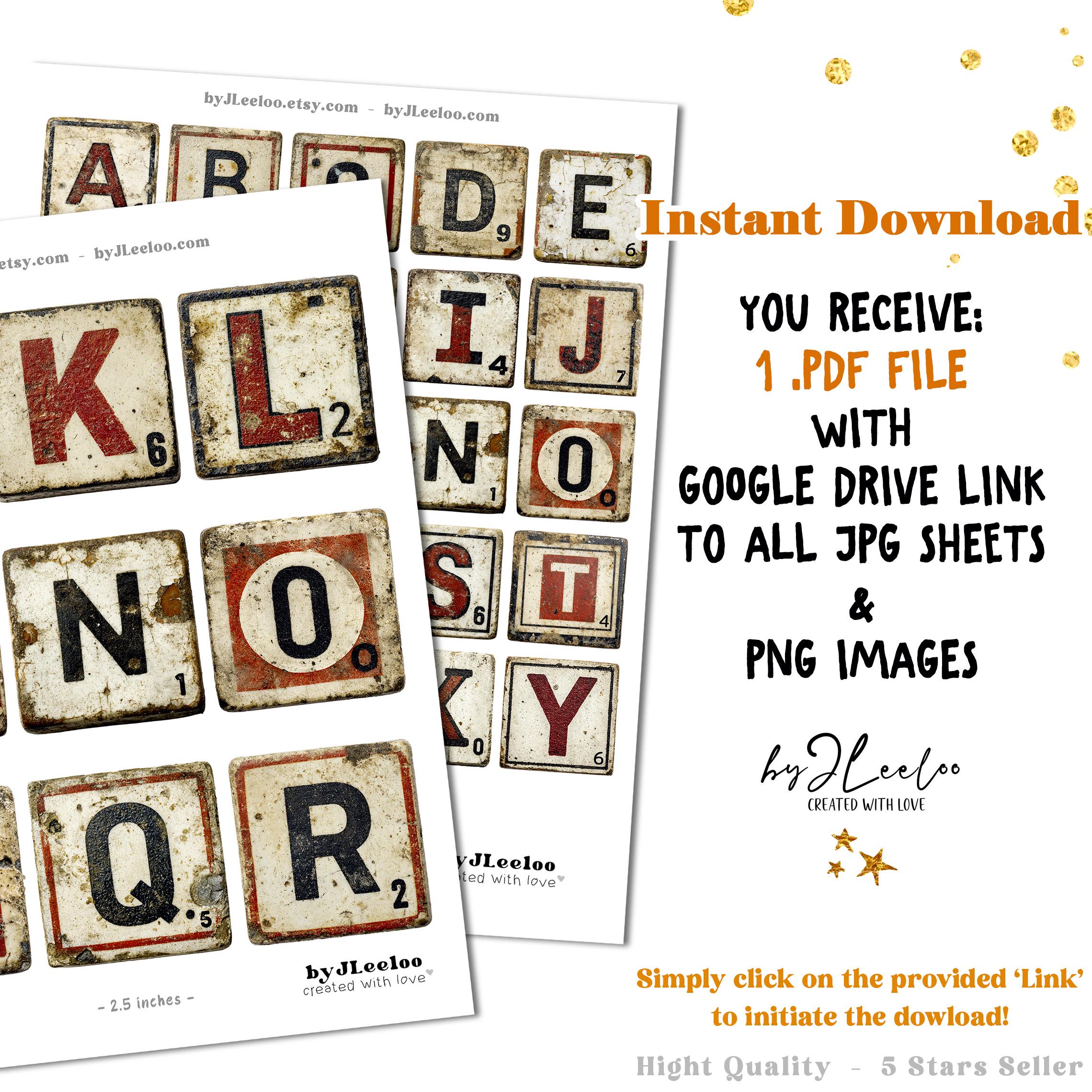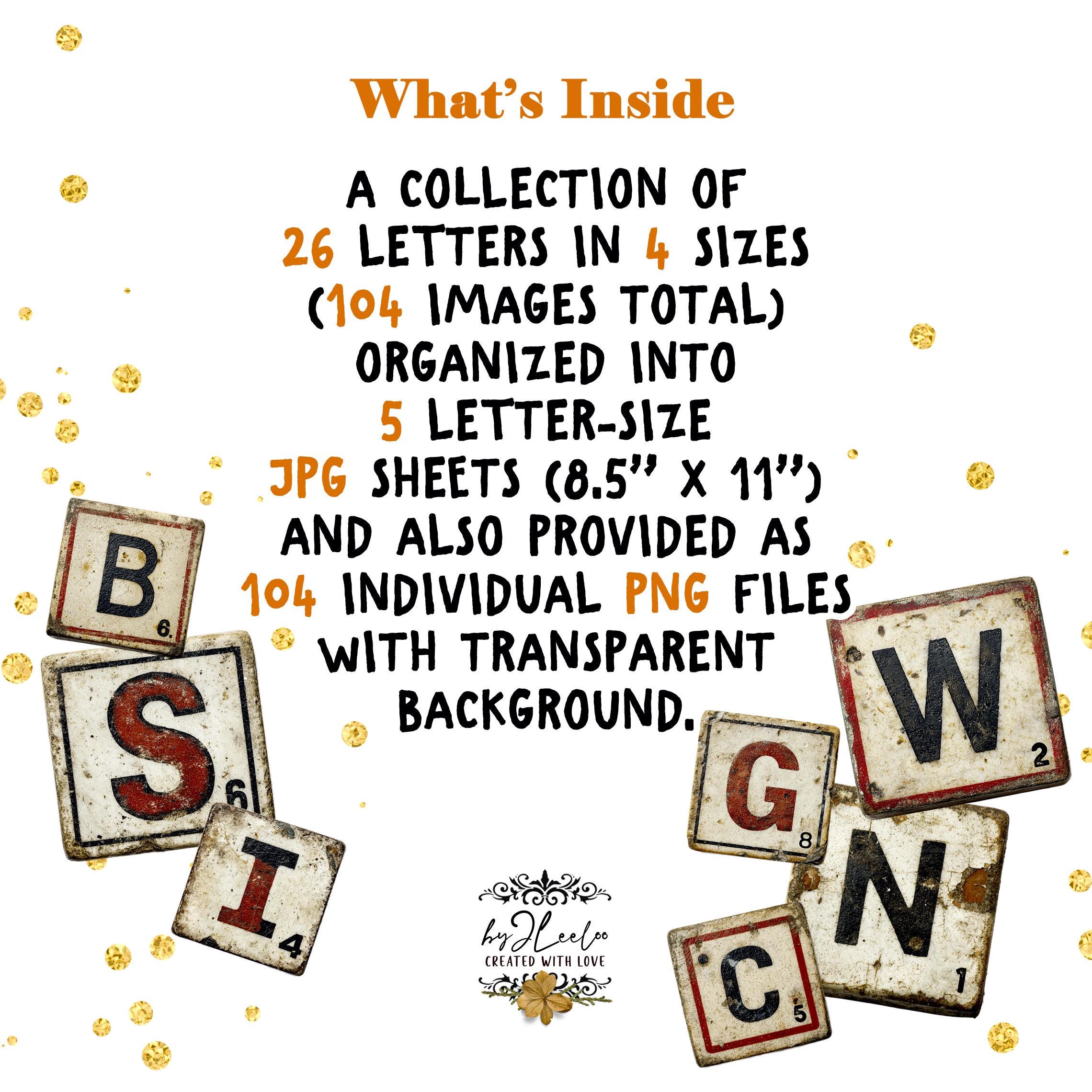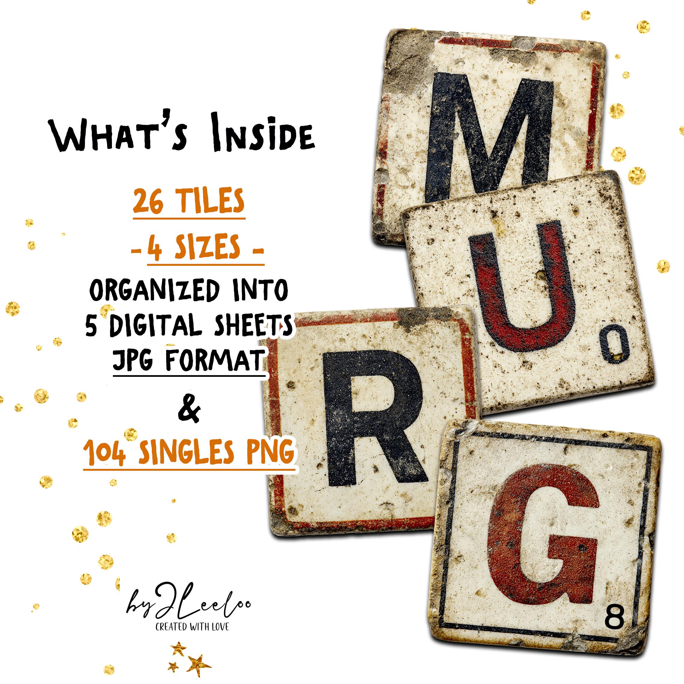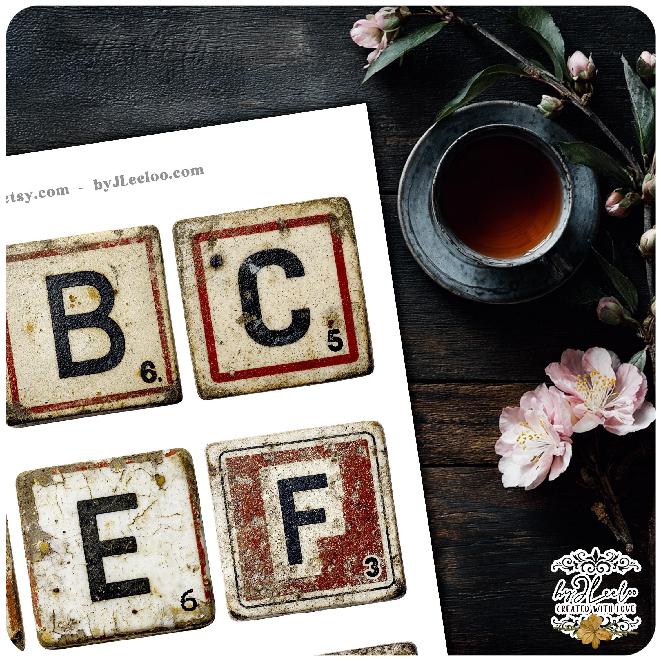 Worn Tiles is a full vintage-inspired letter tile alphabet set designed to look aged, imperfect, and beautifully timeworn.