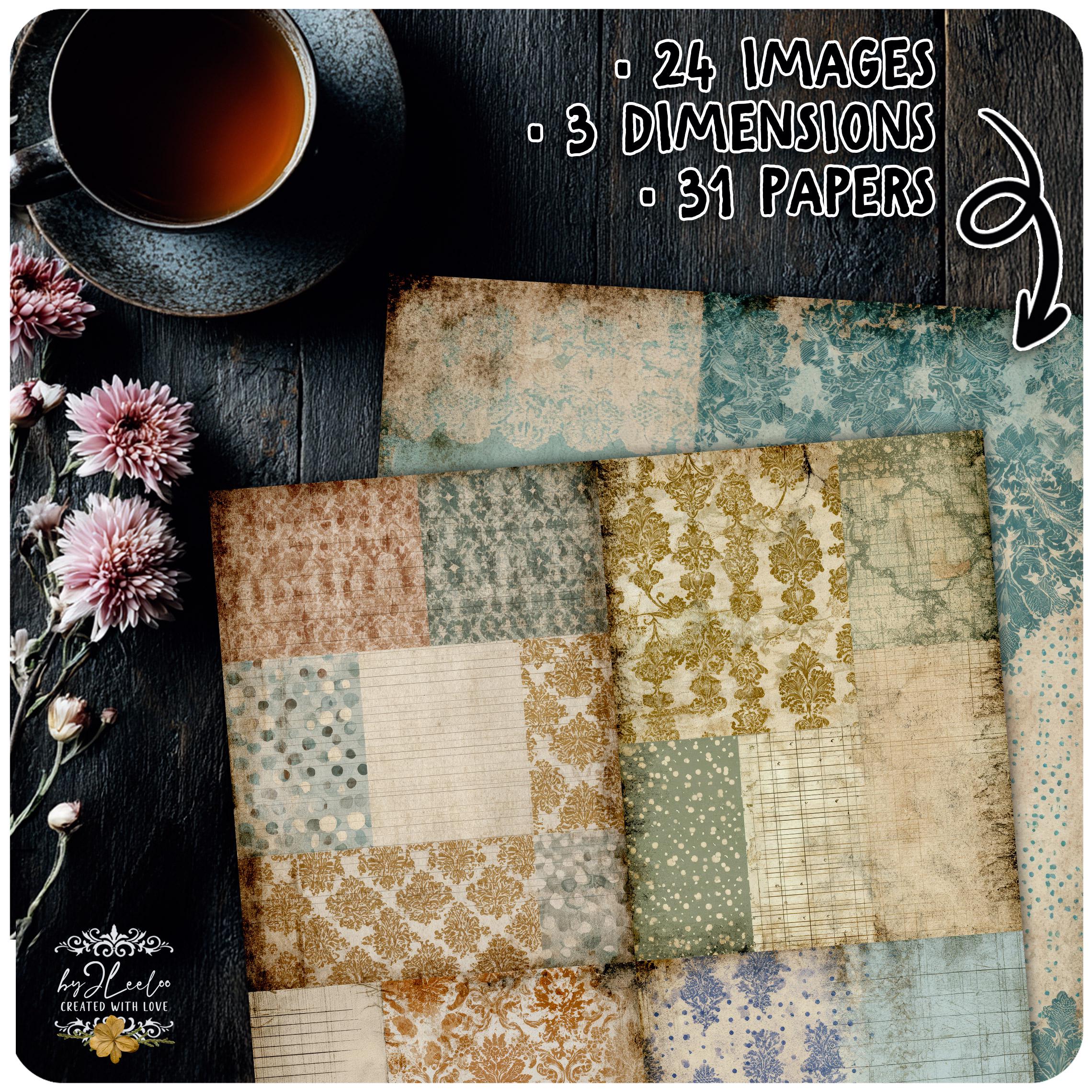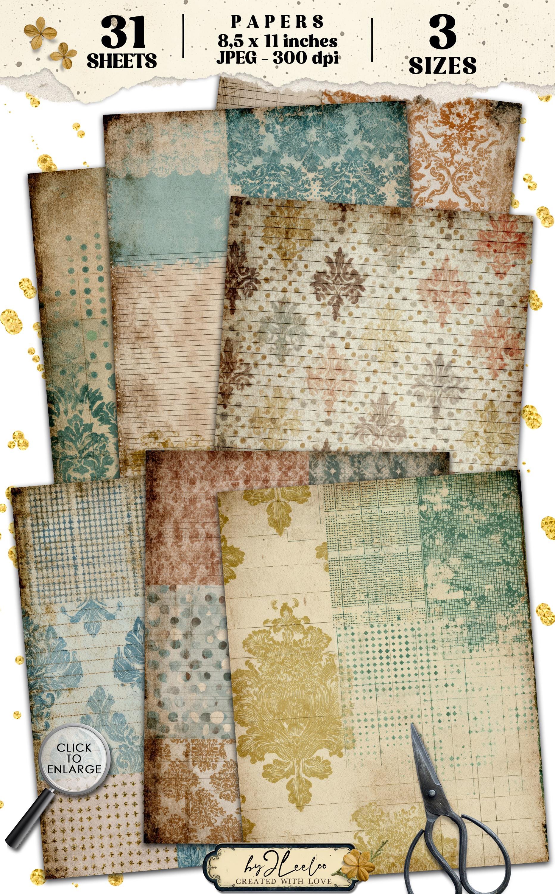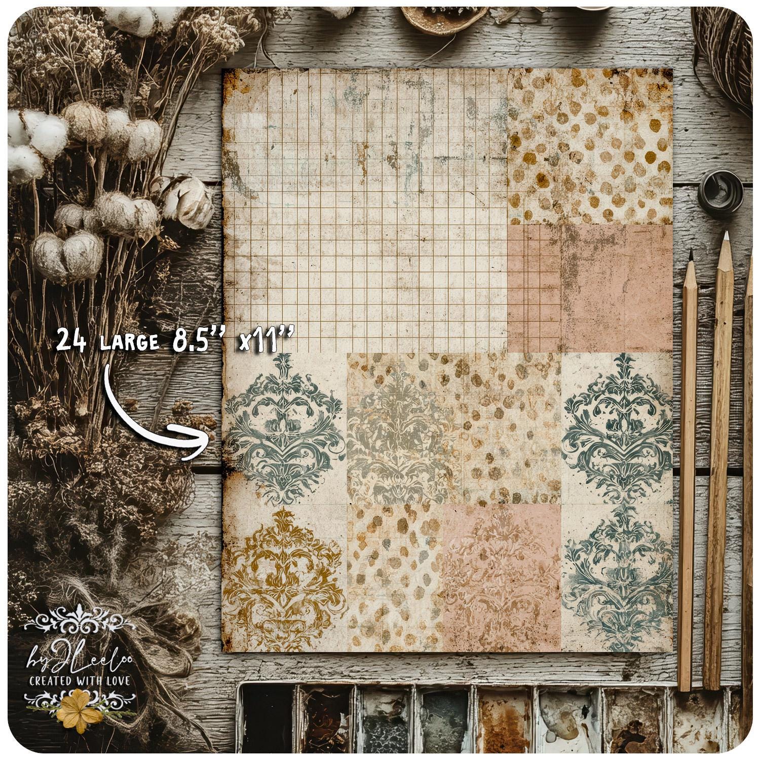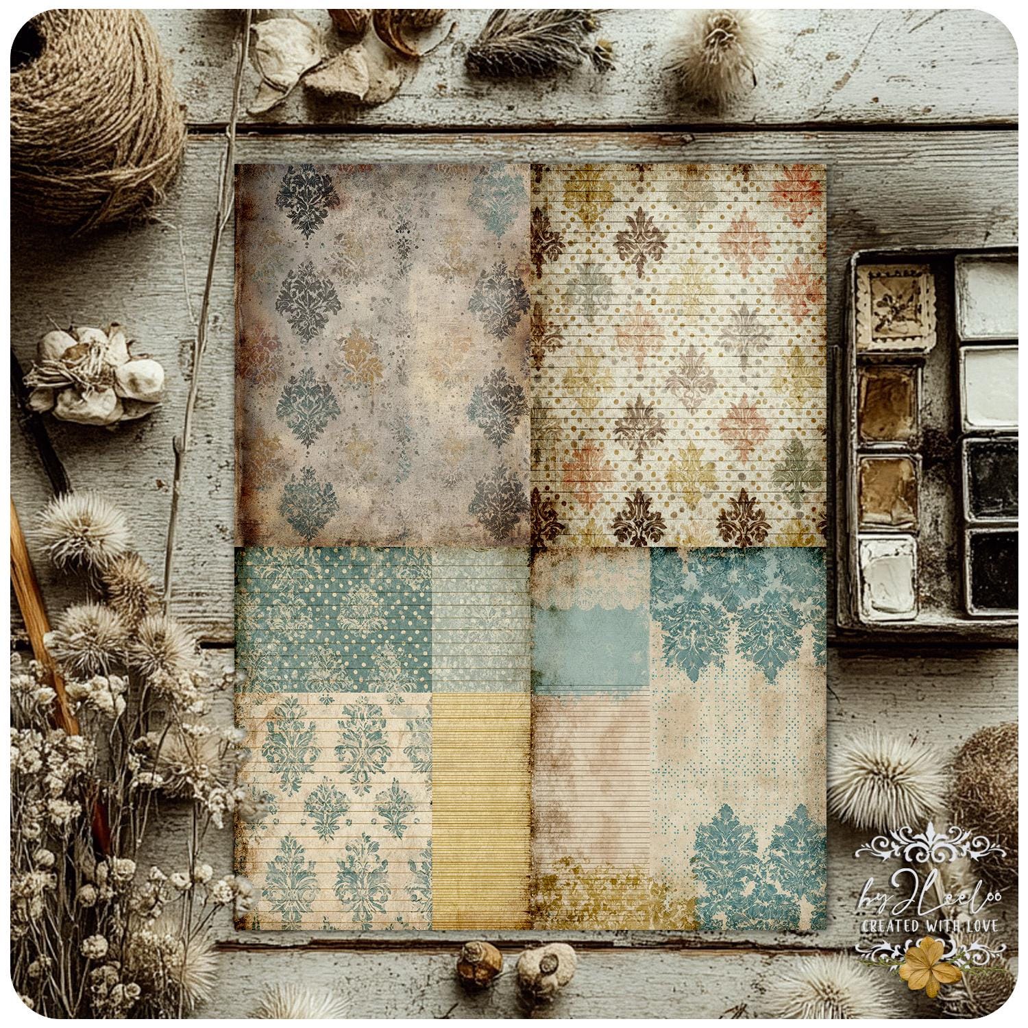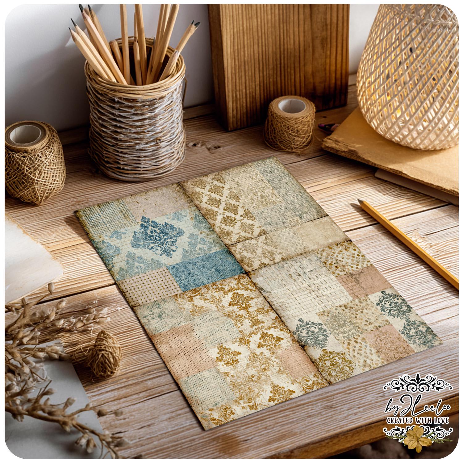 ✨ Patchwork Pages feels like flipping through a stack of well-loved journal sheets — bits of faded damask, soft polka dots, worn ledger lines, and aged textures layered together in gentle vintage tones. Each page has that cozy, timeworn look that makes it perfect for junk journals, scrapbooking, collage, and all those layered paper projects where imperfect beauty makes everything more charming. ✨