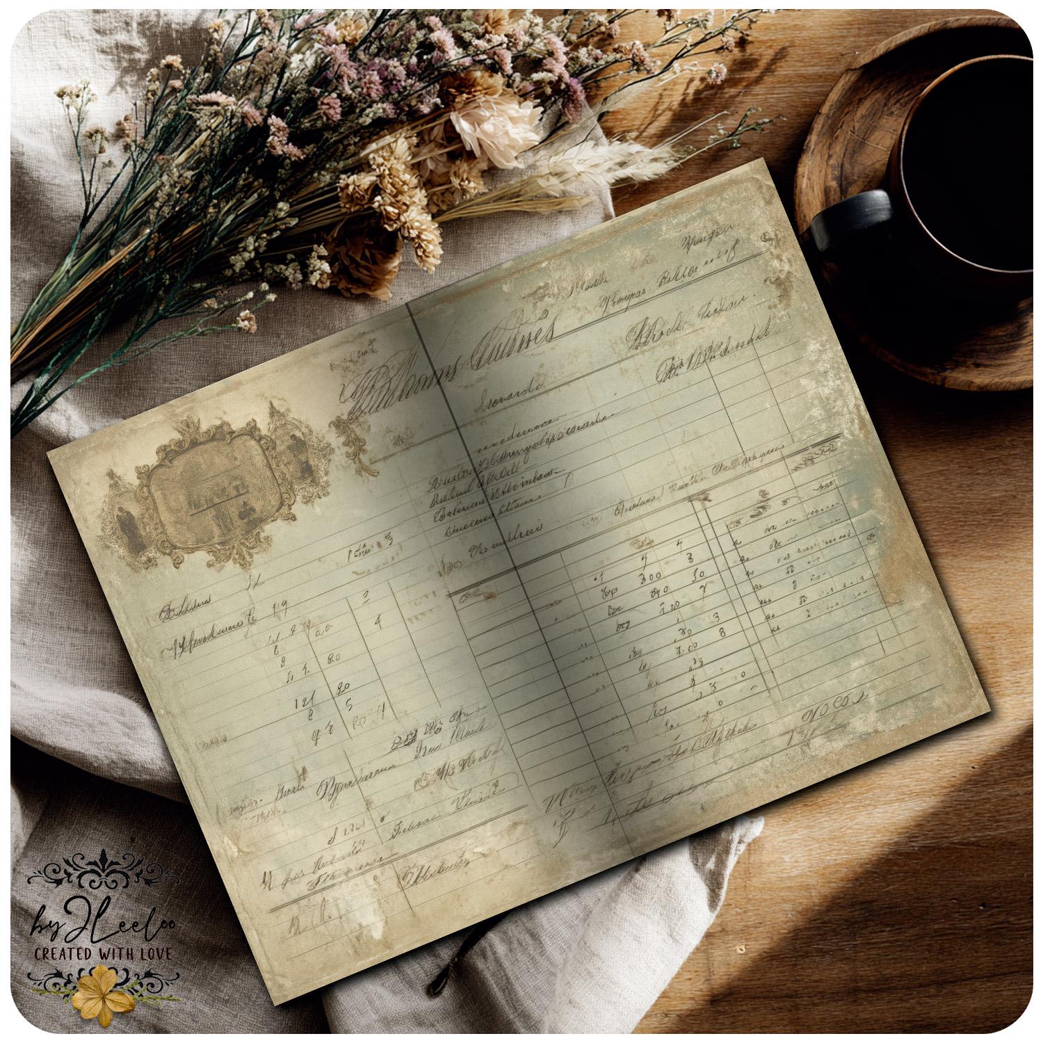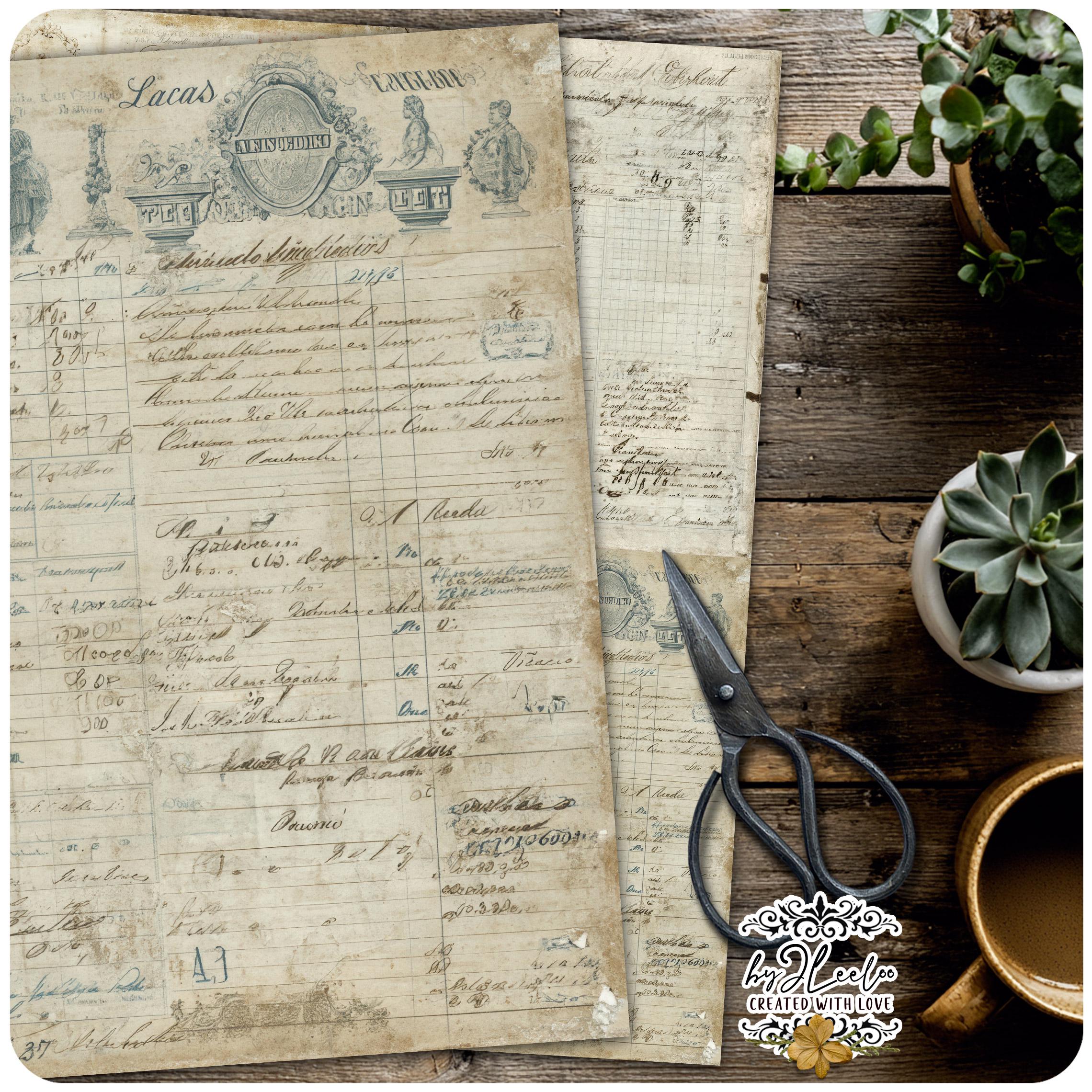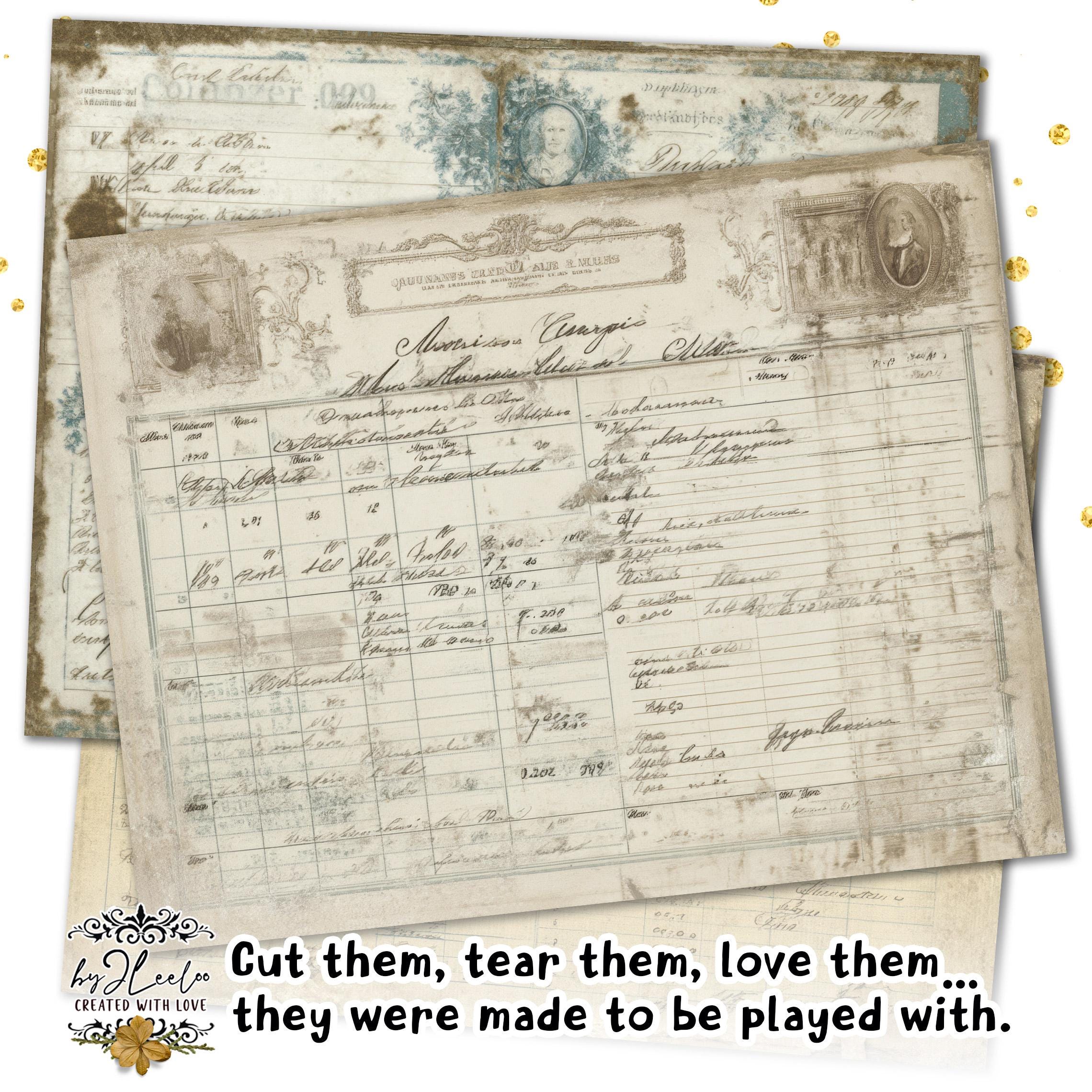Soft traces of faded ink, gentle washes of aged greens, burnt edges and time-worn details — each sheet carries that quiet, imperfect beauty only true vintage can give.
