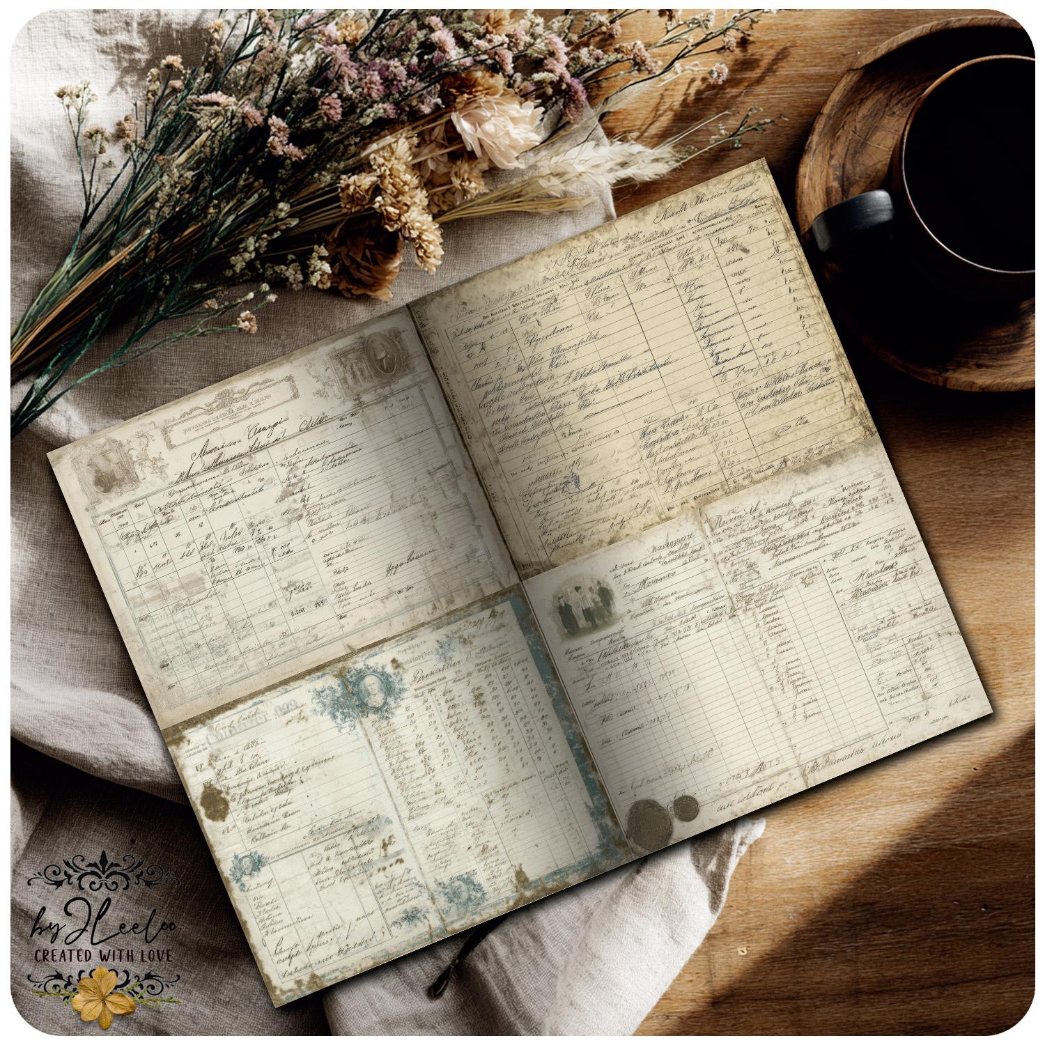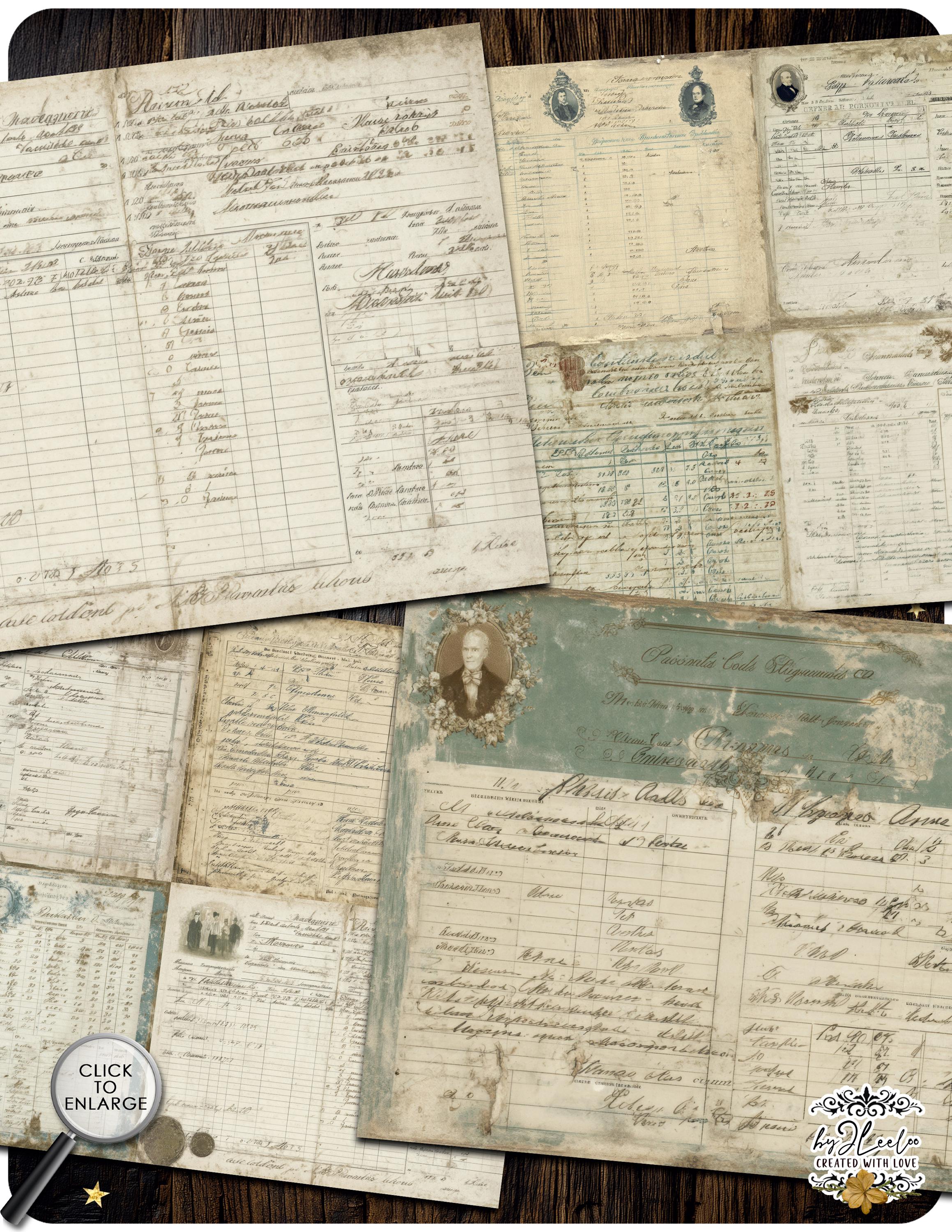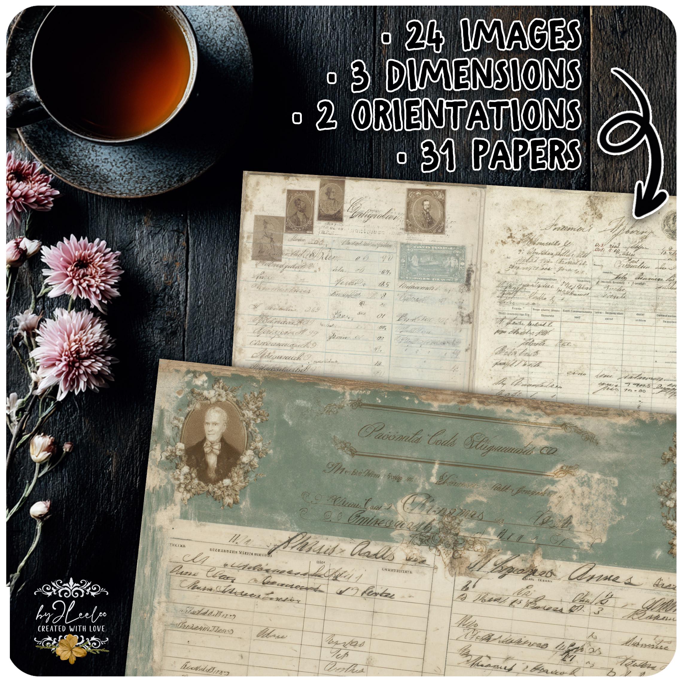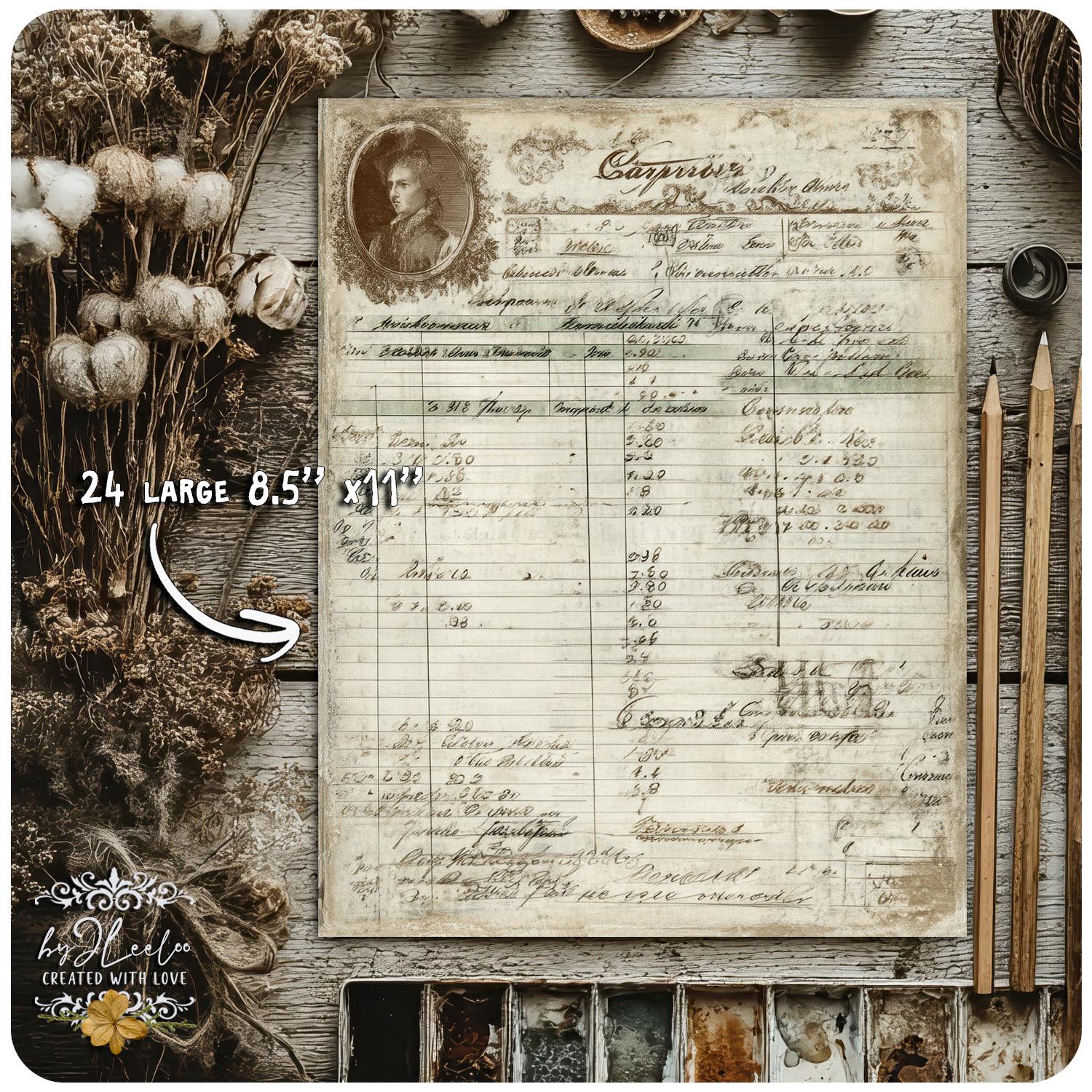 Soft traces of faded ink, gentle washes of aged greens, burnt edges and time-worn details — each sheet carries that quiet, imperfect beauty only true vintage can give.