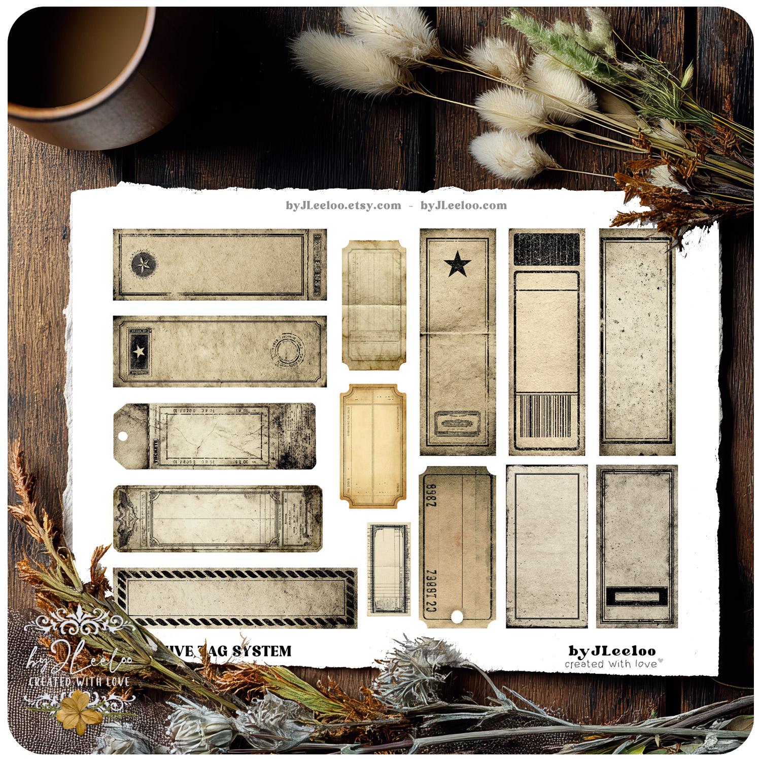 ✦ A versatile collection of vintage-style tags and labels, designed to be used, layered, and transformed in your creative projects.
