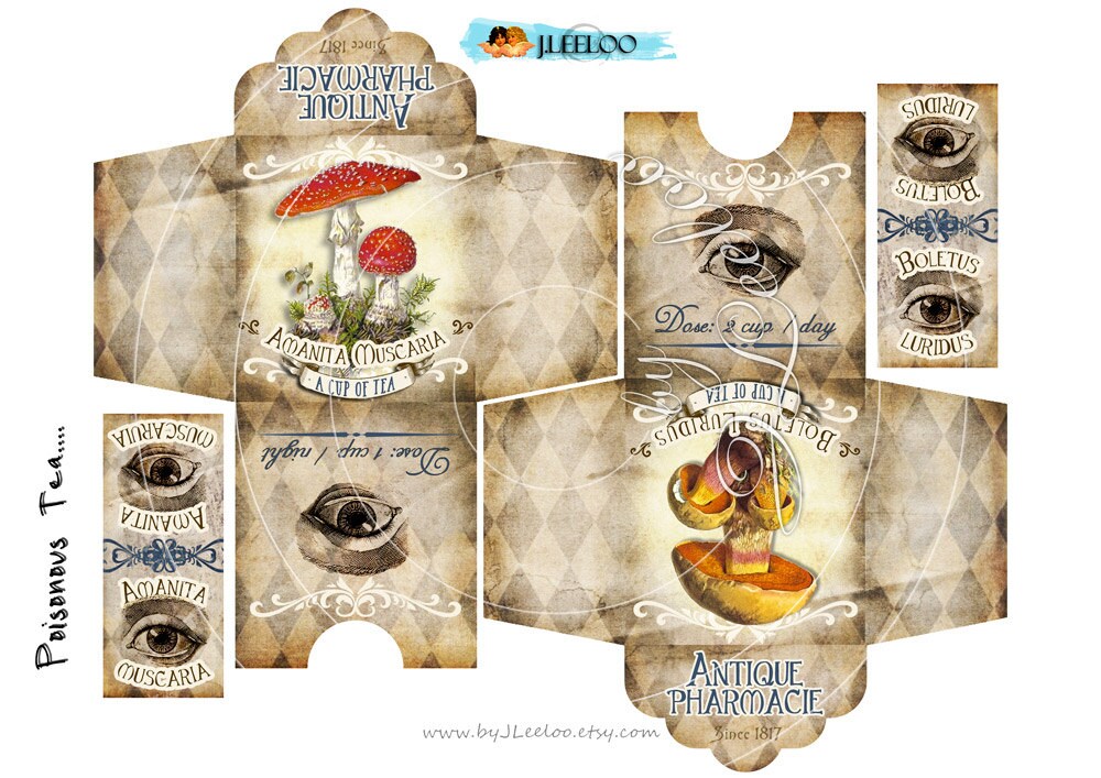 POISONOUS TEA printable tea bag holder envelopes - poison Apothecary fungi Halloween instant download printable images - digital collage sheet instant download ready to print for your invitate, jewelry making, scrapbook and your others craft project.