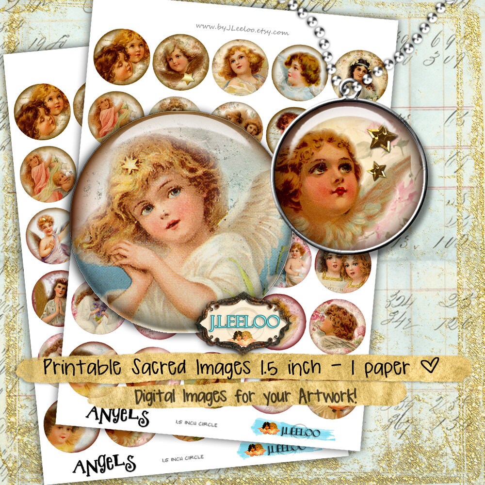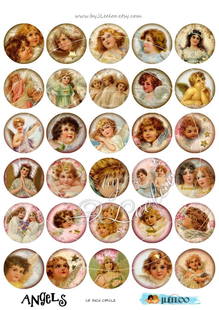 ANGELS - Digital collage sheets - Christmas round images download to print for jewelry, resin pendants, glass cabochon, charms, magnets, stickers, scrap book, hang tags, a great supply for your craft project.