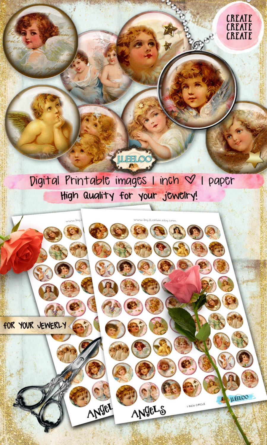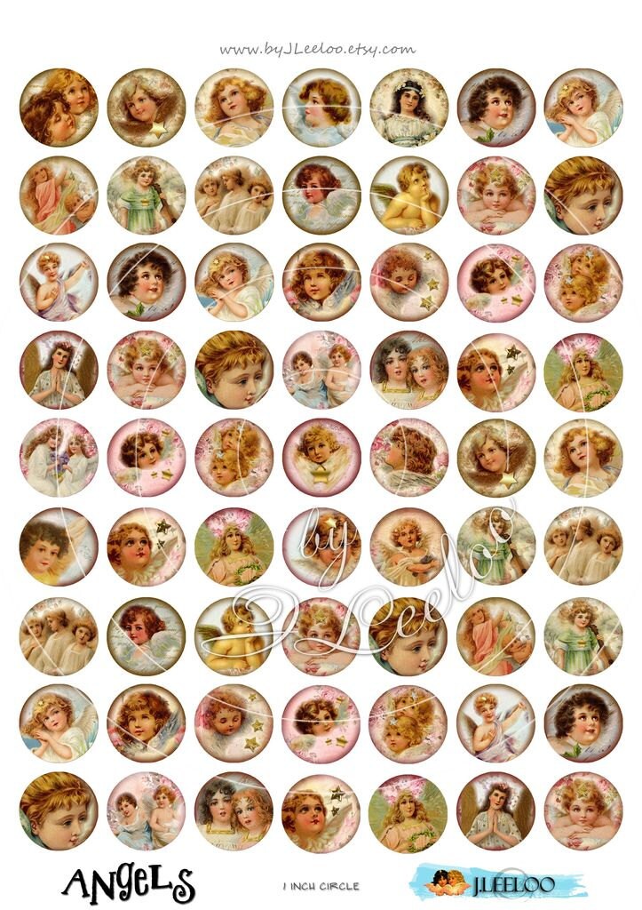 ANGELS - Digital collage sheets - Christmas round images download to print for jewelry, resin pendants, glass cabochon, charms, magnets, stickers, scrap book, hang tags, a great supply for your craft project.