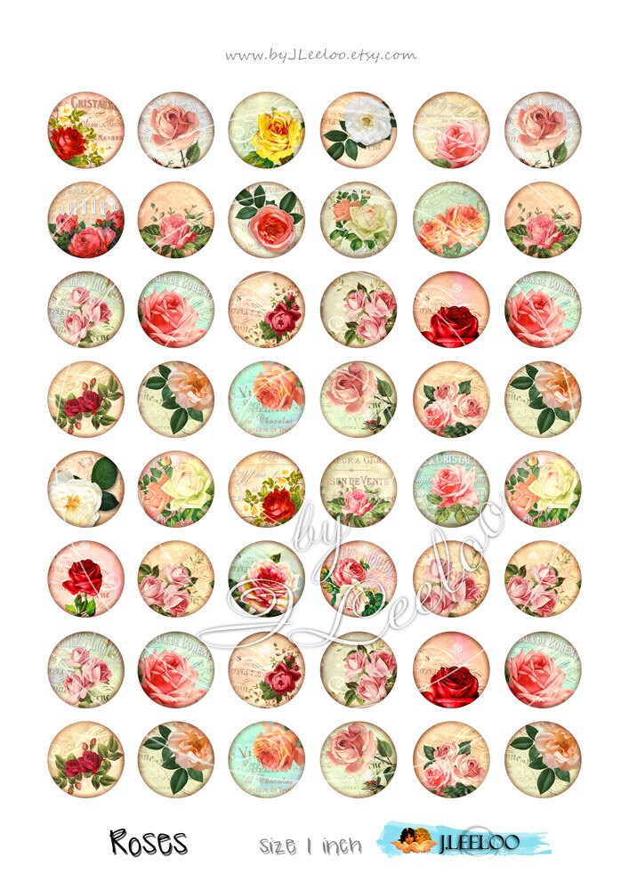 ROSES IN BLACK - Instant Download - Digital collage sheets - Round printable images for bezel trays, glass cabochon, resin pendants, charms, card making, button, magnets, stickers and all your craft project.