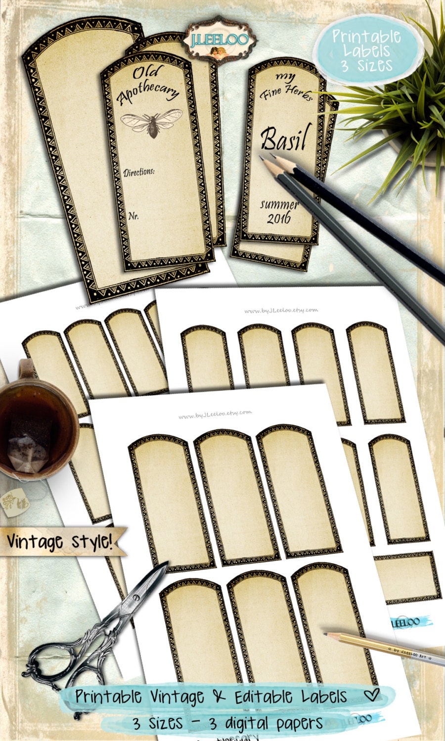 BLANK APOTHECARY - Digital collage sheets - Editable label tag apothecary images instant download ready to print for your bottle jar, invitation, jewelry making, stickers, scrapbook and your others craft project.