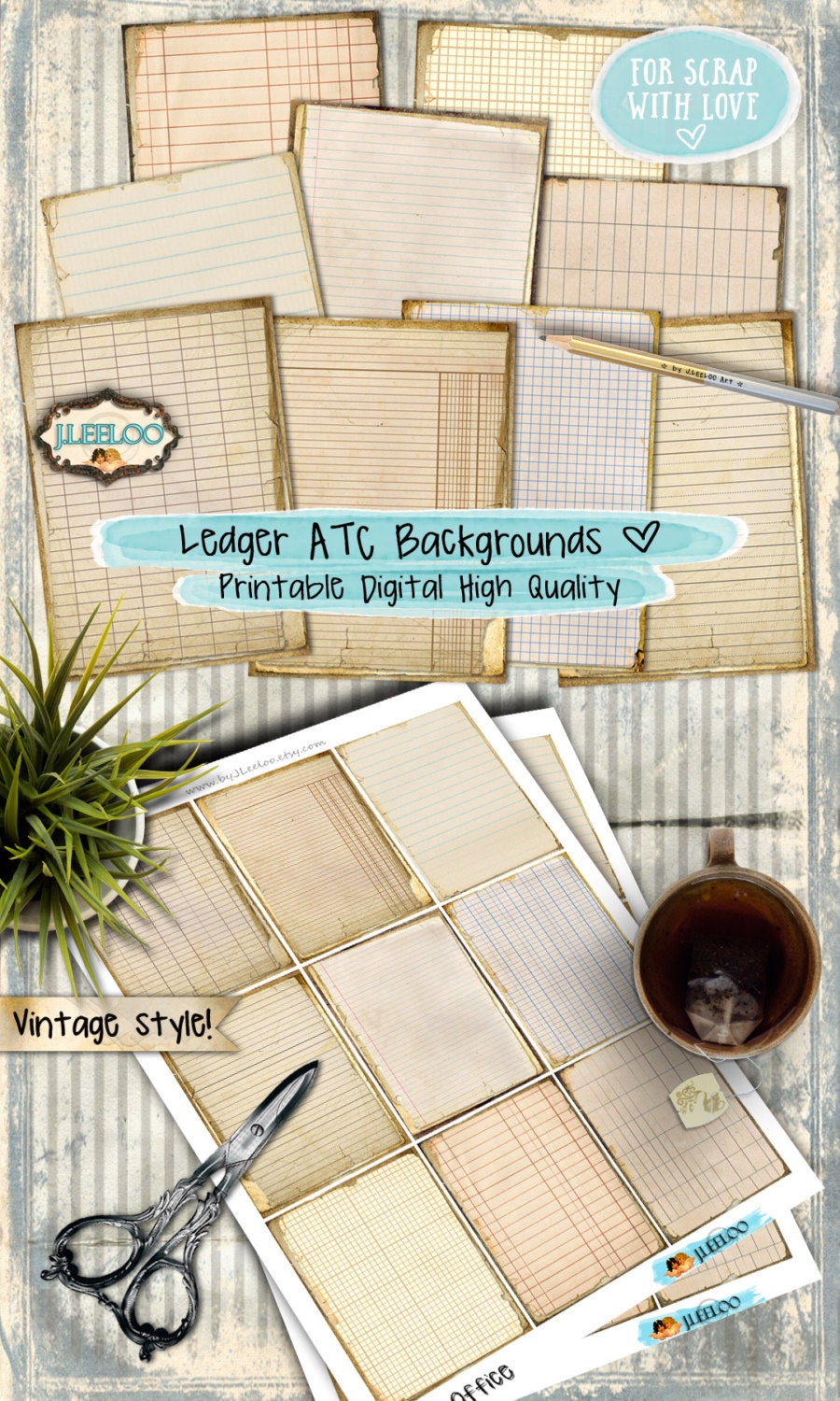 OFFICE LEDGER aceo background digital collage sheet bookmaking pages journal art stationery crafting ephemera - Digital papers: images for your artwork, postcards, hang tags, invitations, greeting cards, announcements, scrapbook, backing cards.... all for your crafting project!