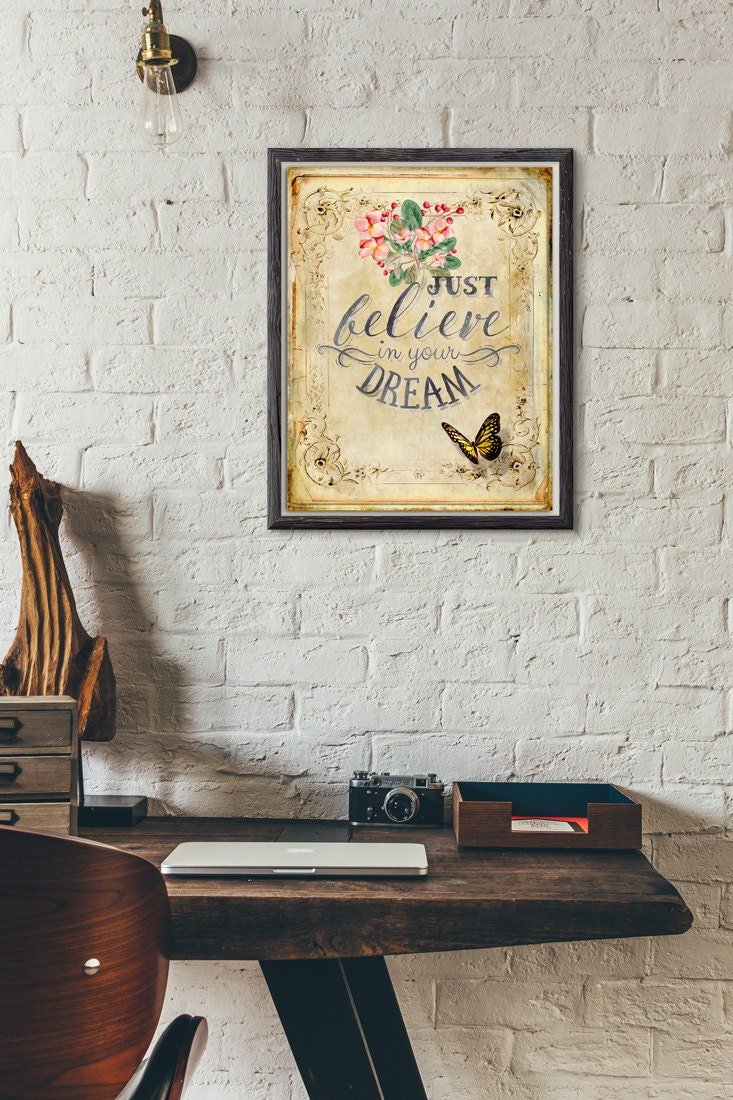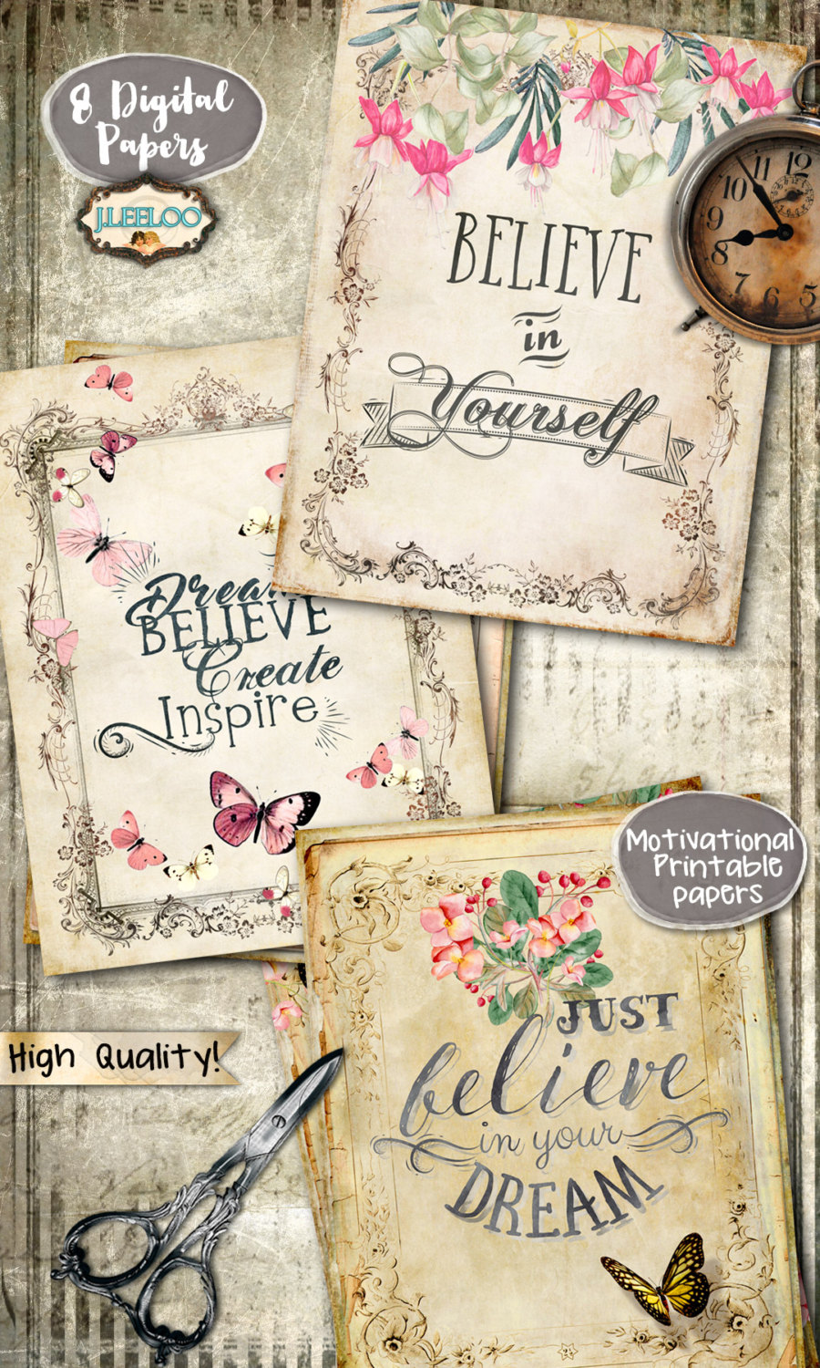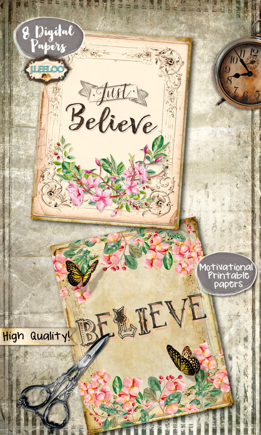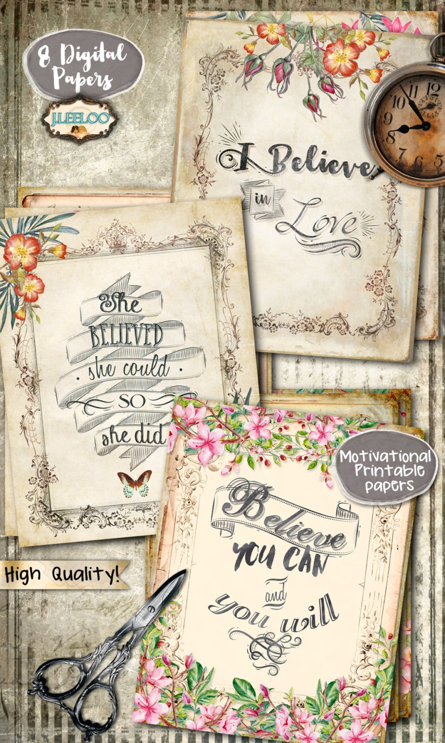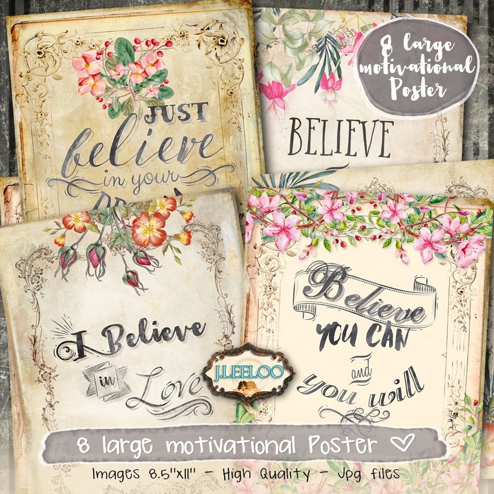 BELIEVE large digital collage sheets vintage quote orintable: download and print for posters, iron-on transfer, hang tags, labels, scrapbook, jewelry holders and your others craft projects.