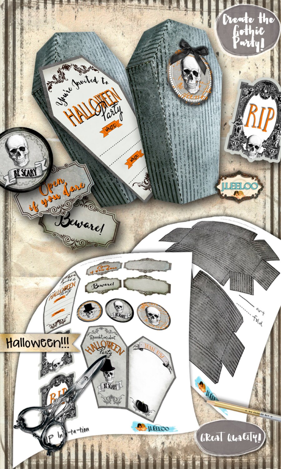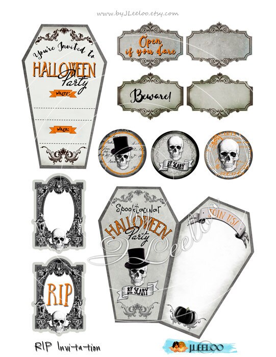 RIP COFFIN halloween party - Digital collage sheets - Halloween download and print for invitation party, labels, scrapbook and your others craft projects.
