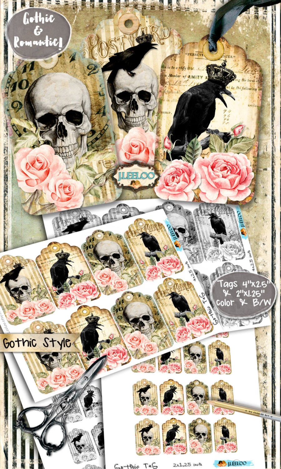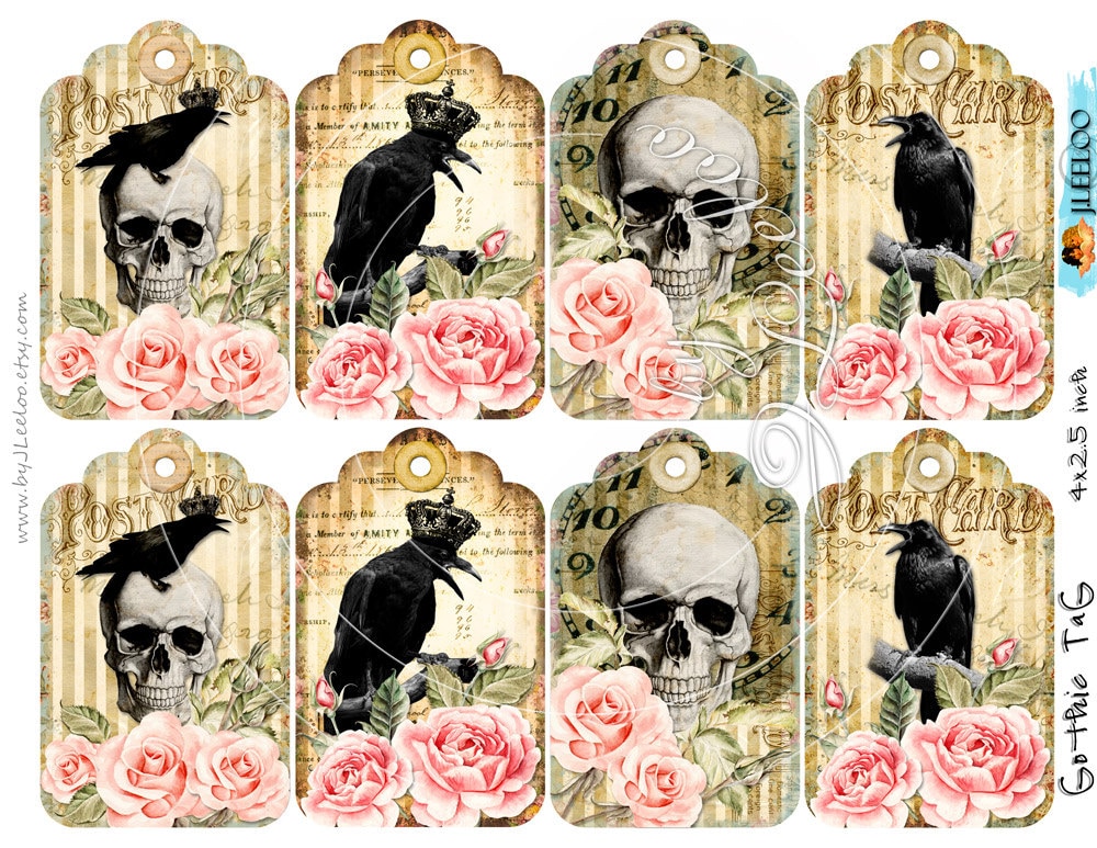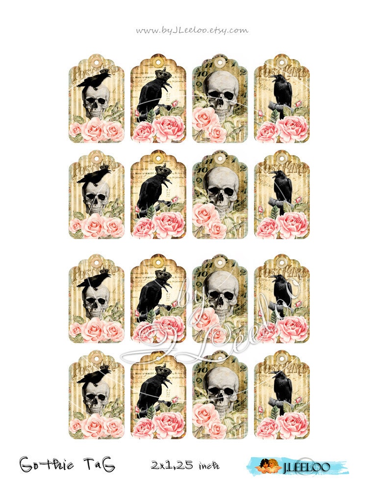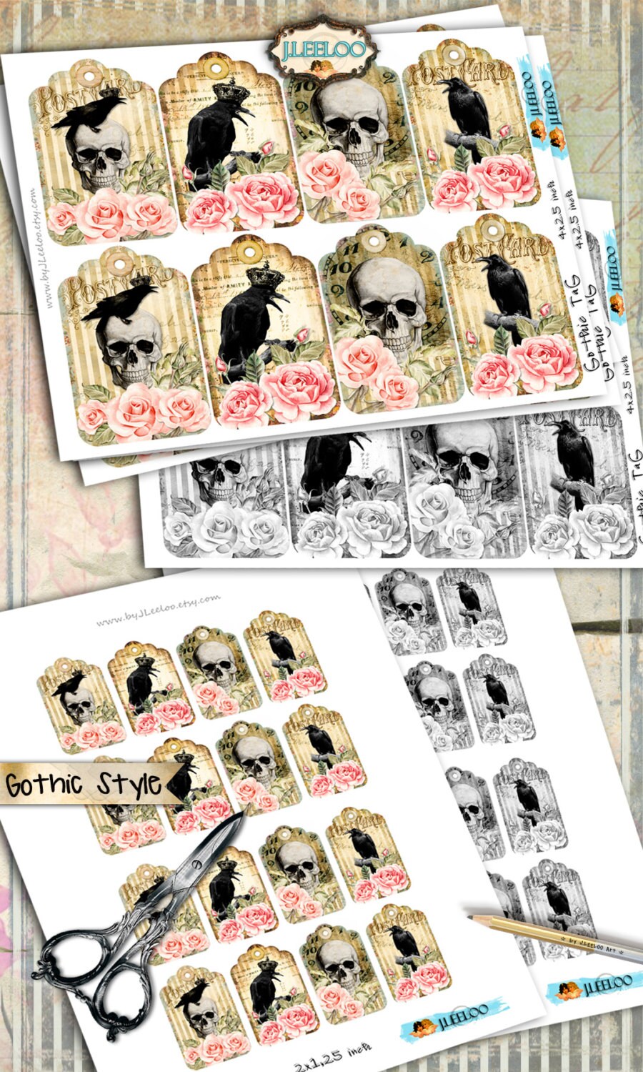 GOTHIC TAG - Digital collage sheets halloween and steampunk : download and print for hang tags, labels, scrapbook, jewelry holders, cards, and your others craft project.