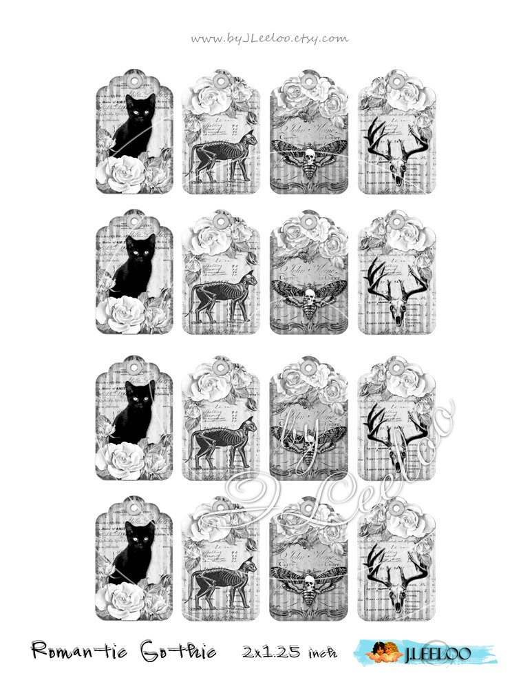 ROMANTIC GOTHIC - Digital collage sheets halloween : download and print moth black cat and deer for hang tags, labels, scrapbook, jewelry holders, cards, and your others craft project.