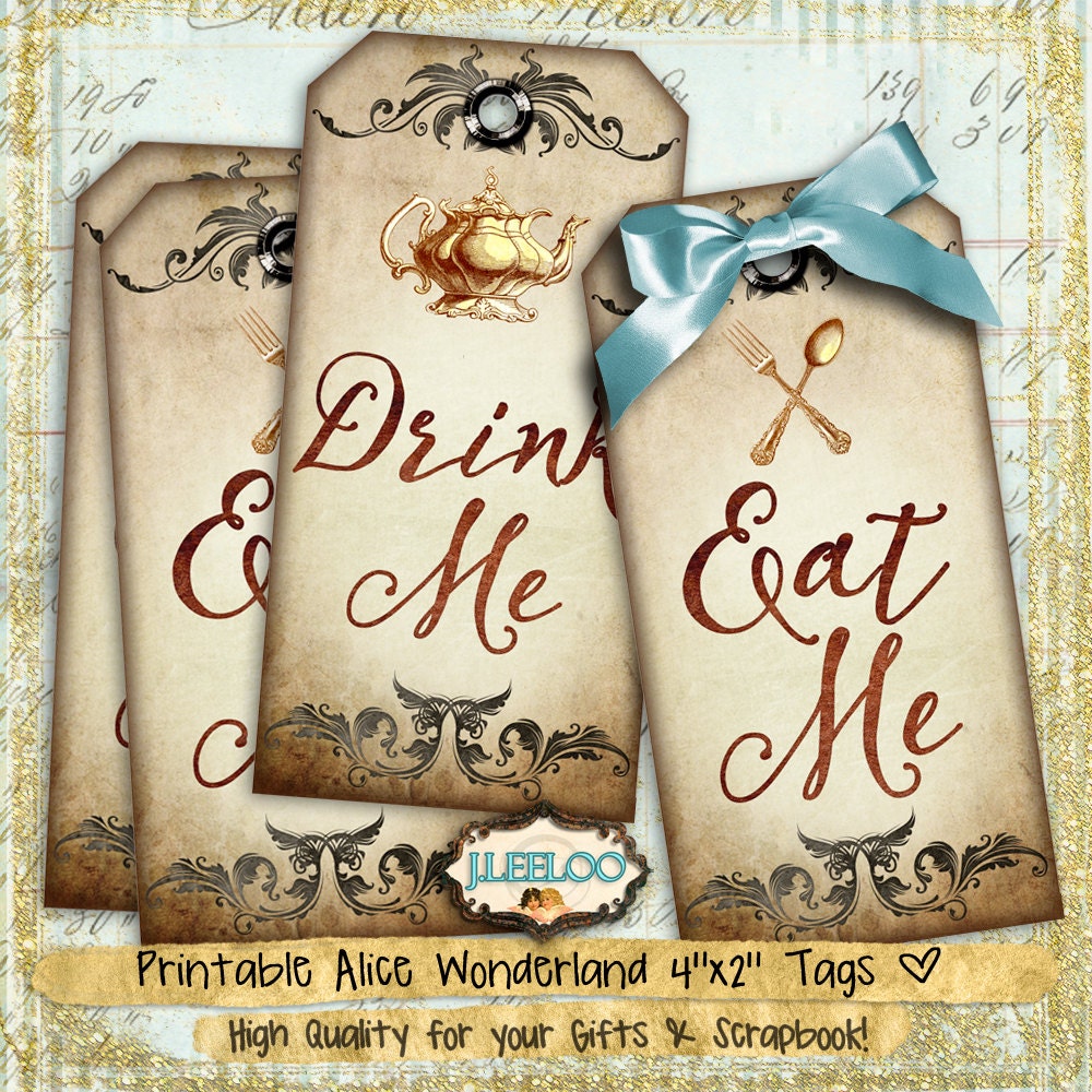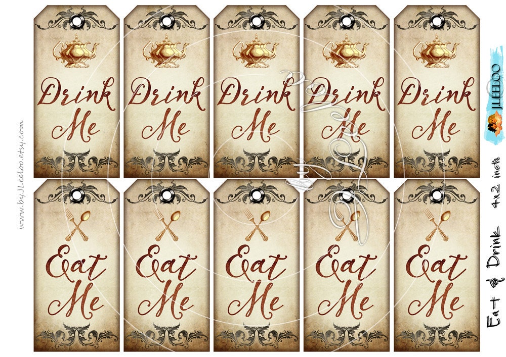 EAT AND DRINK ME - Digital collage sheets: Alice in Wonderland tags download and print for hang tags, labels, scrapbook, jewelry holders, cards, and your others craft project.