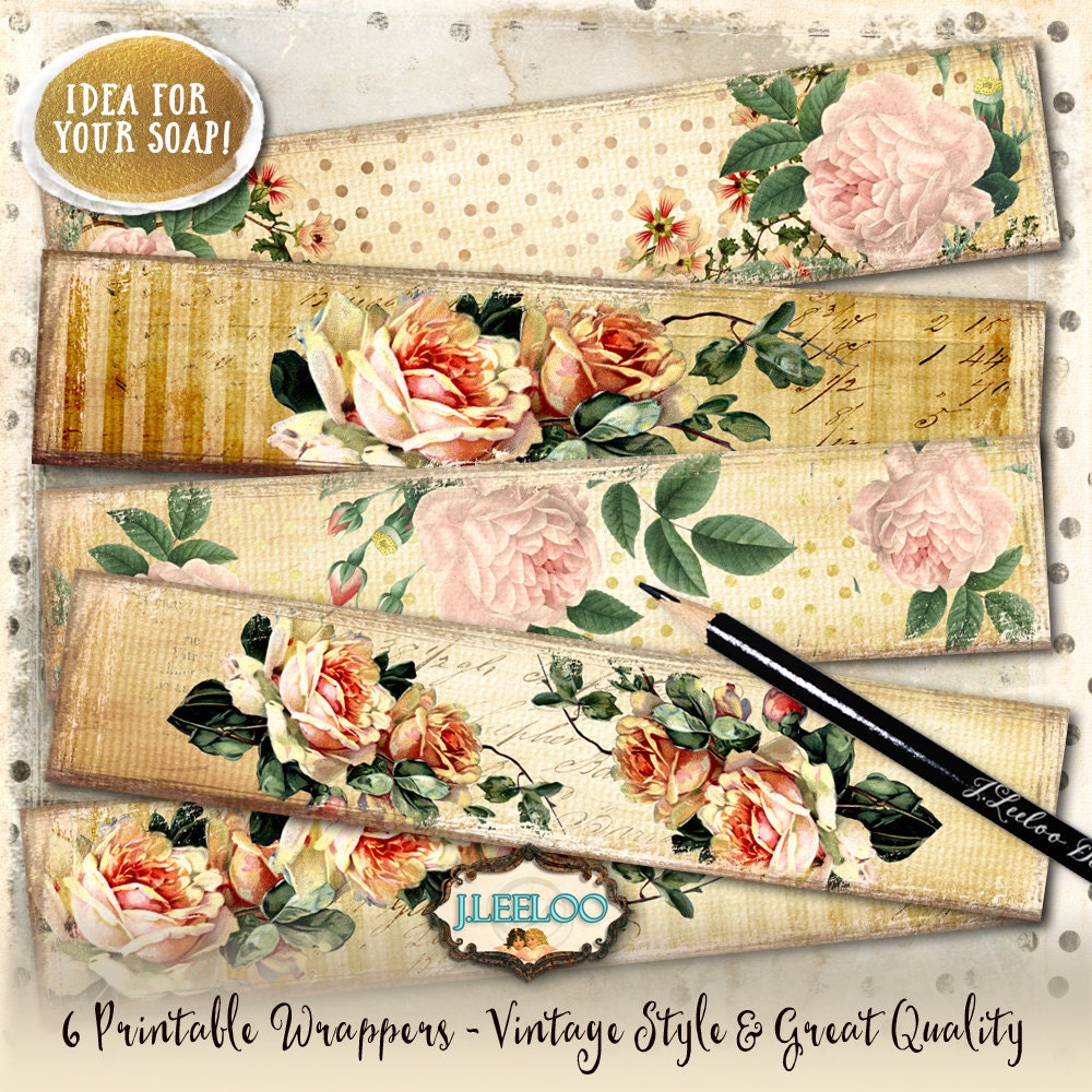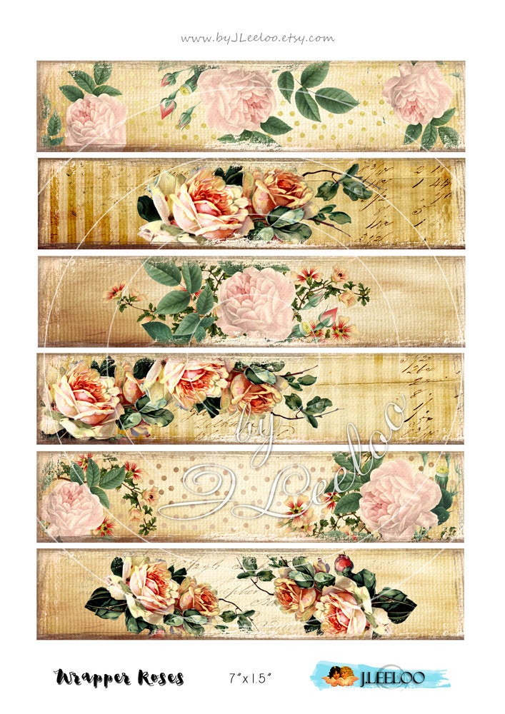 WRAPPER ROSES - Digital collage sheet - Instant digital papers - Images for your artwork: wrapper soap, bookmarks, scrapbook, diary art, hang tags, invitations or annuncements, greetings cards or backing cards.... for your creativity!