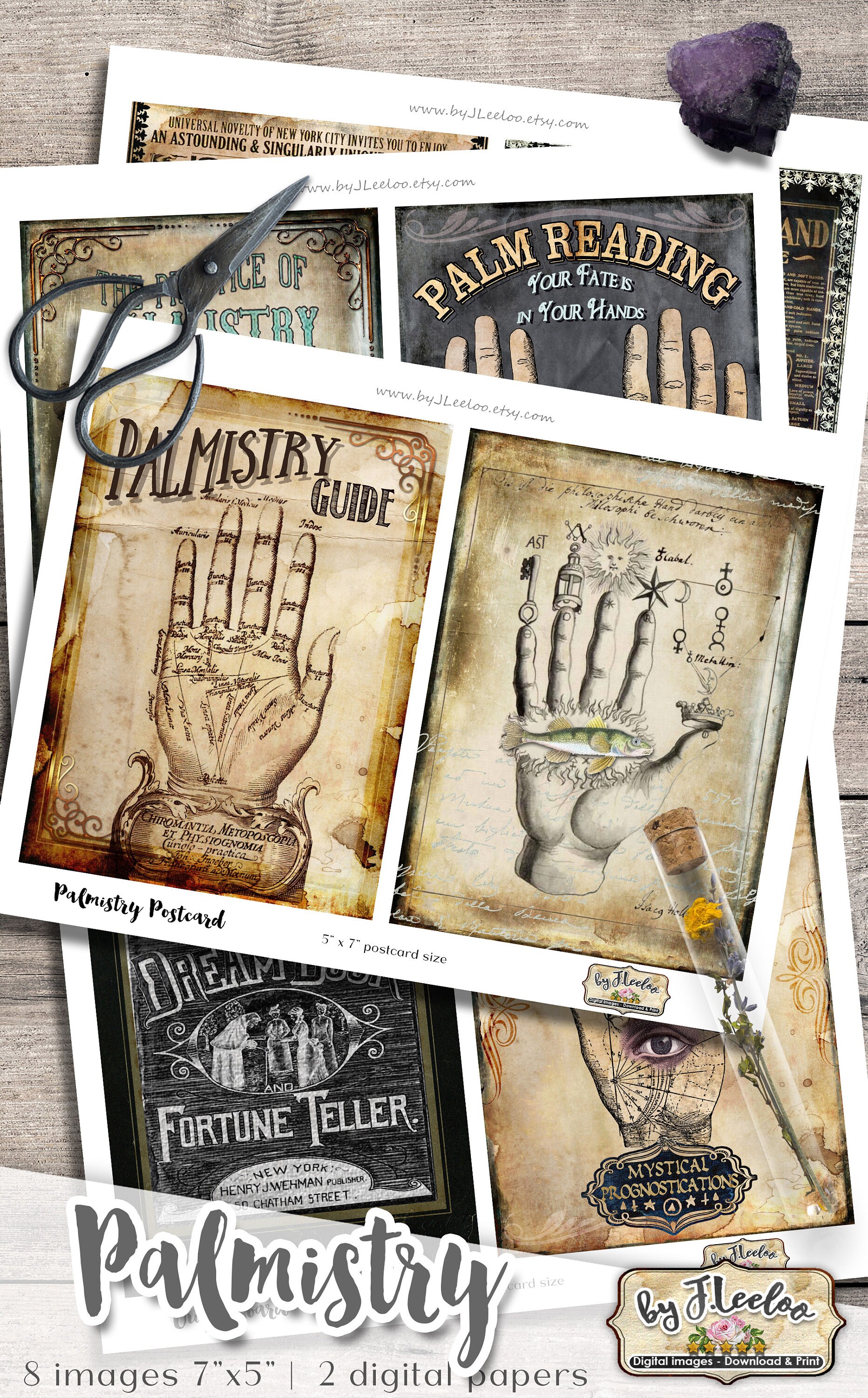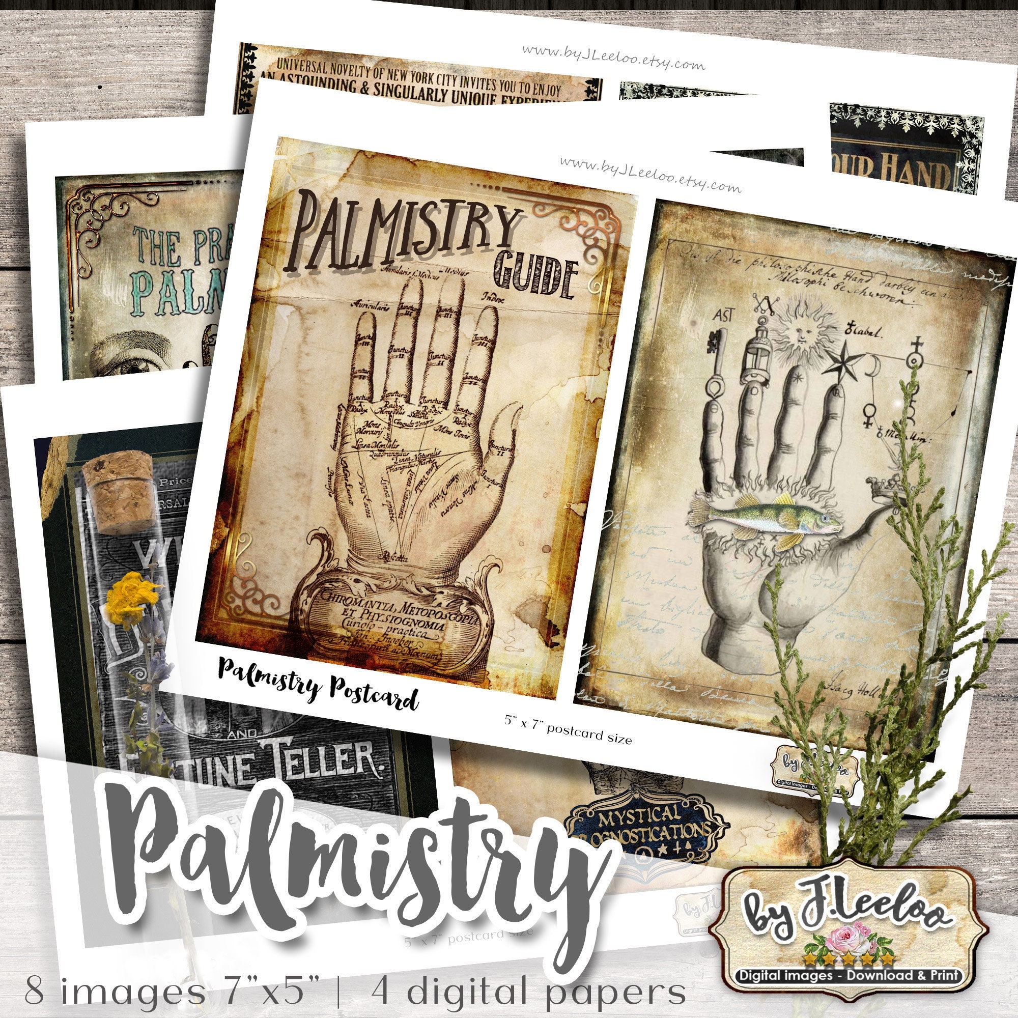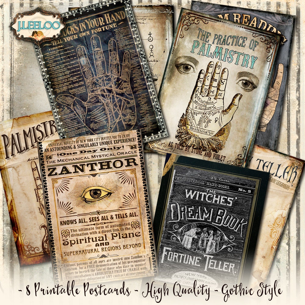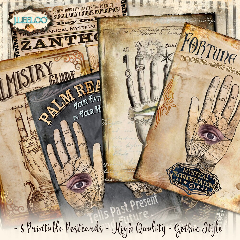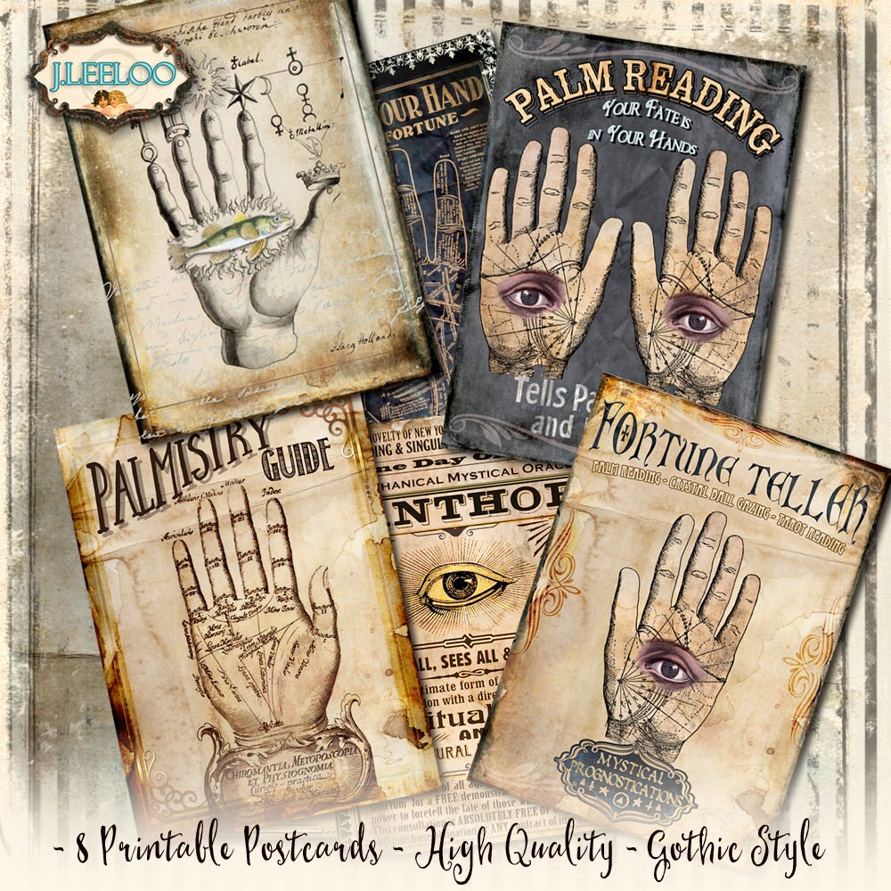 PALMISTRY POSTCARDS Digital collage sheet - Ghotic dark steampunk digital papers: images for your diary, artwork, postcards, hang tags, invitations, greeting cards, annuncements, scrapbook, backing cards.... all for your crafting project!