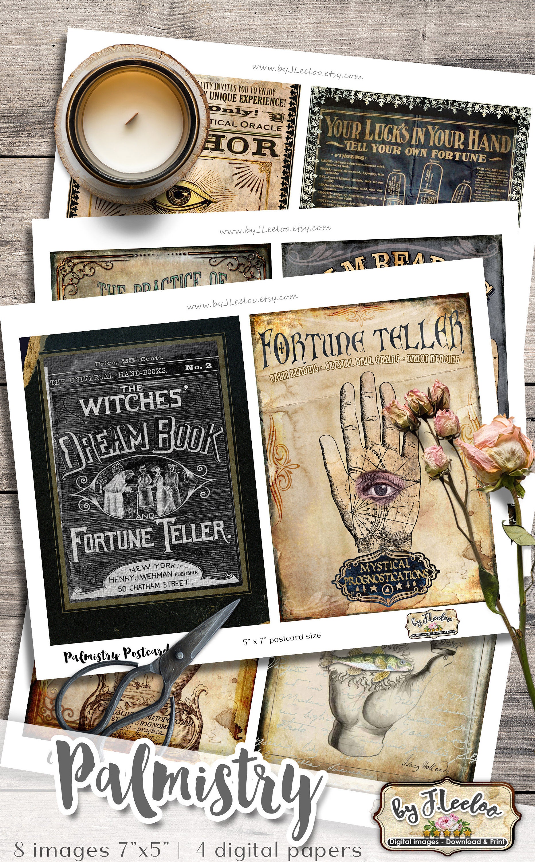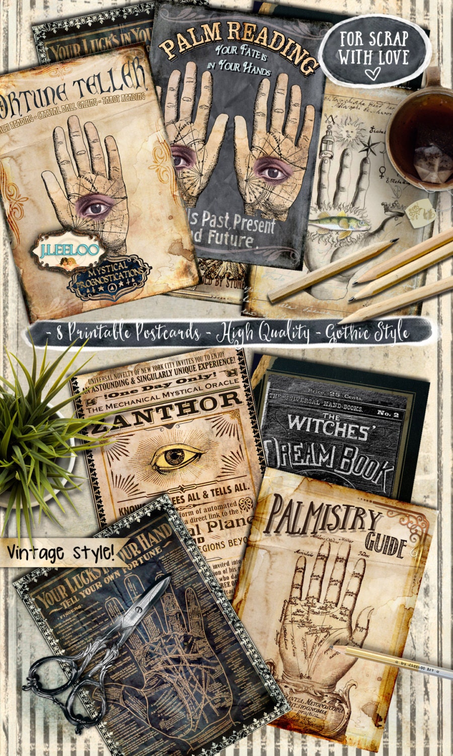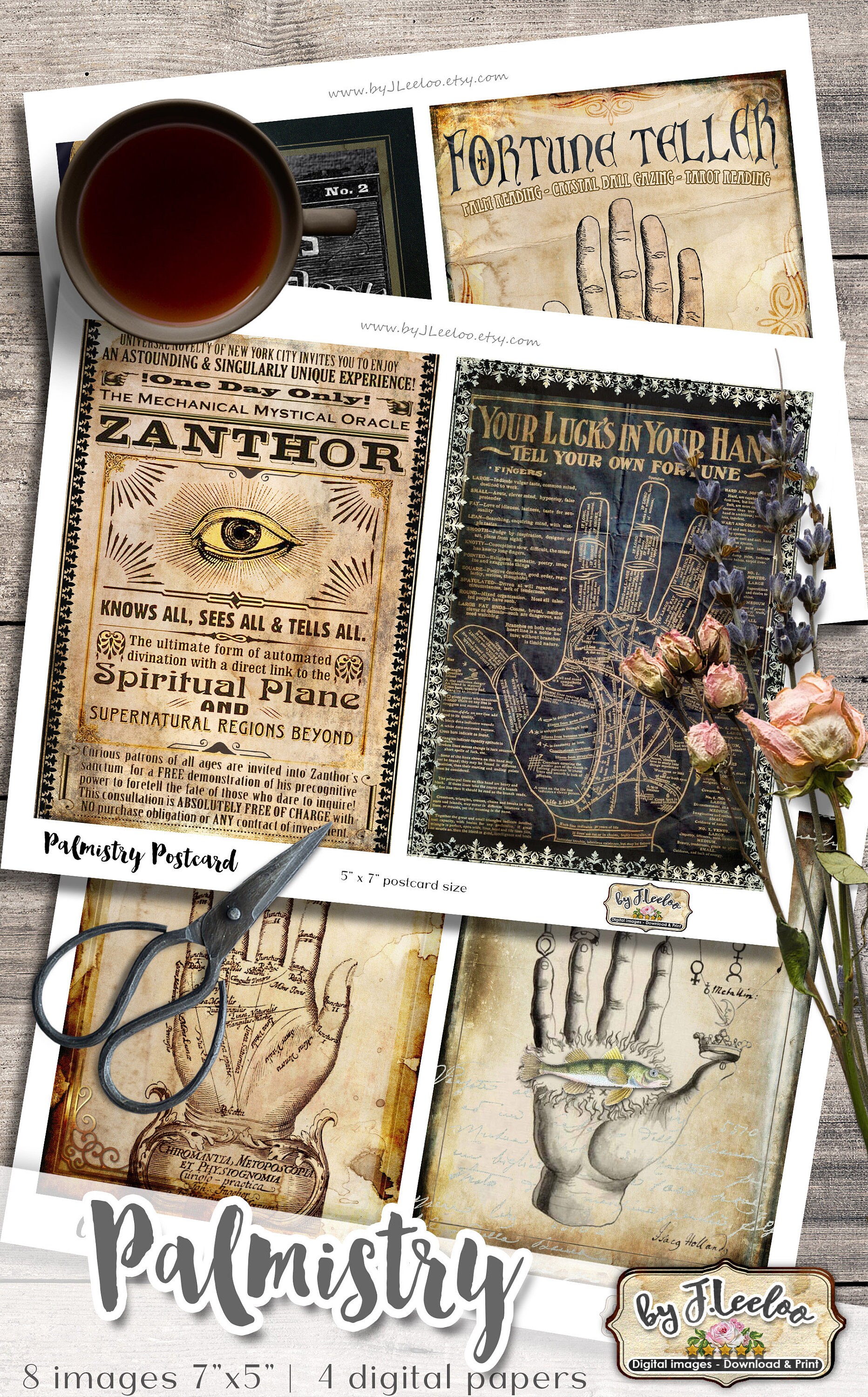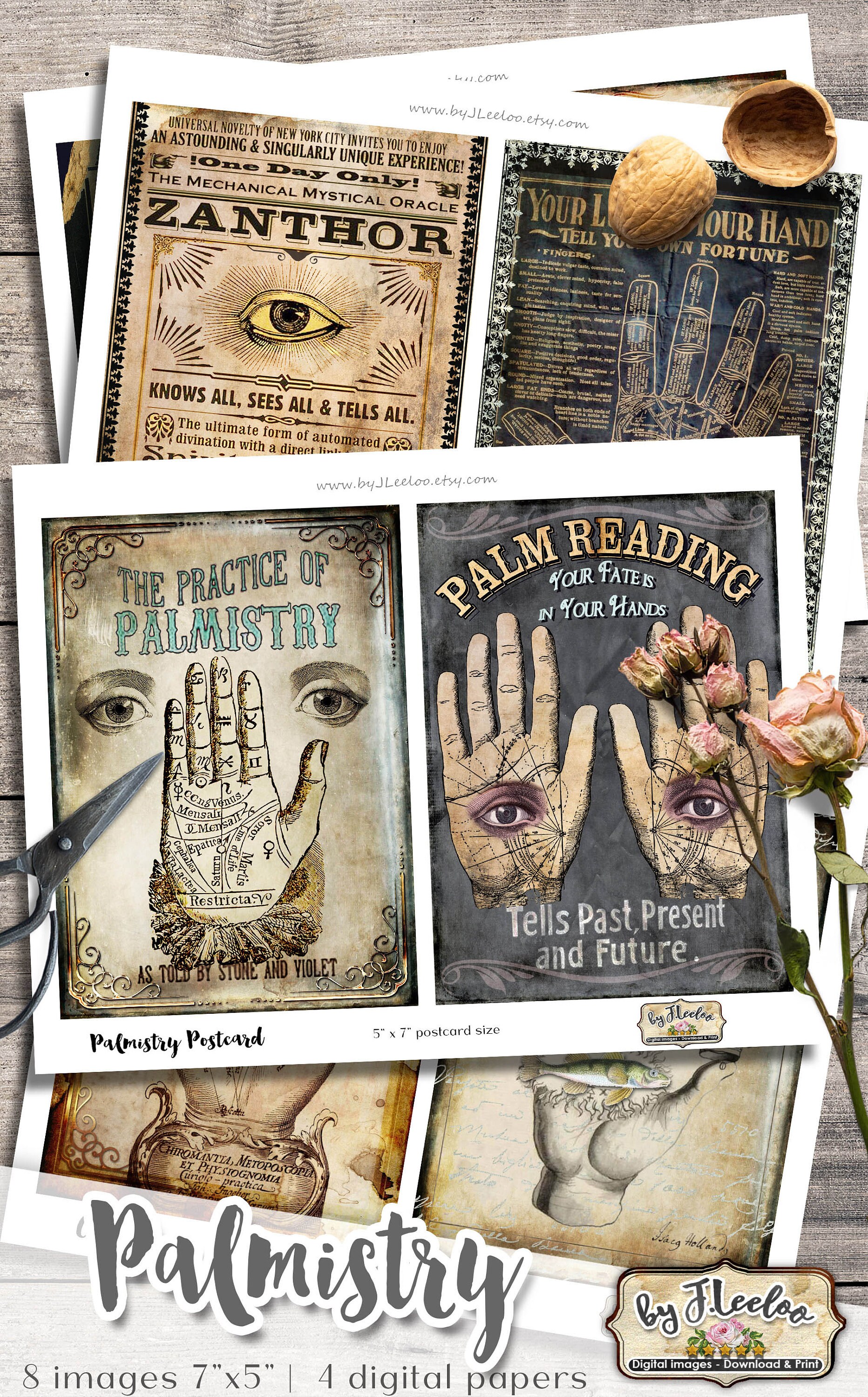 PALMISTRY POSTCARDS Digital collage sheet - Ghotic dark steampunk digital papers: images for your diary, artwork, postcards, hang tags, invitations, greeting cards, annuncements, scrapbook, backing cards.... all for your crafting project!