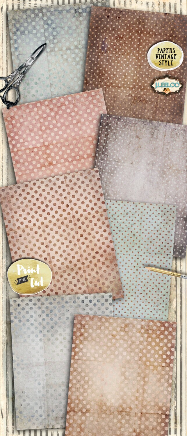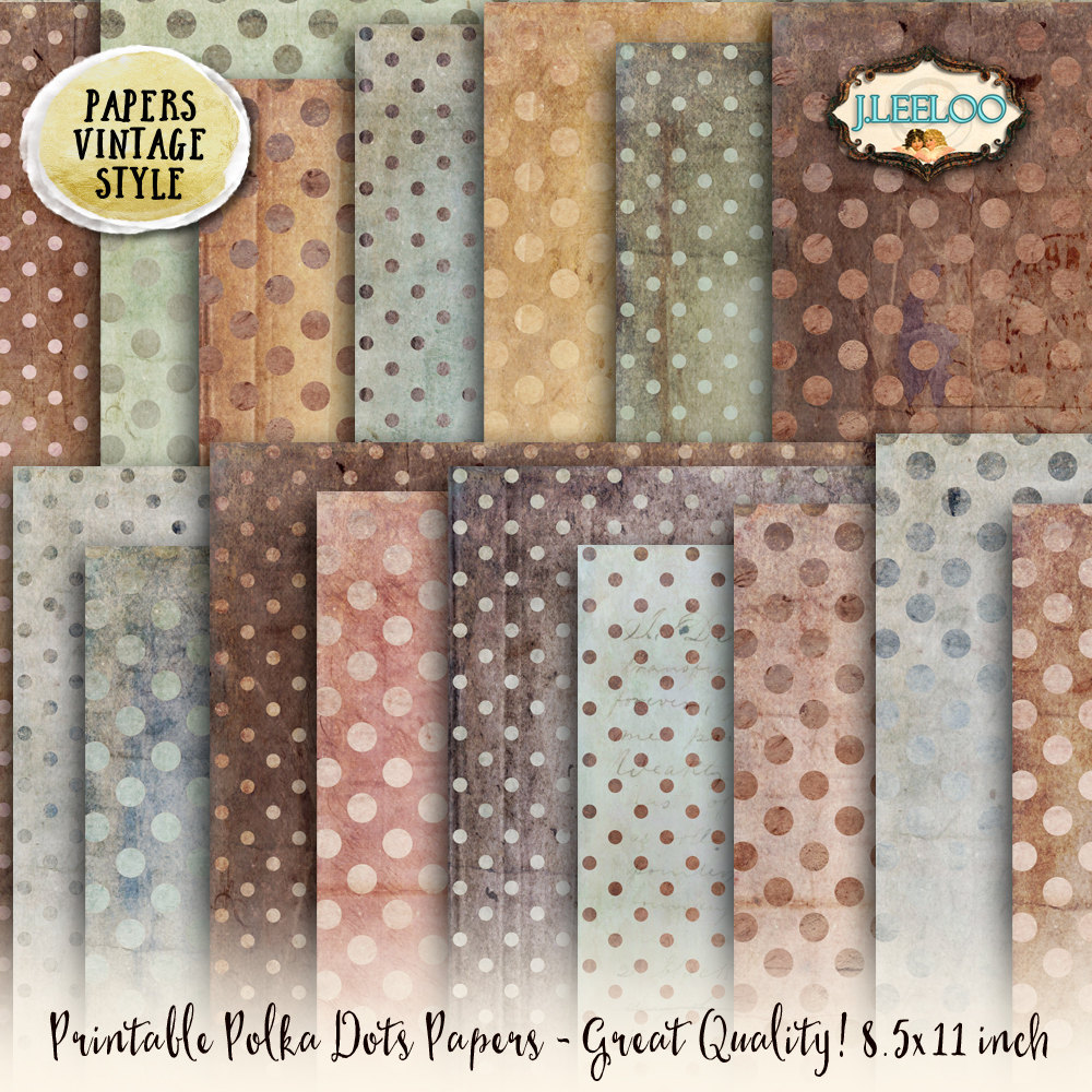 POLKA DOTS Instant Download - Digital collage sheets pack - vintage distressed documents digital paper - Large images for scrapbook, background, artwork.