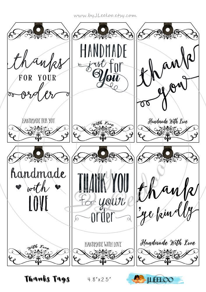 THANKS TAGS - Digital collage sheets: printable tags download and print for s hipping packages etsy shop hang tags, labels, scrapbook, jewelry holders, cards, and your others craft project.