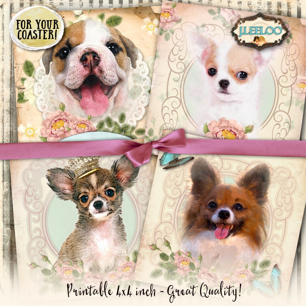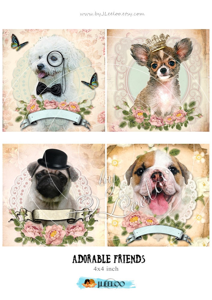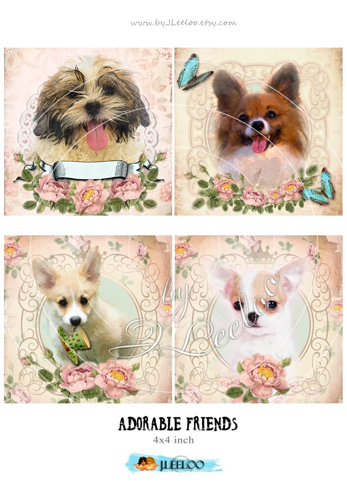 ADORABLE FRIENDS Digital collage sheets - Square images instant download ready to print for coaster, thank you cards or hang tags, your jewelry making, resin pendants, rings, earrings and button, for magnets, stickers, scrapbook and your others craft project.