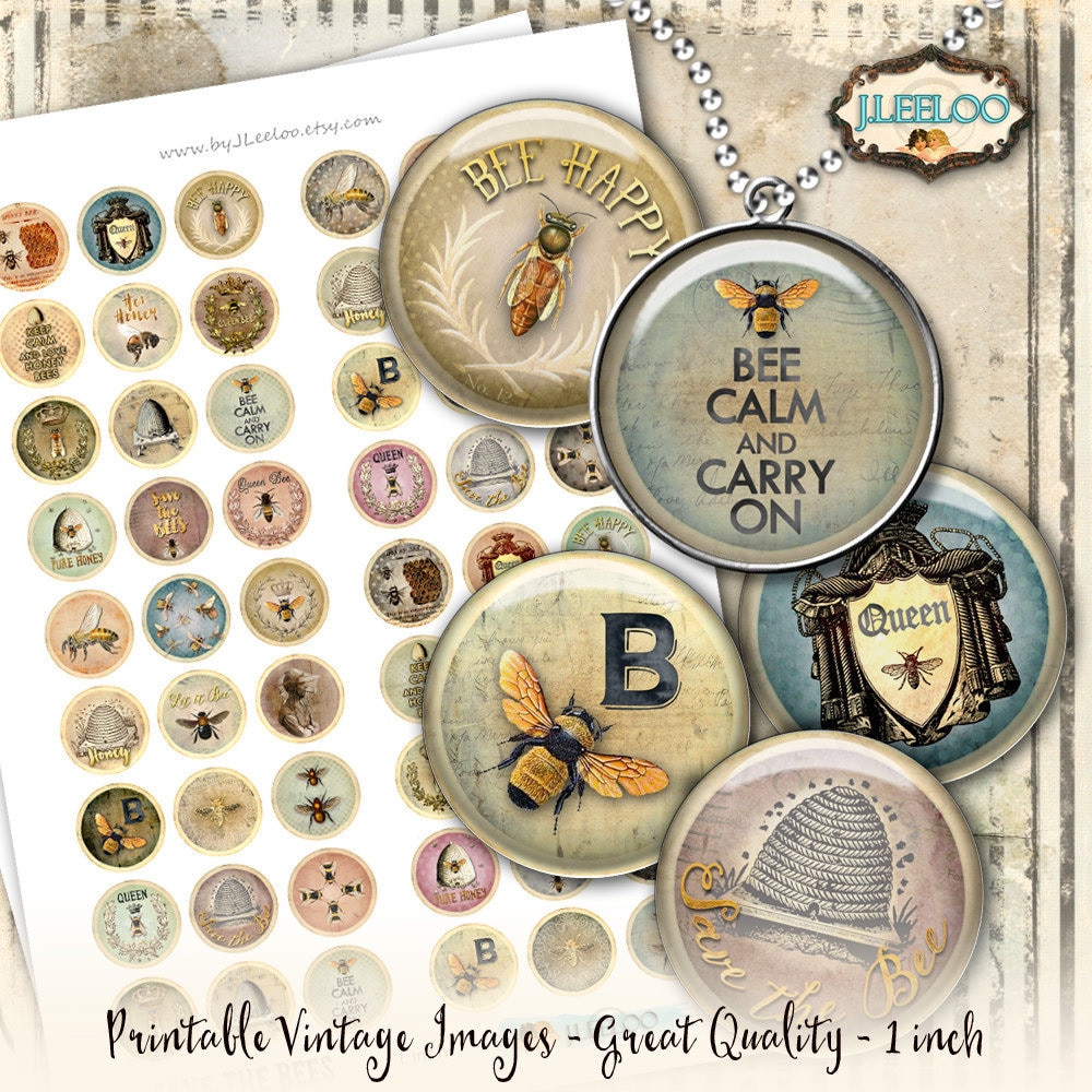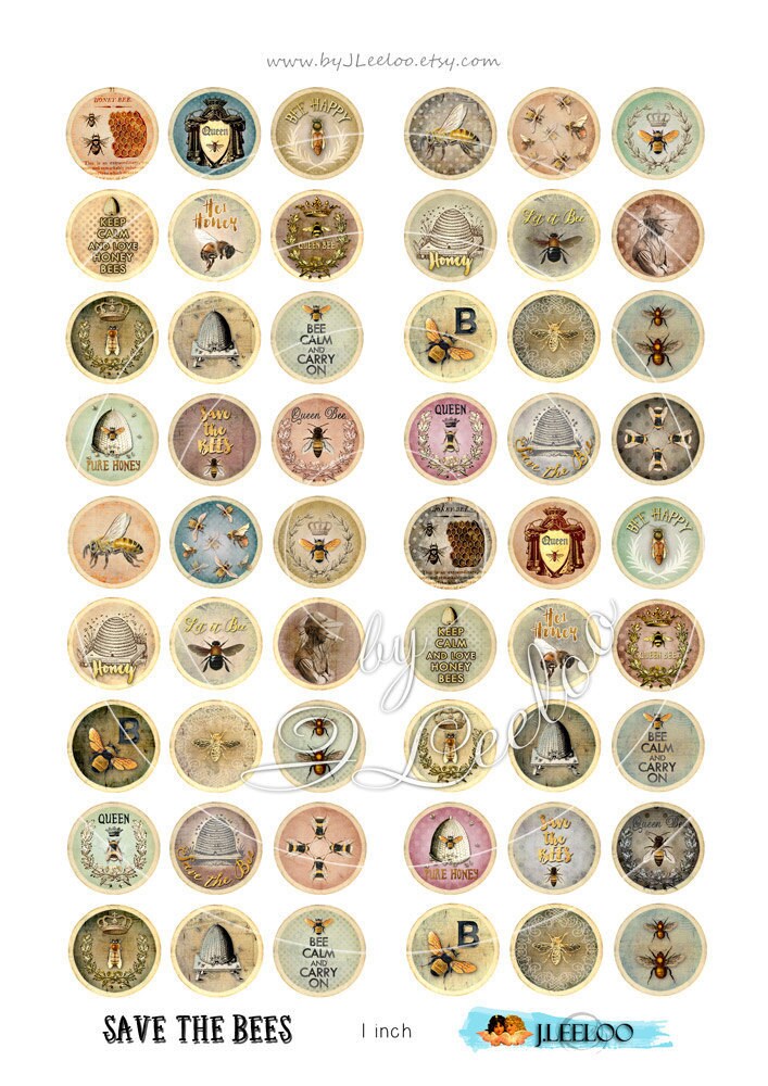 SAVE THE BEES Digital collage sheets - Circle images download to print for mirrors, hang tags, jewelry, resin pendants, glass cabochon, charms, magnets, stickers, scrap book, a great supply for your craft project.