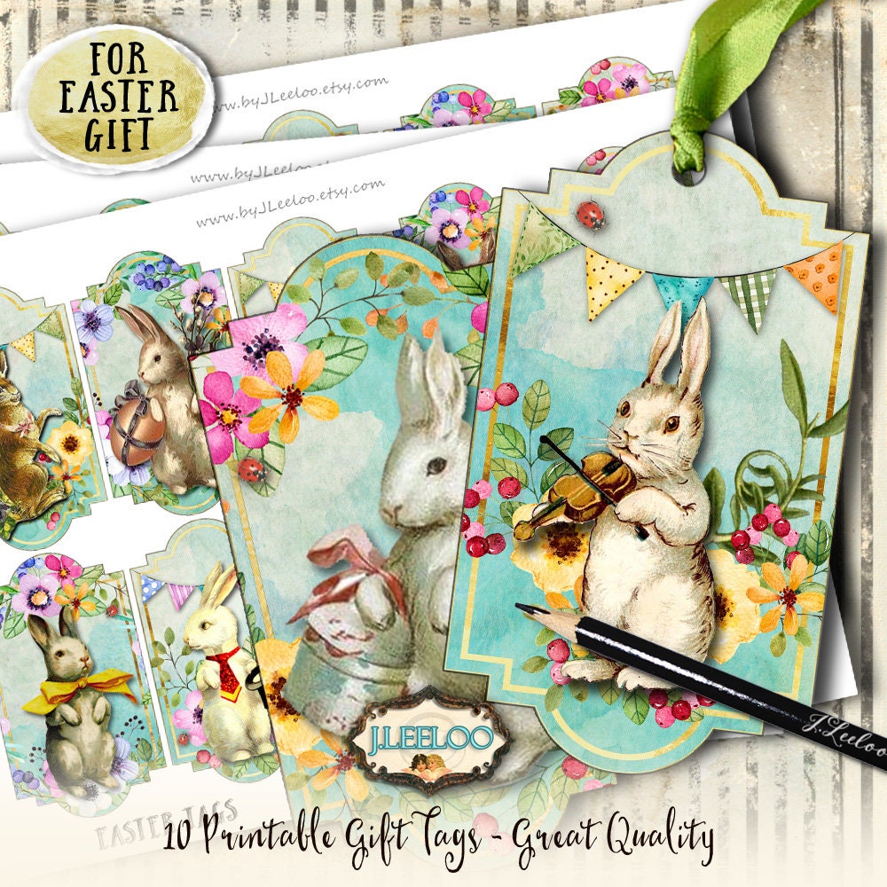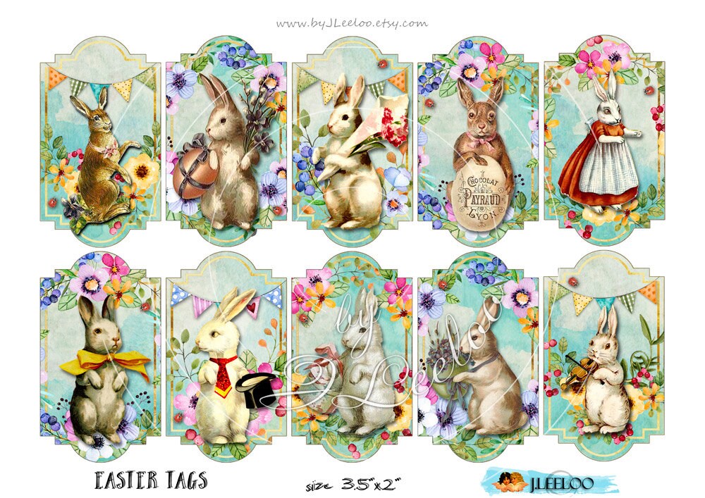 EASTER TAGS - Digital collage sheets - Label tag rabbit vintage images instant download ready to print for your bottle jar, invitation, jewelry making, stickers, scrapbook and your others craft project.