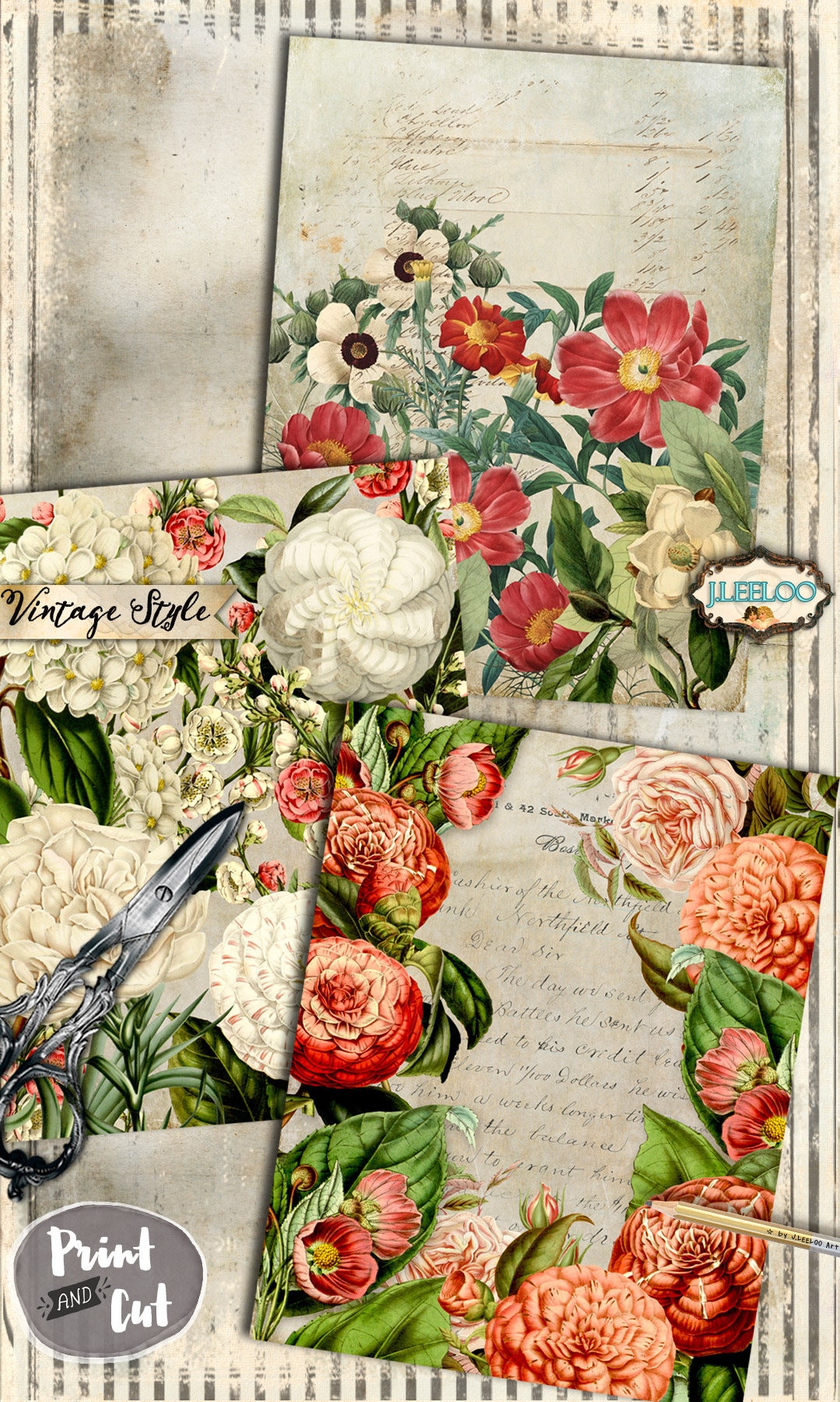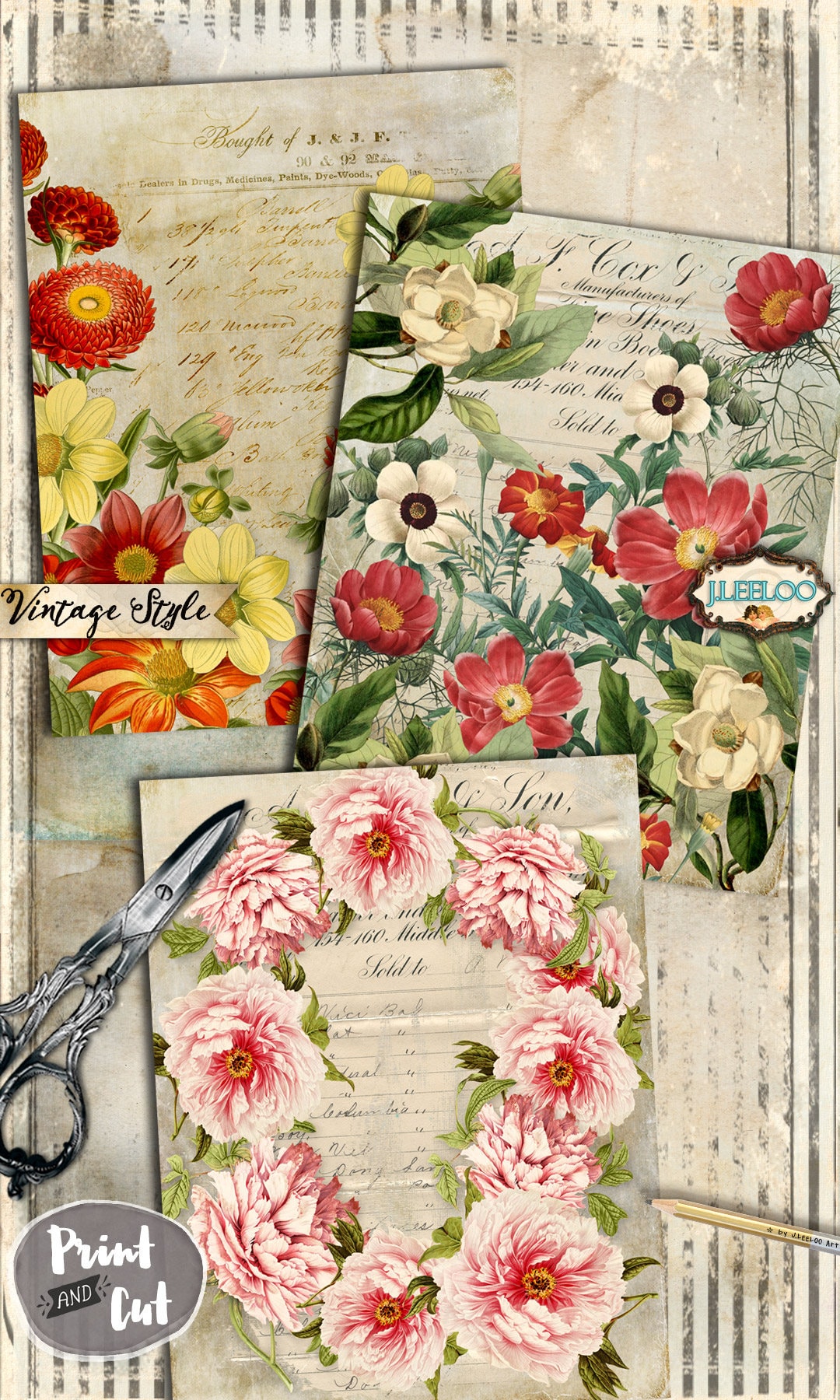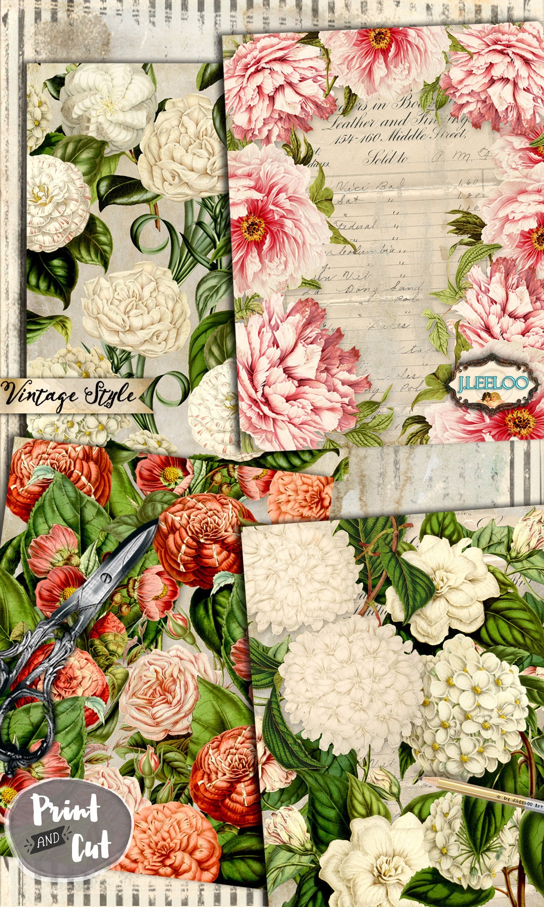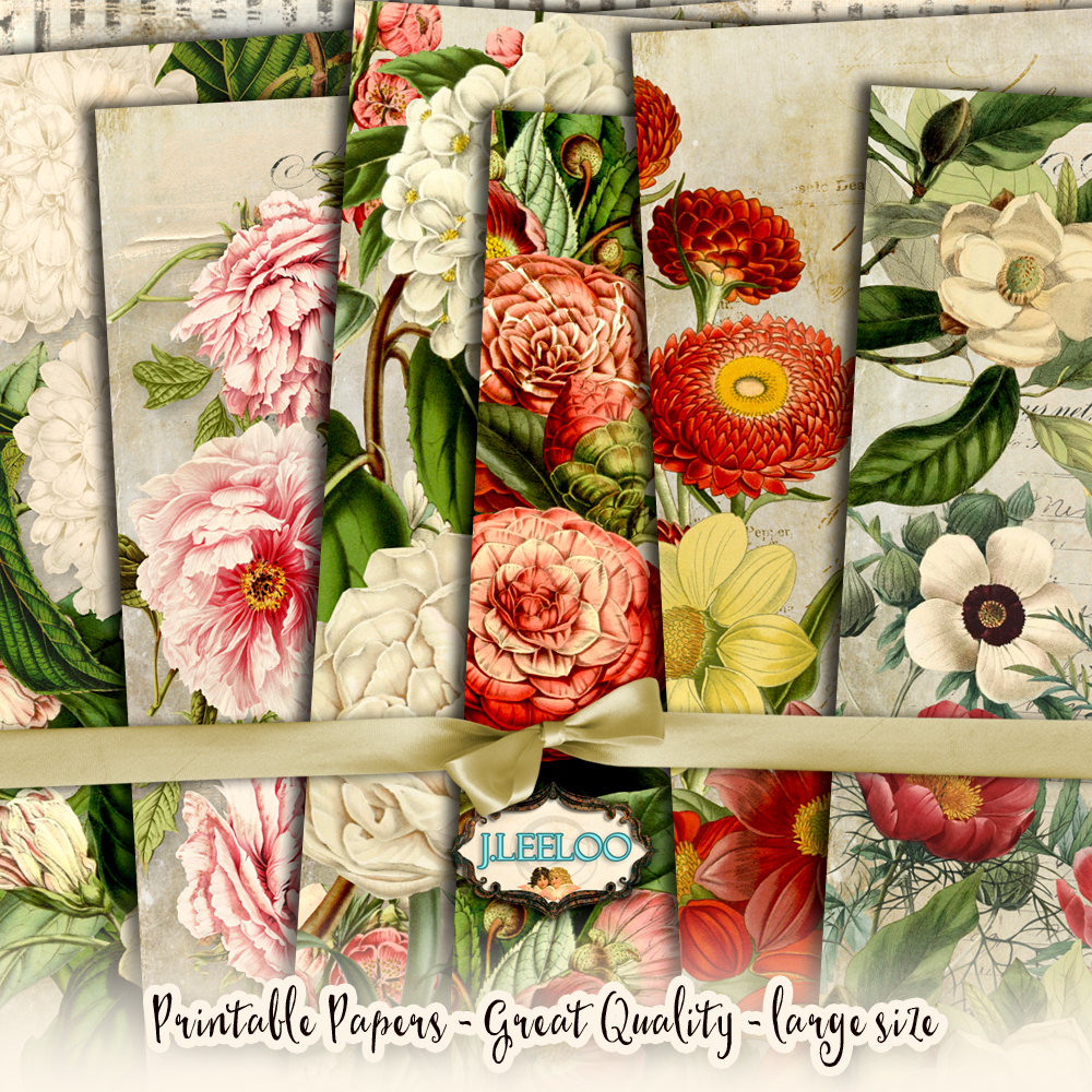 GARDEN PAPERS Instant Download - Large Digital collage sheet pack - Victorian digital papers for your crafting projects: scrapbook, background, diary, iron-on transfer, card making.... print it as many time as you want.