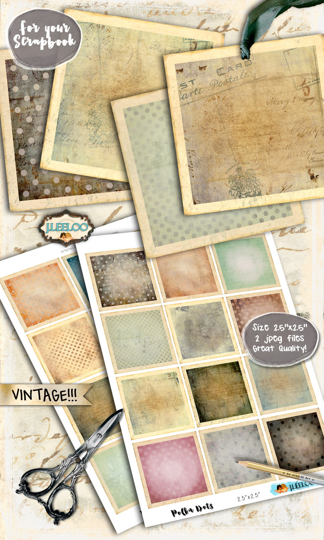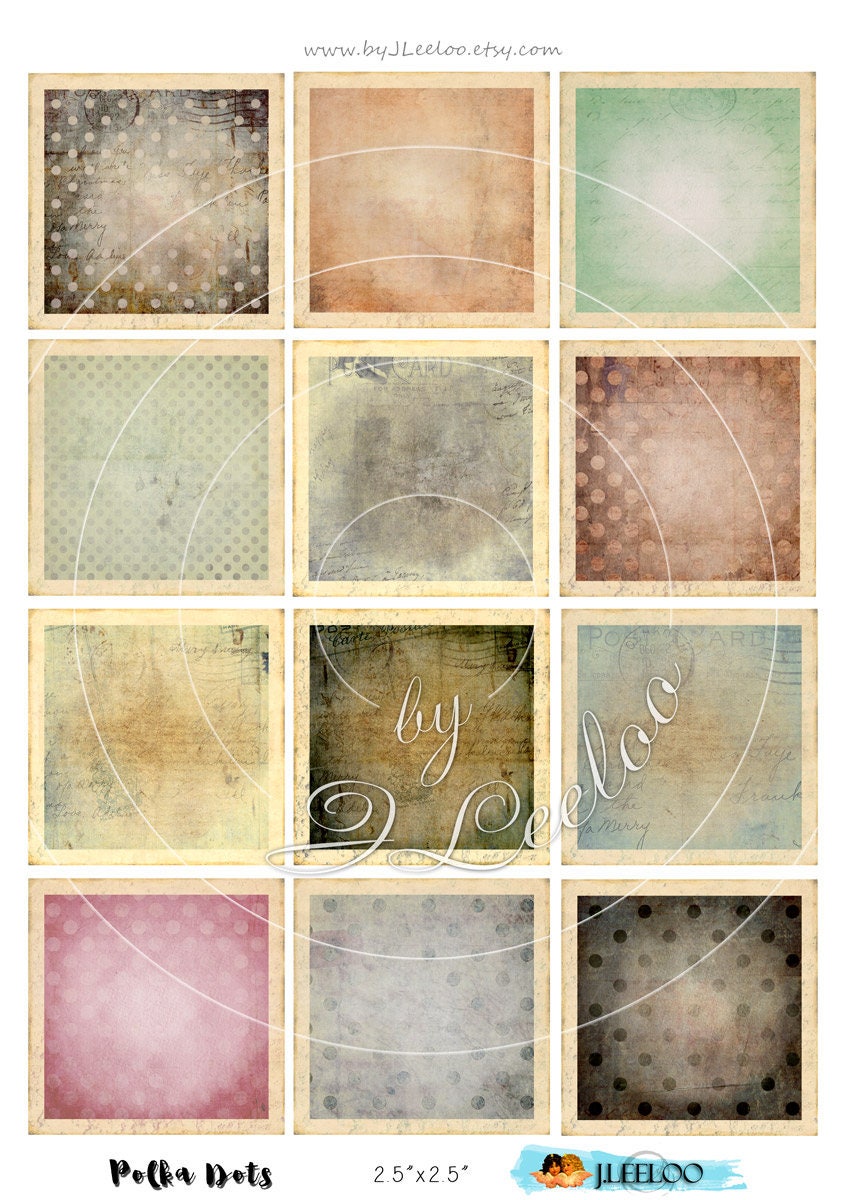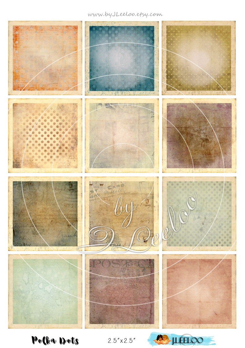 VINTAGE POLKA DOTS Digital collage sheets - Shabby chic distressed squares images instant download ready to print for your jewelry making, resin pendants, rings, earrings and button, for magnets, stickers, scrapbook and your others craft project.