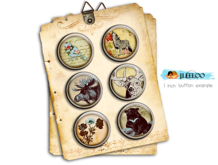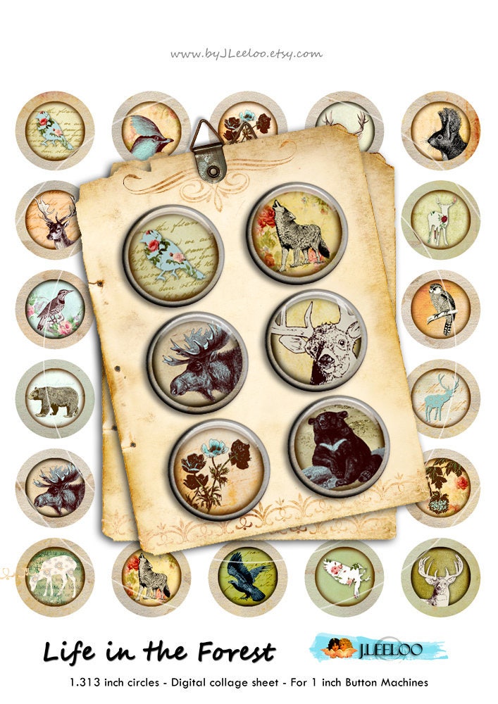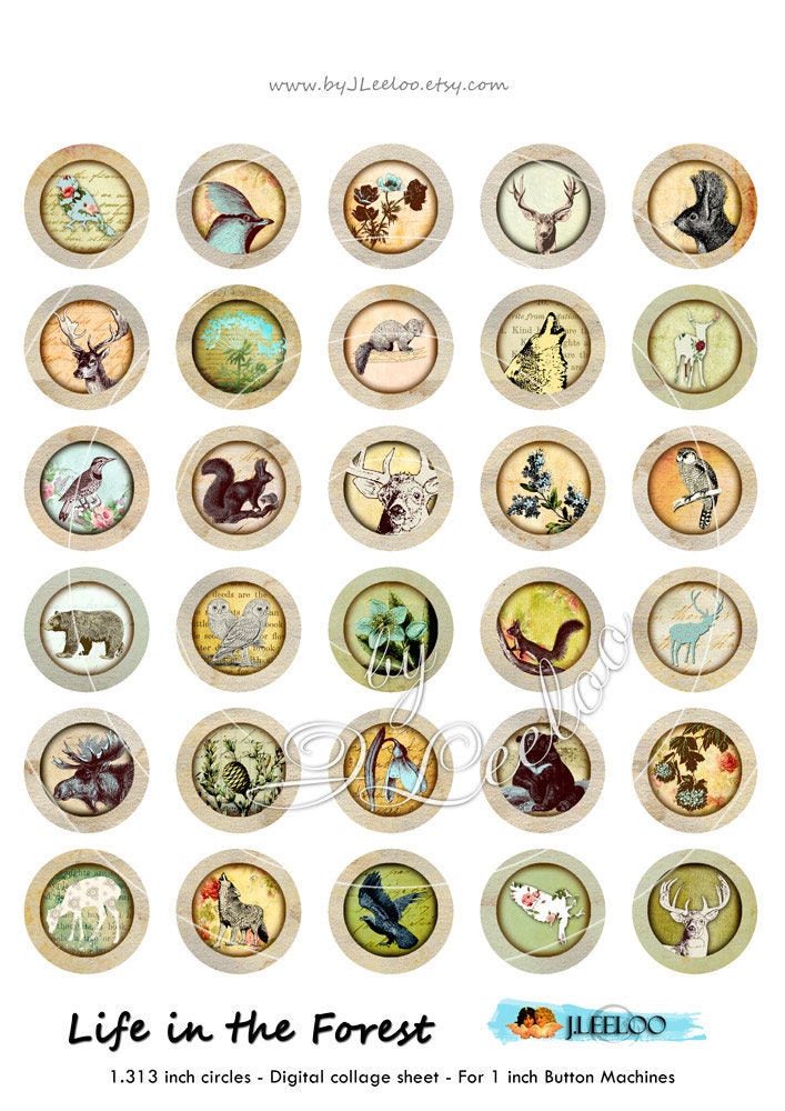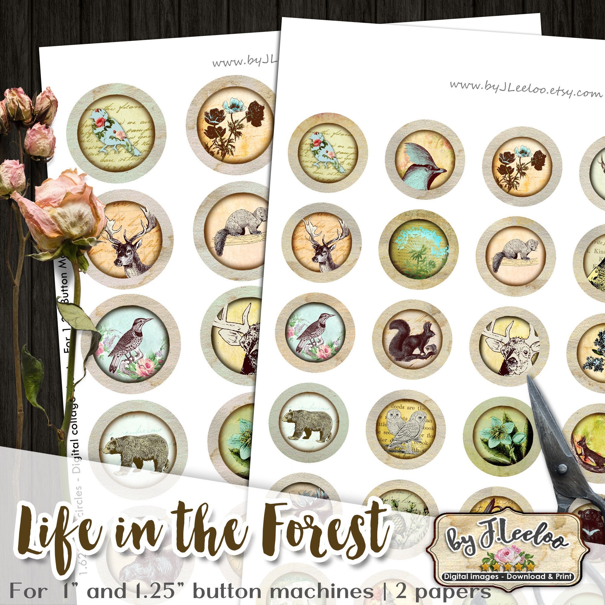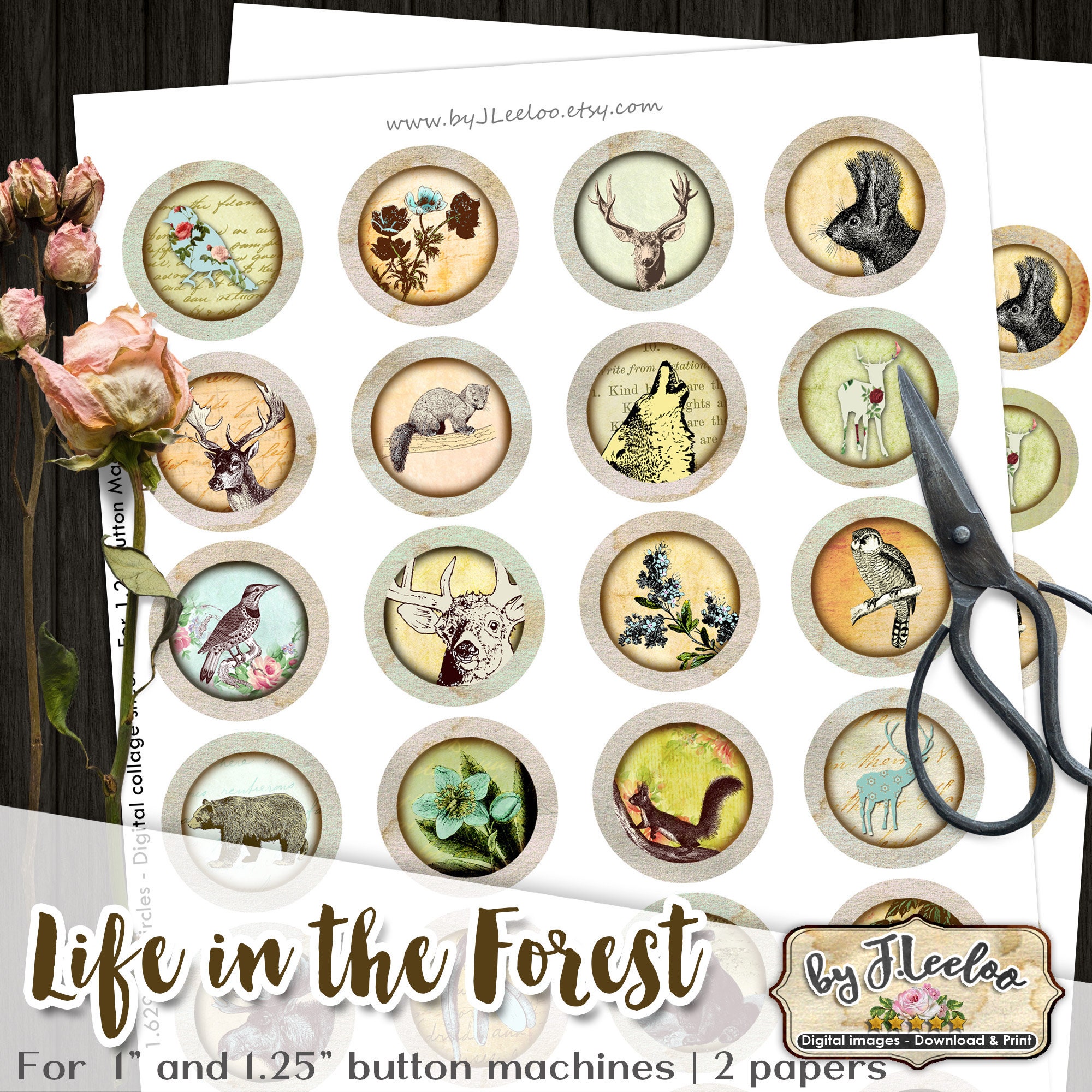 Life in the Forest - Instant Download - Digital collage sheet - Digital papers - Circle images for button machine, round clipart for jewelry, craft and artwork.