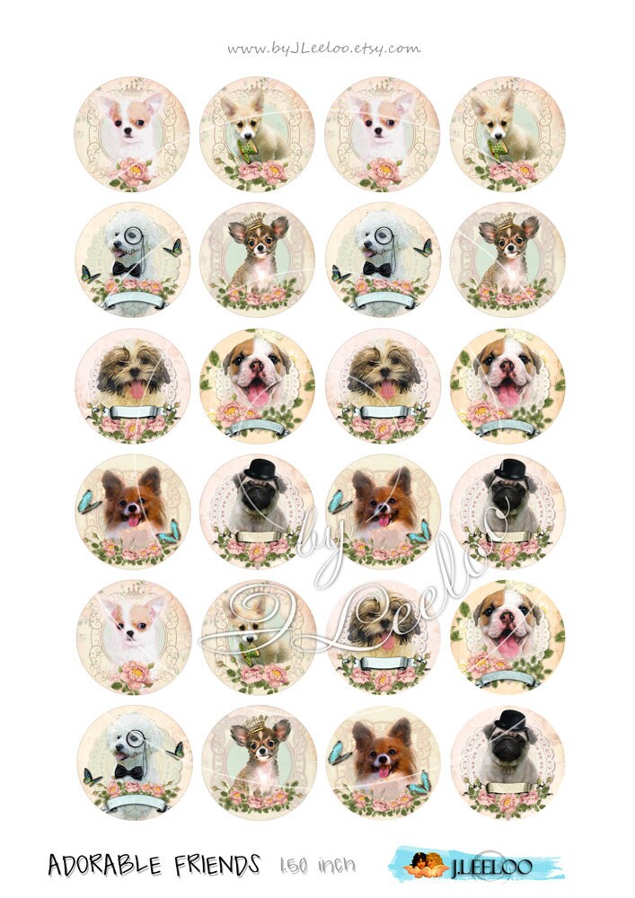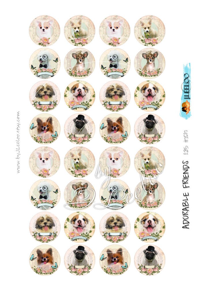 ADORABLE FRIENDS Digital collage sheets - round images instant download ready to print for thank you cards or hang tags, your jewelry making, resin pendants, rings, earrings and button, for magnets, stickers, scrapbook and your others craft project.