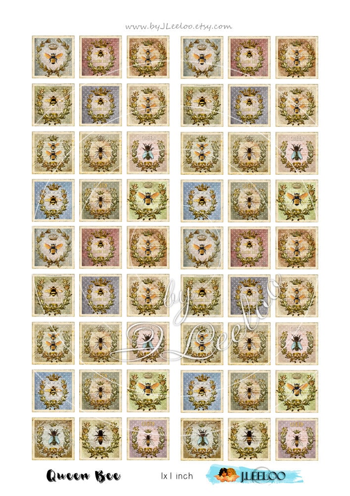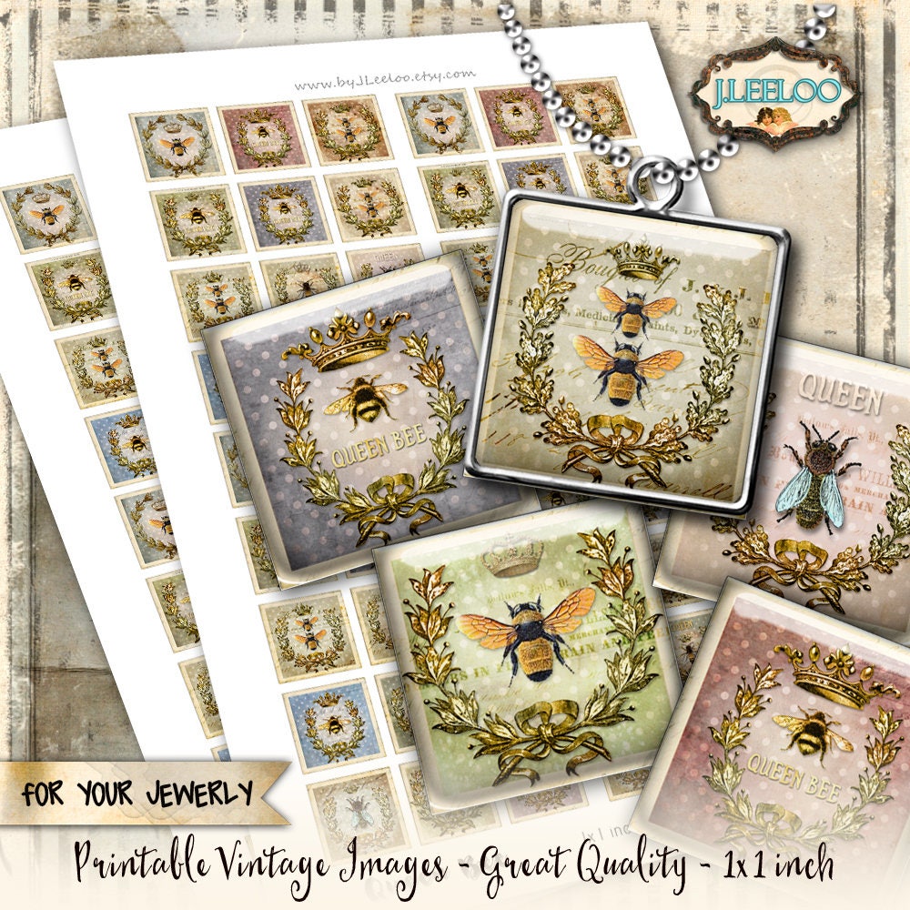 QUEEN BEE - Instant download printable - digital collage sheets - square images for your crafting project - glass cabochons, jewelry, resin pendants, hang tags, rings, earrings and all your need for your art.