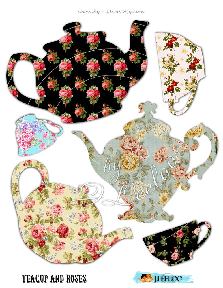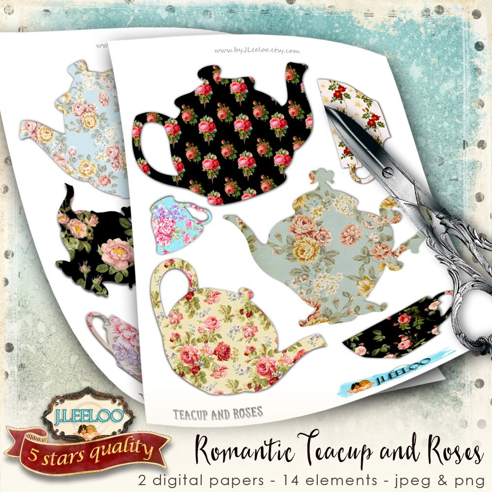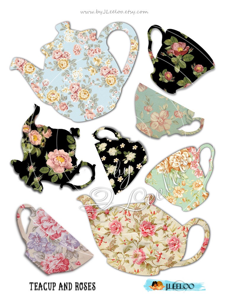TEACUP and ROSES - Digital images shabby chic for your crafting project - Download to print for scrapbooks, invitations, journaling, hang tags, card making, collages... a great supply for your artwork.